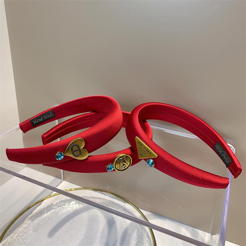 Diadema roja de Año Nuevo 2023, estilo simple, pequeño y fragante, elegante, grande, roja, este año, retro, esponja, banda para la cabeza de cráneo alto.