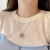 Transmisión en Vivo Collar Popular de Corazón Lindo Corazón de Durazno con Incrustaciones de Concha Collar con Patrón Retro Cadena para Clavícula Joyería de Acero de Titanio