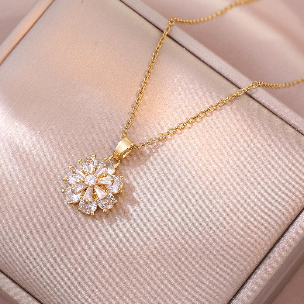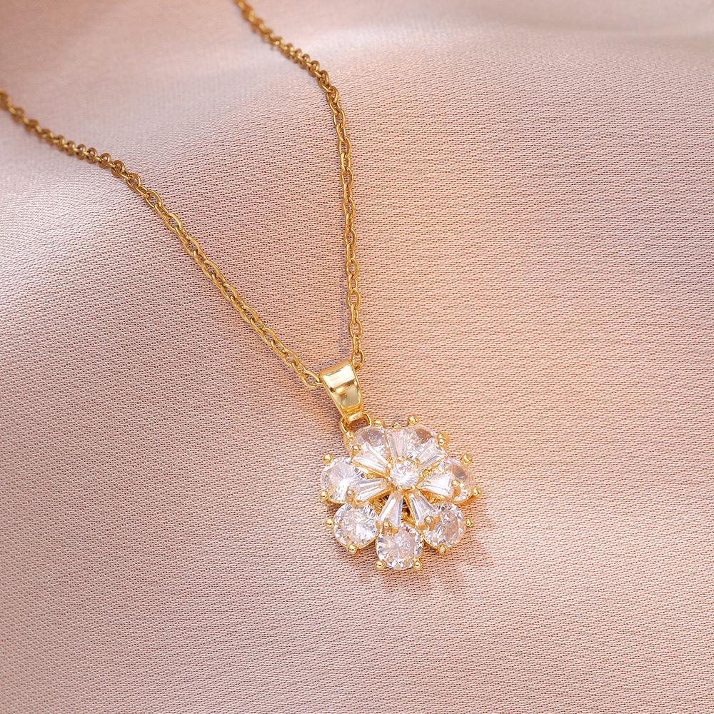 Collar femenino de celebridades de Internet con circonitas giratorias y flor de nicho transfronterizo, nuevo diseño, colgante con sentido elegante, cadena de clavícula de moda.