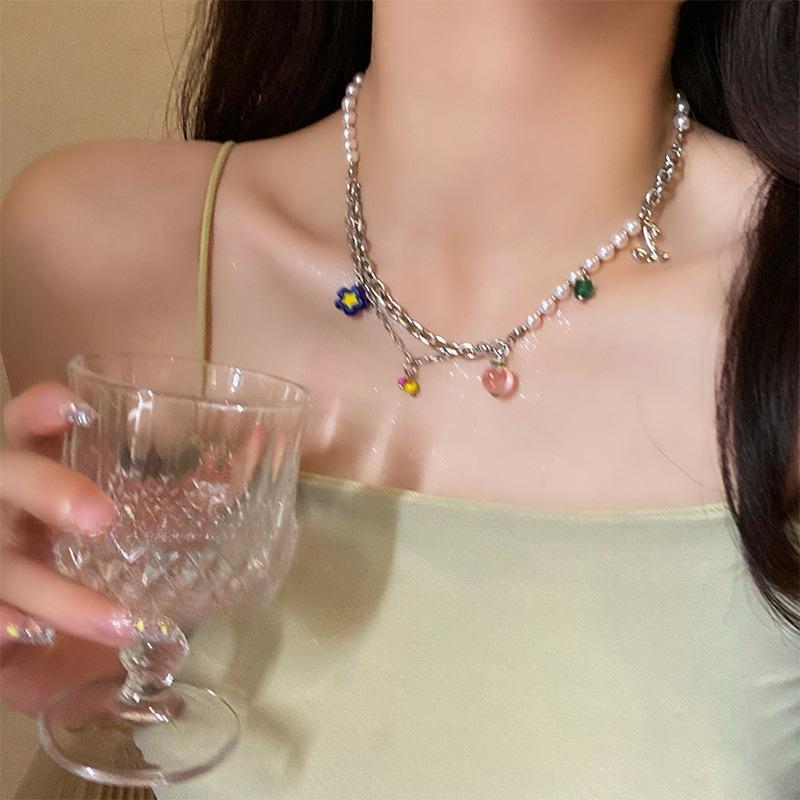 Collar de perlas de melocotón para mujer, de verano, ligero, de lujo, con diseño de nicho, con costuras en la clavícula, novedad de 2022.