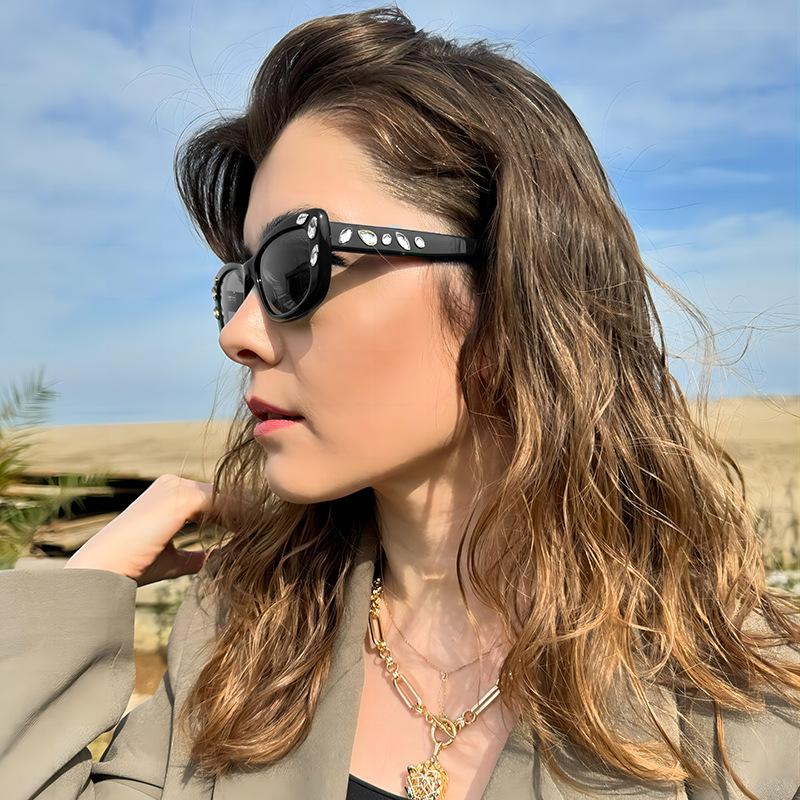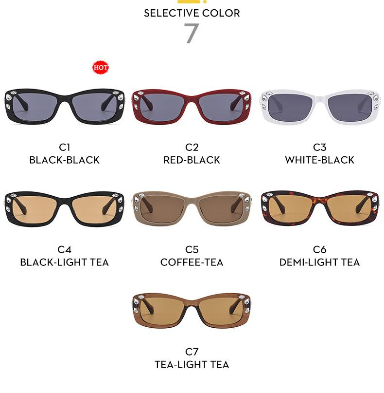 Nuevas Gafas de Sol Elegantes de Alta Gama con Incrustaciones de Diamantes Cuadrados Moda Transfronteriza Europea y Americana Gafas de Sol para Mujer Protección Solar Gafas de Sol de Moda