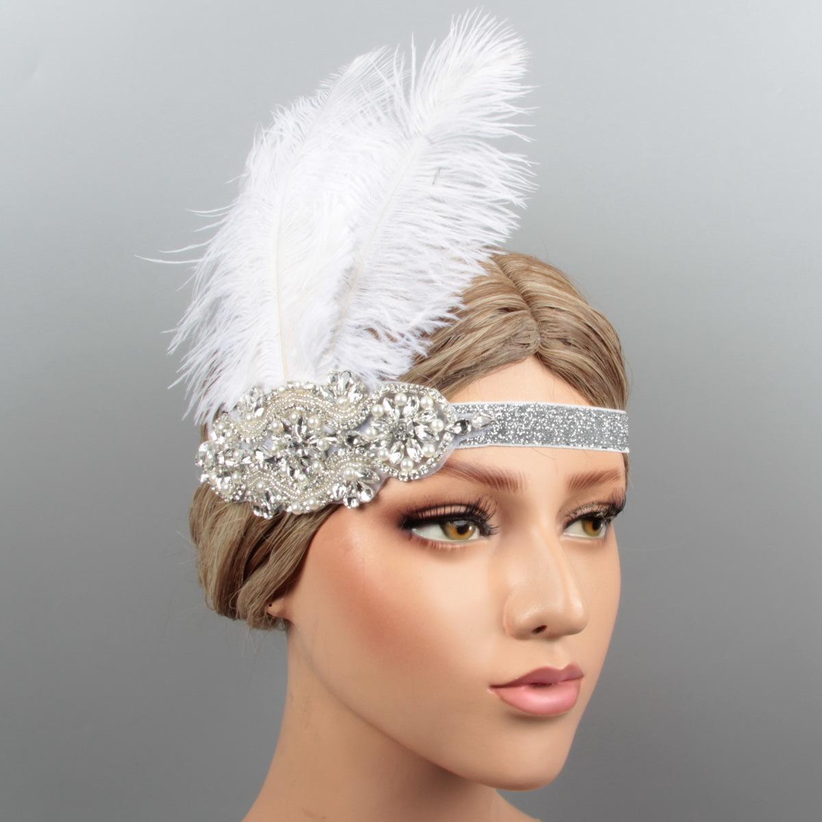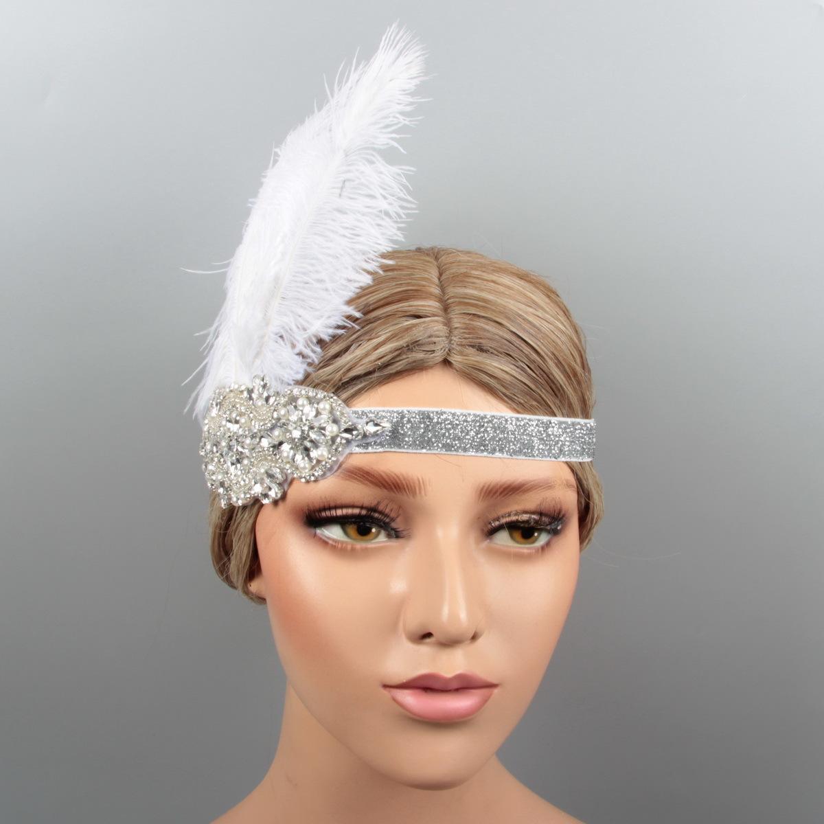 Diadema de plumas, tocado de novia, diadema estilo Gatsby. Las plumas son largas y cortas, ¡no tomes fotos si te importa!