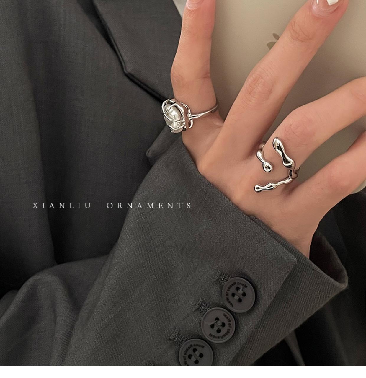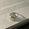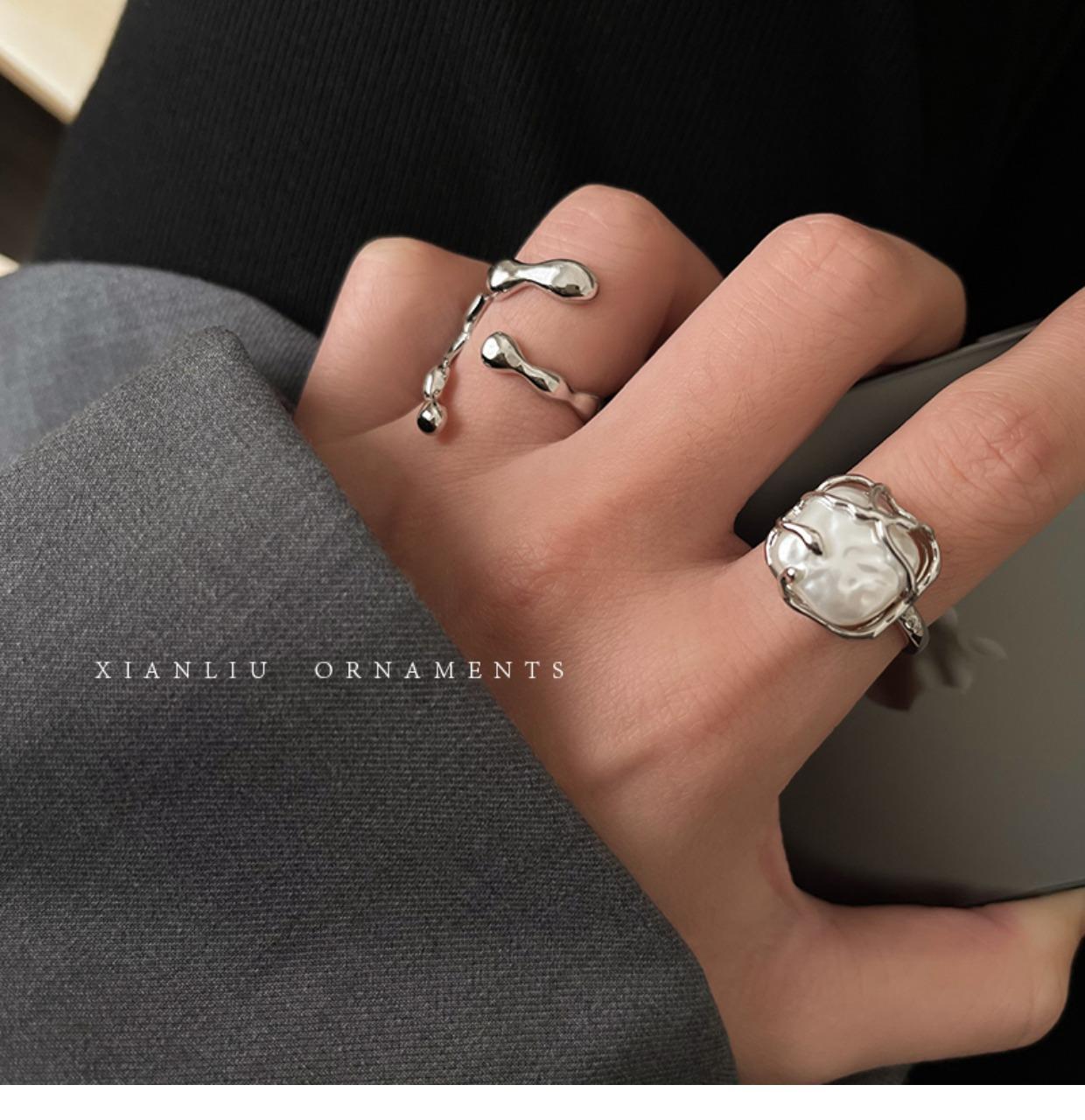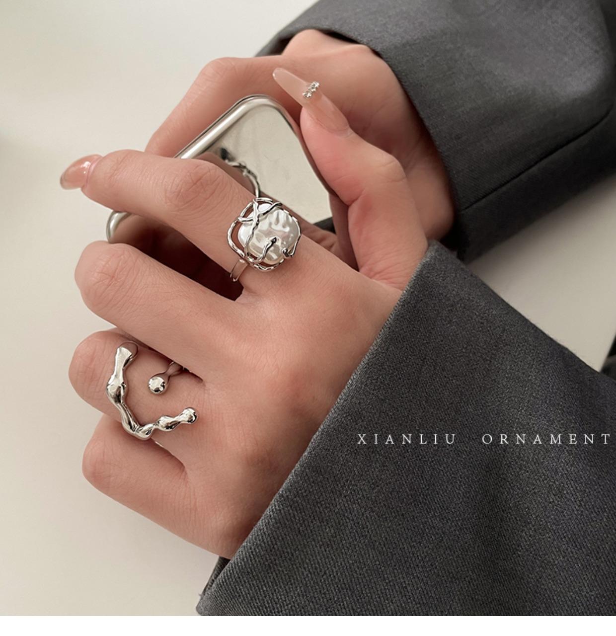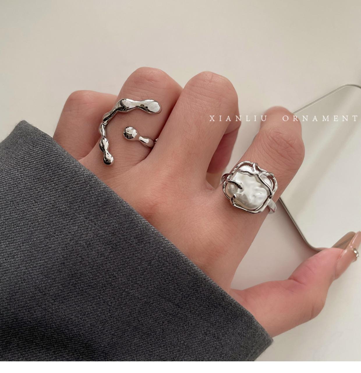 Anillo de Perla Envolvente de Plata S925 Estilo Coreano para Mujer Moda Retro Elegante Textura Anillo Abierto en Forma de C para Dedo Comida Anillo para Dedo Trendy