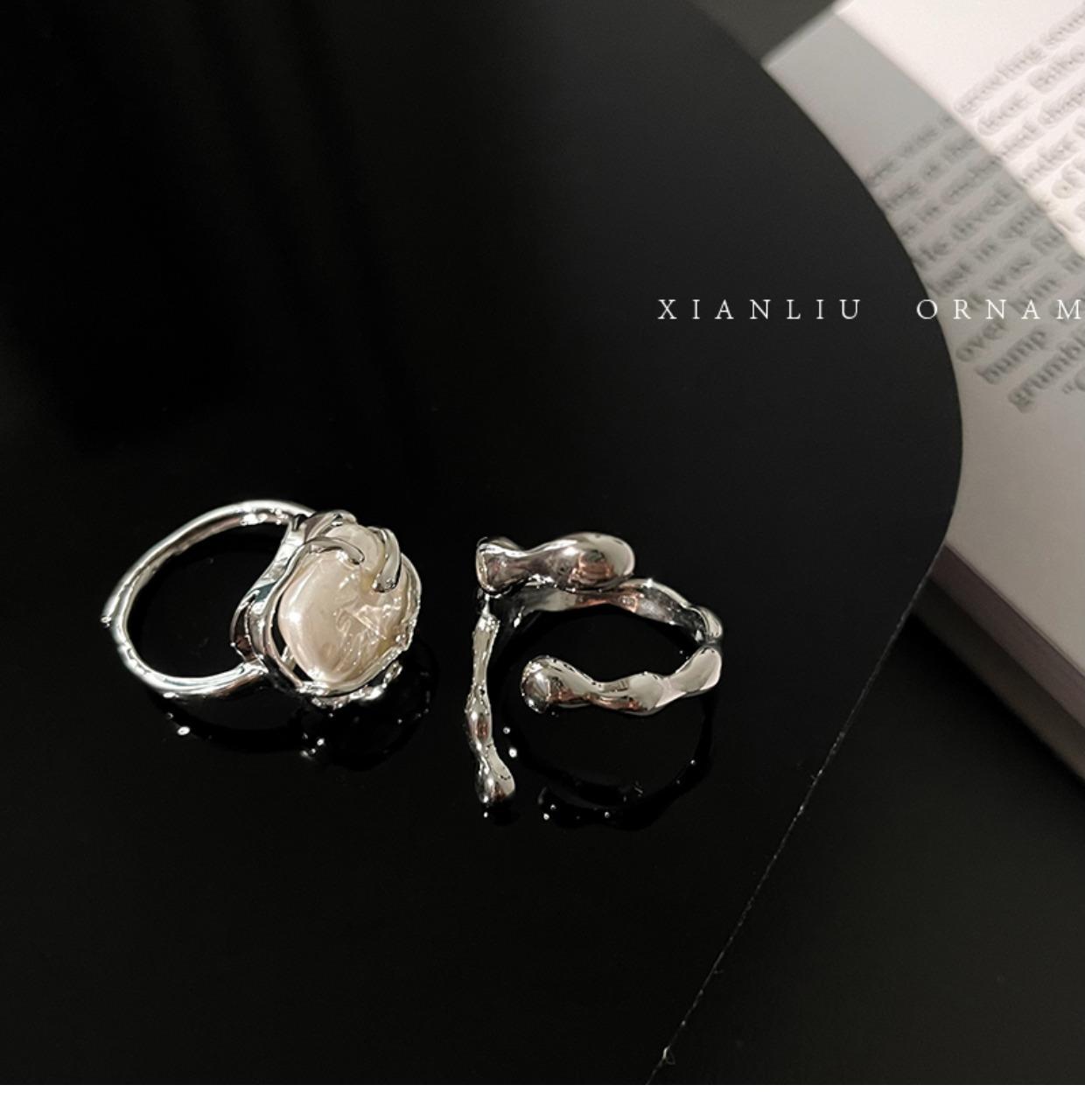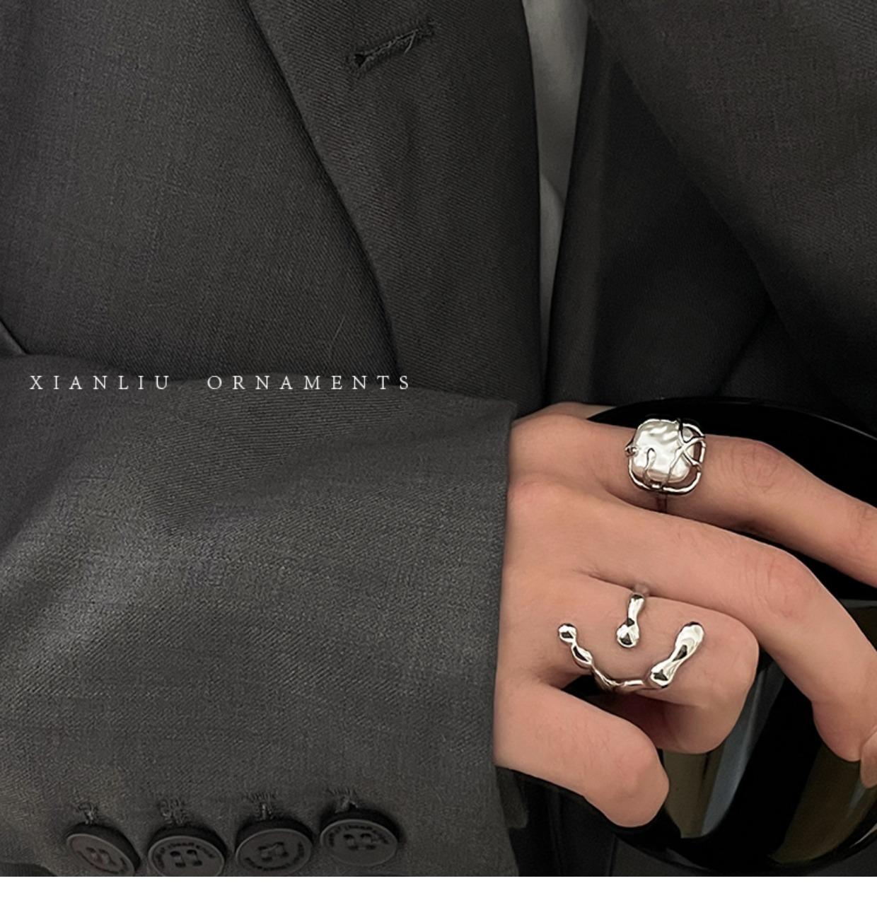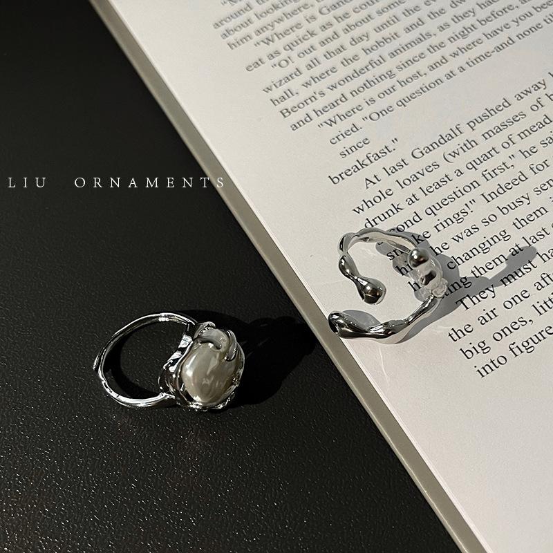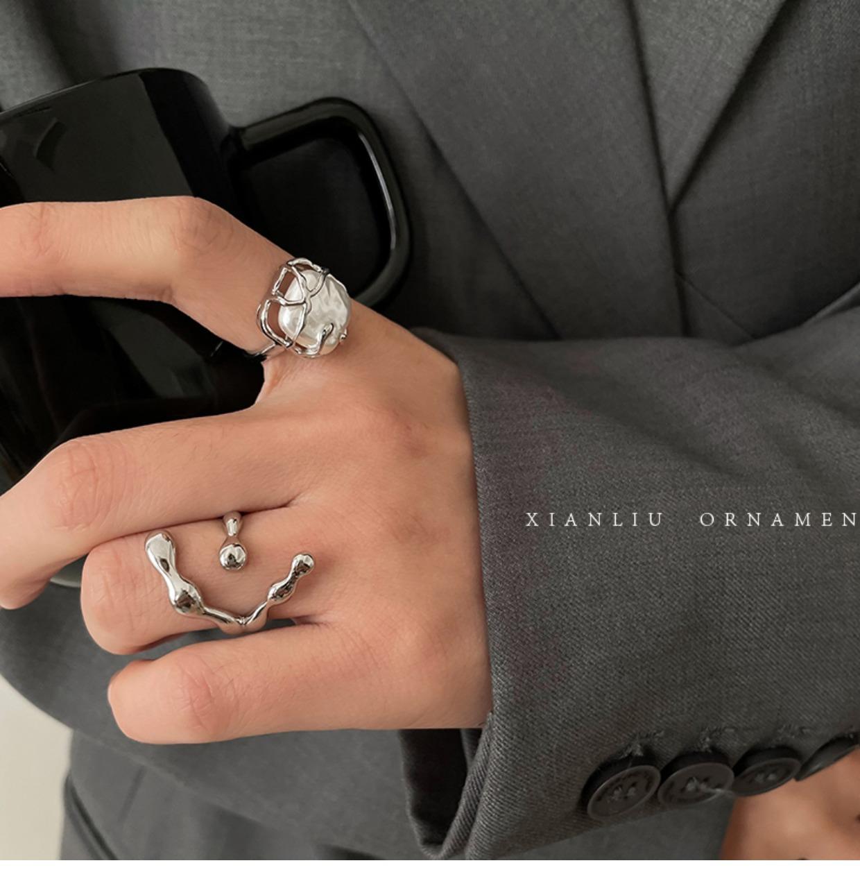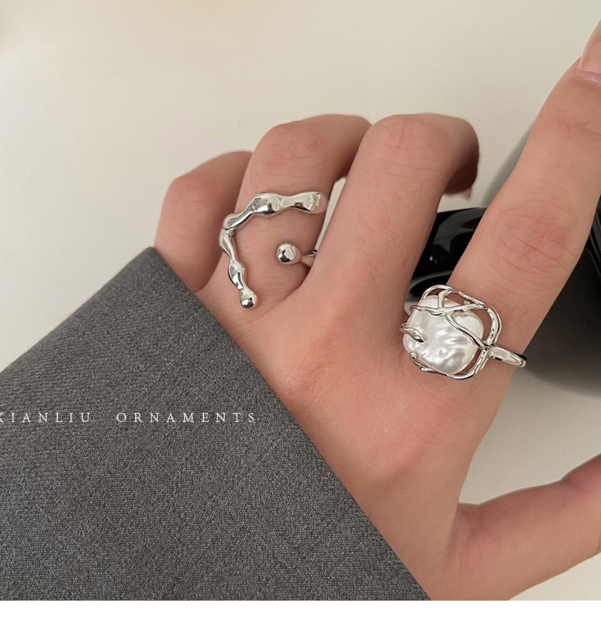 Anillo de Perla Envolvente de Plata S925 Estilo Coreano para Mujer Moda Retro Elegante Textura Anillo Abierto en Forma de C para Dedo Comida Anillo para Dedo Trendy