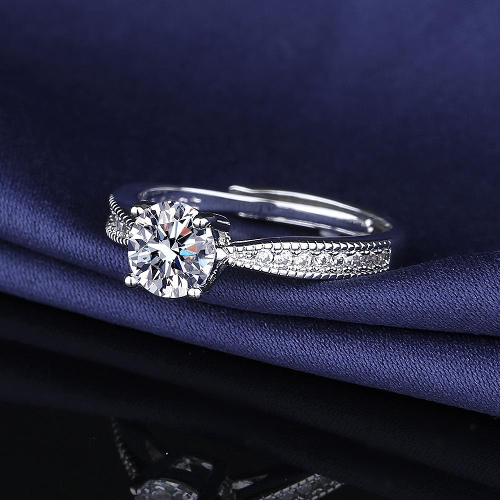 Transmisión en vivo de TikTok: anillo de rocío blanco de gran venta en Japón y Corea, clásico anillo de bodas de lujo ligero de moissanita de cuatro garras de 1 quilate.