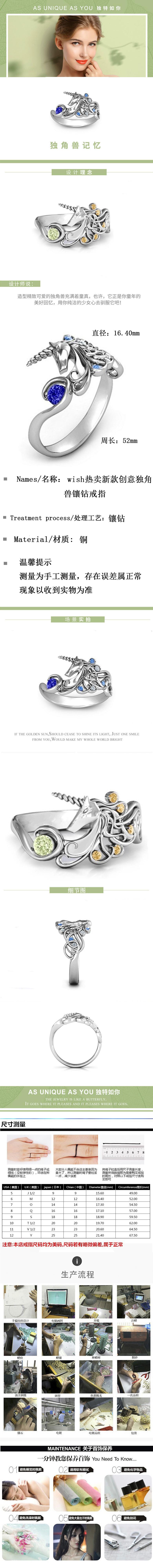 Zhen Rong desea el mejor anillo de diamantes de unicornio creativo nuevo y más vendido, anillo de bodas de zafiro plateado europeo y americano.