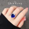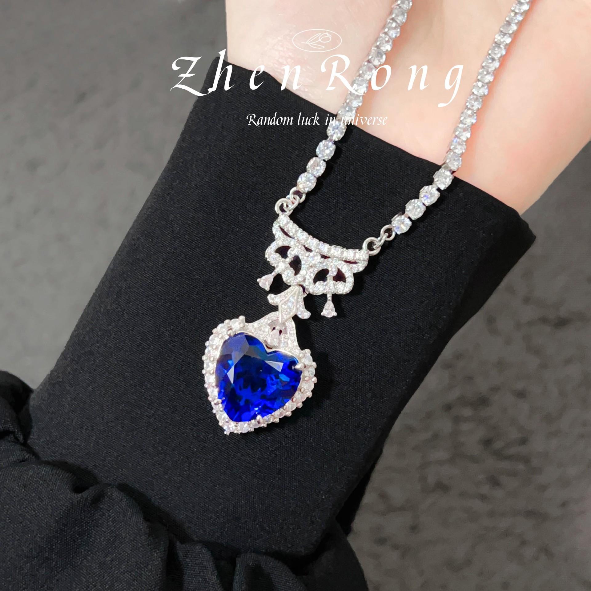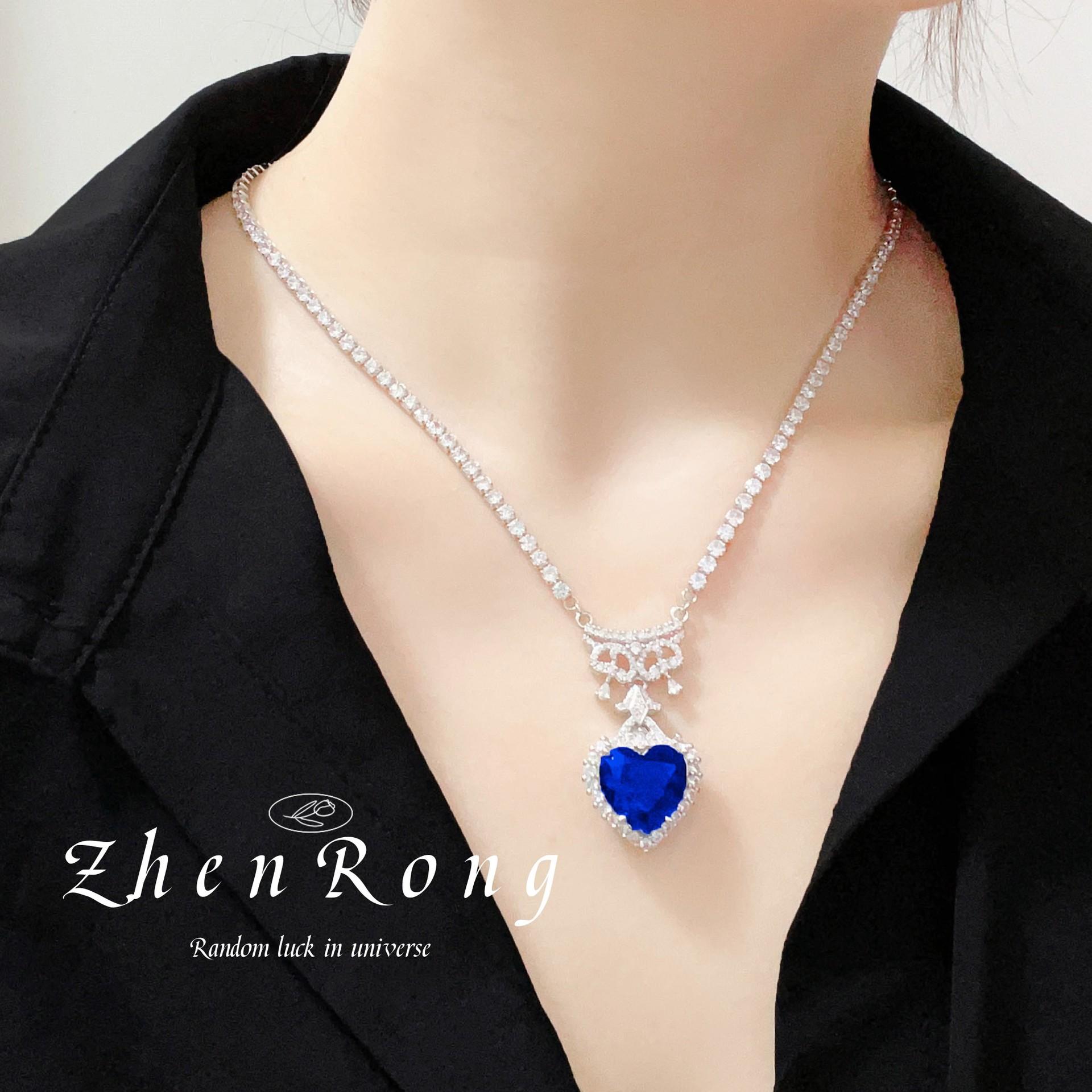 Collar con colgante de circonitas de lujo, elegante y ligero, de alta calidad, con traje azul real y pendientes de diamantes azules en forma de corazón, anillo de tesoro de color para mujer.
