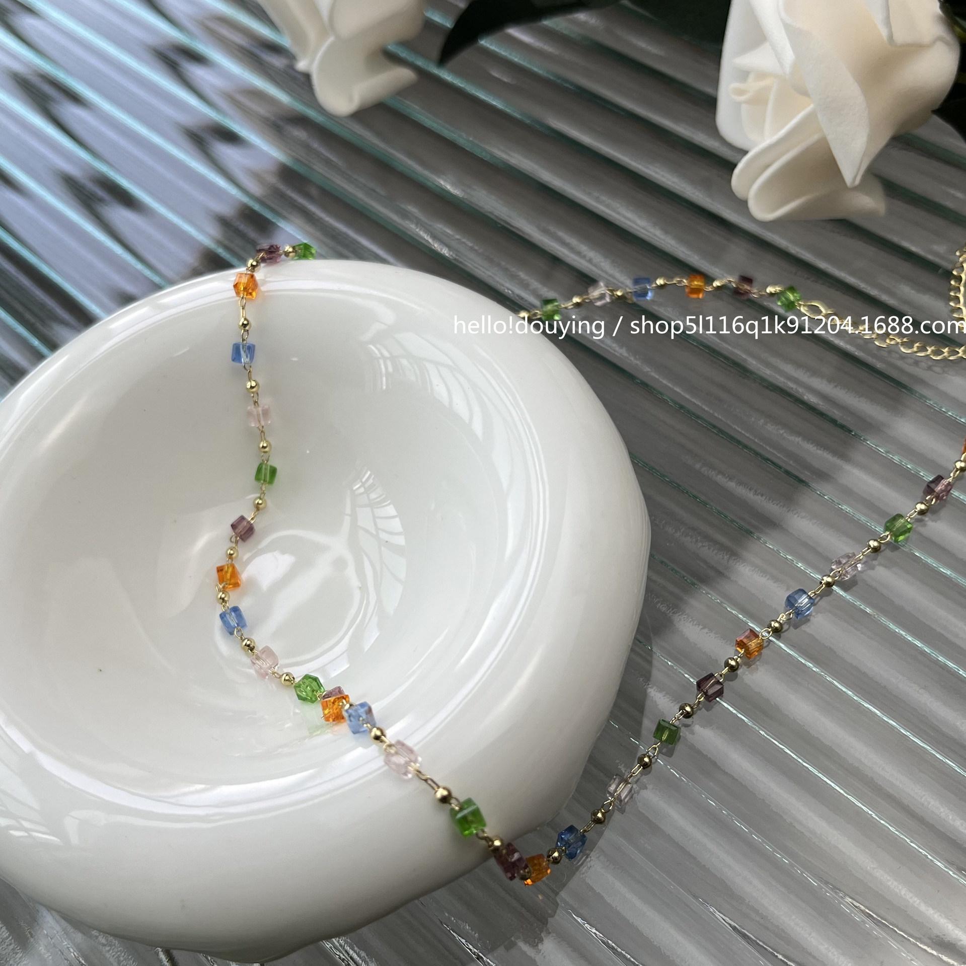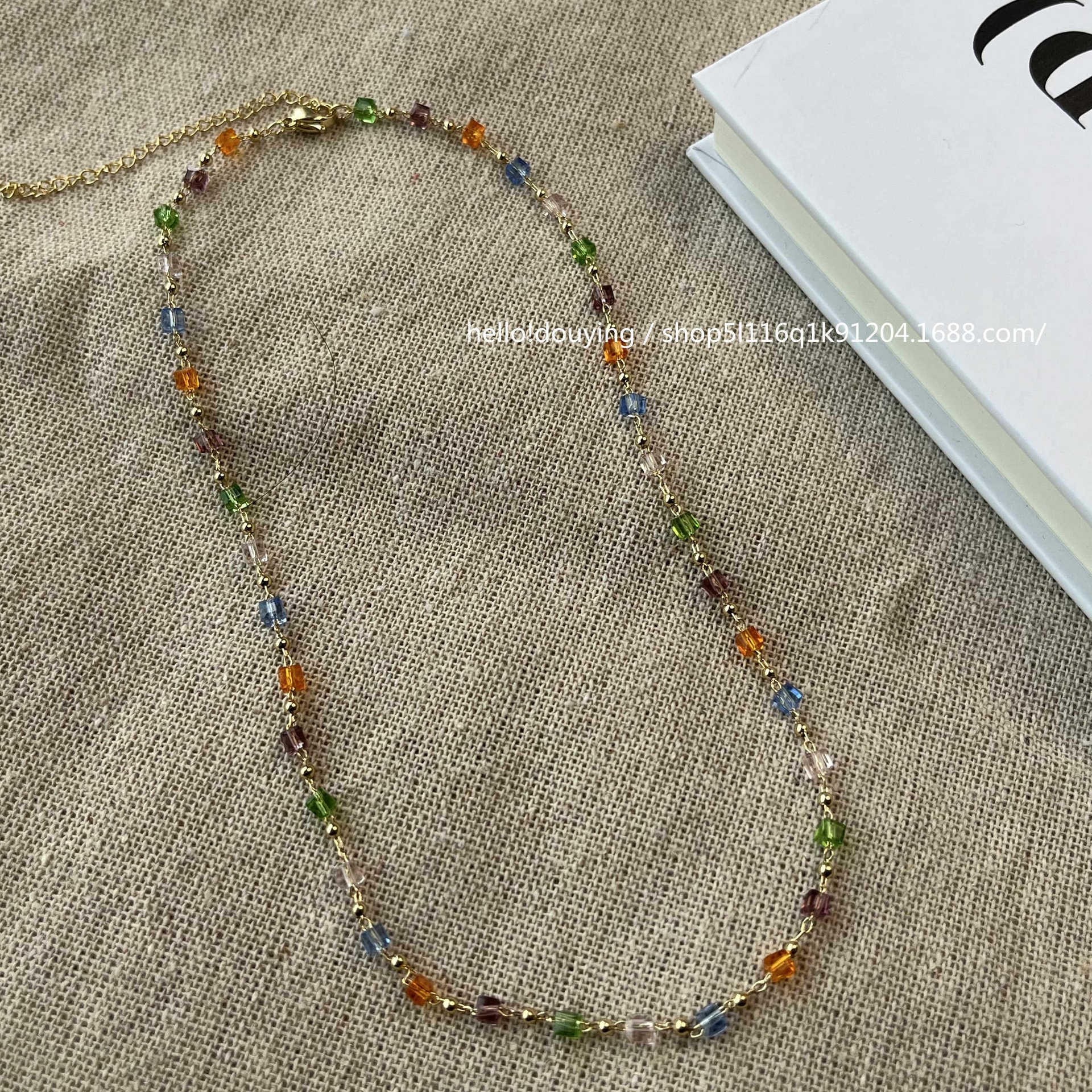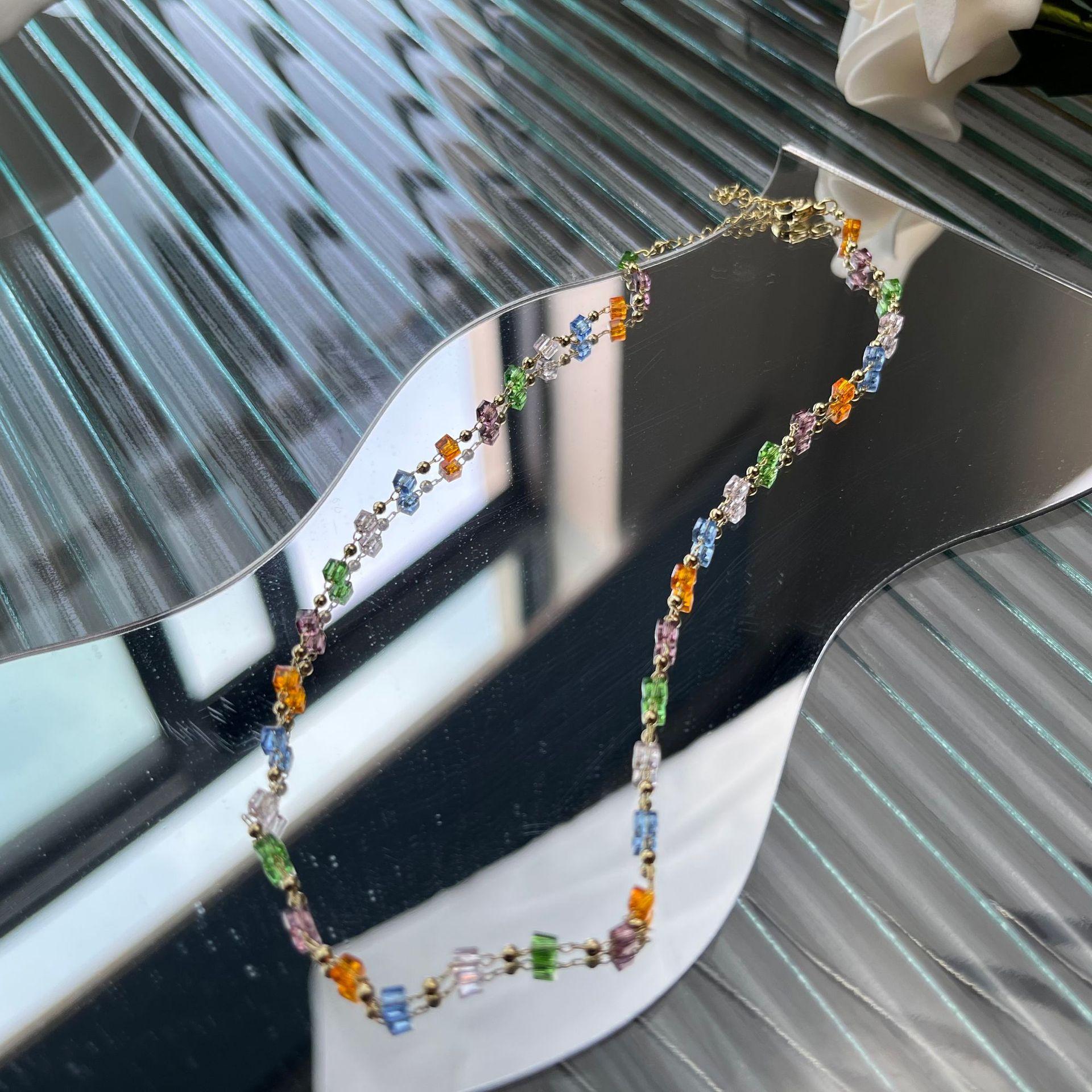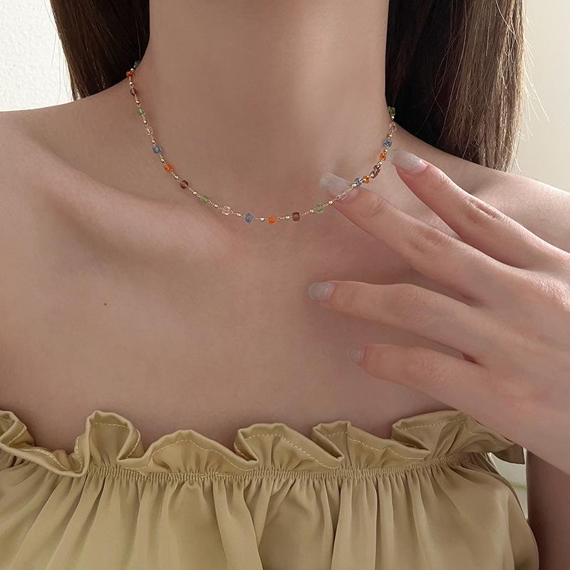 Collar de cristal de color de verano 2022 nuevo collar de cadena de clavícula de hada pequeña de lujo ligero para mujer accesorios simples