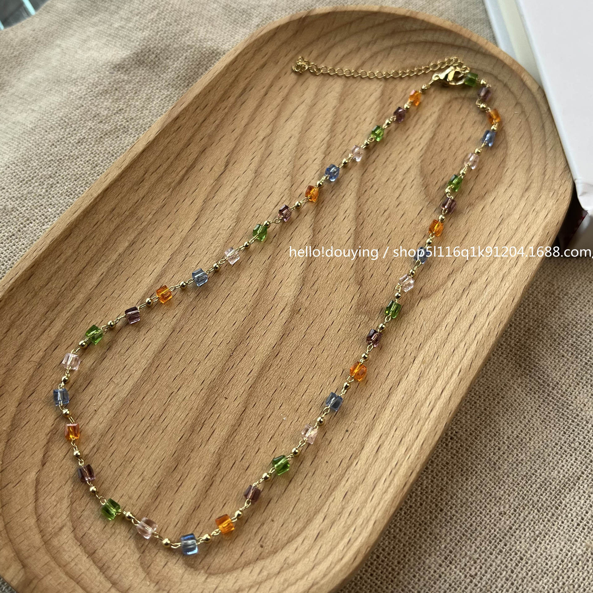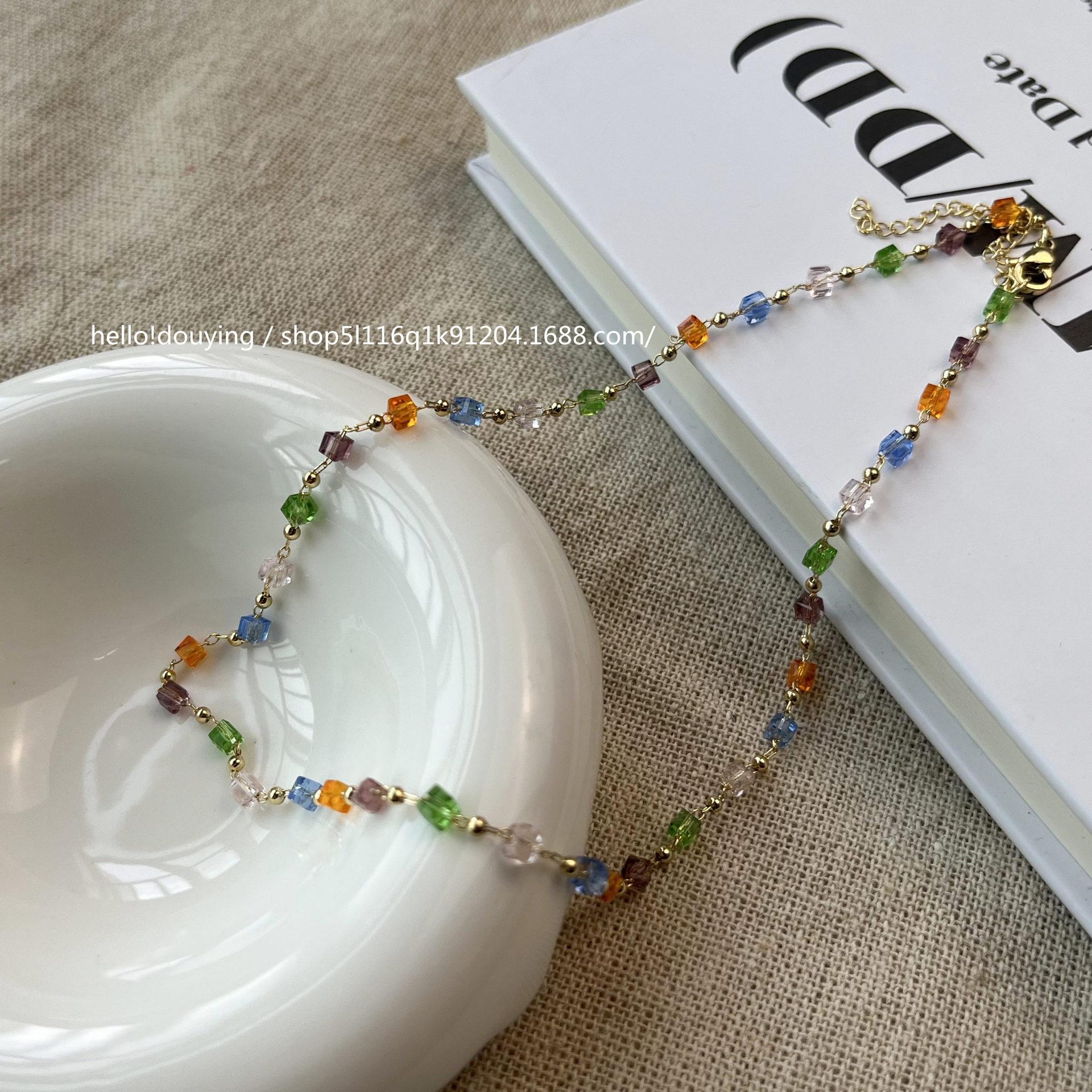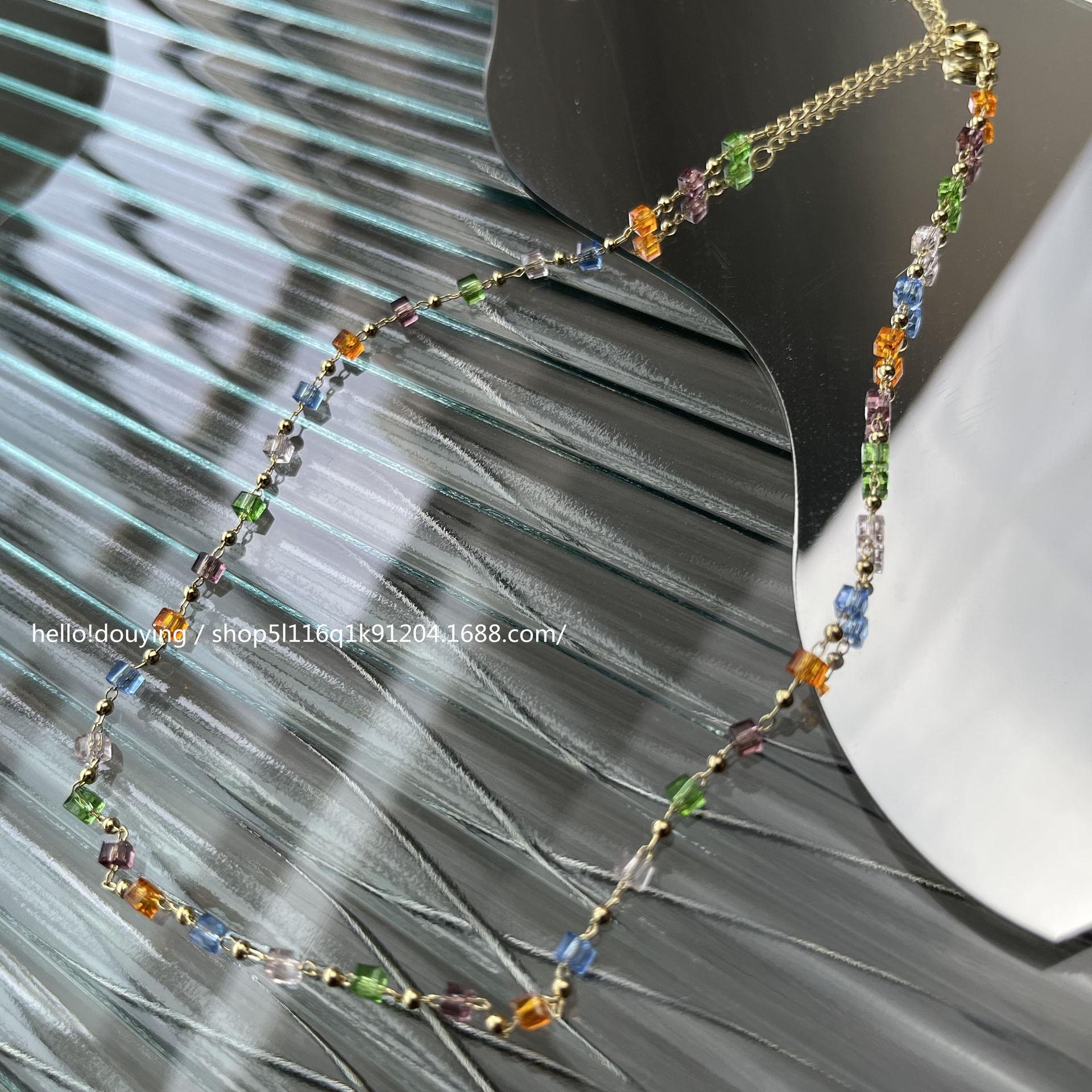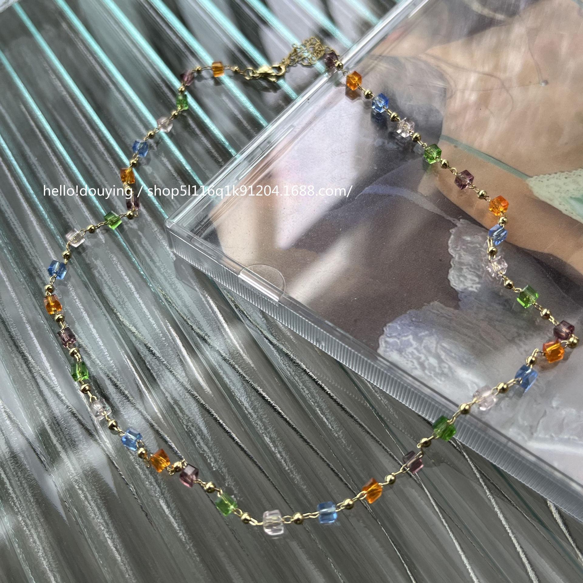 Collar de cristal de color de verano 2022 nuevo collar de cadena de clavícula de hada pequeña de lujo ligero para mujer accesorios simples