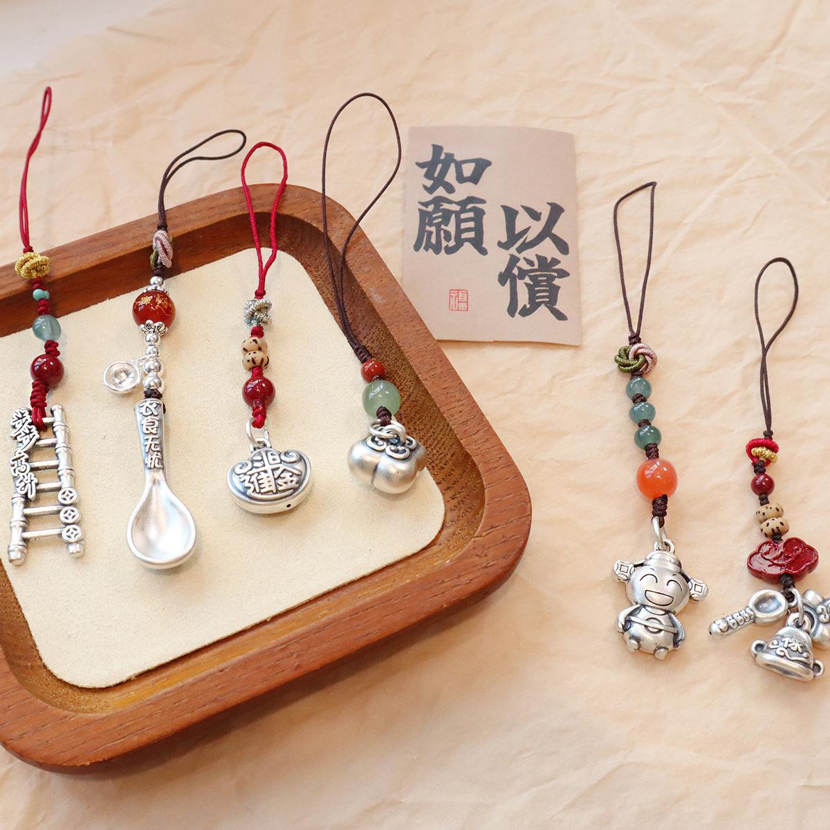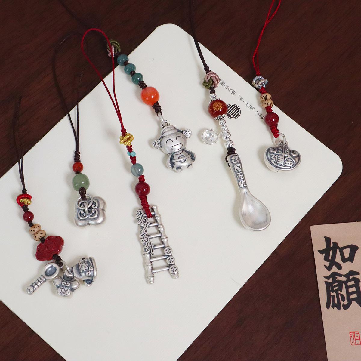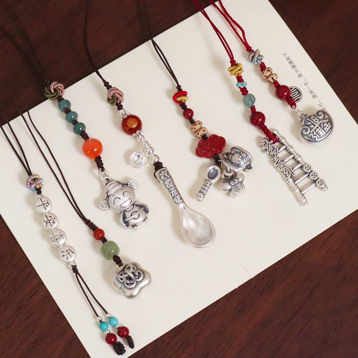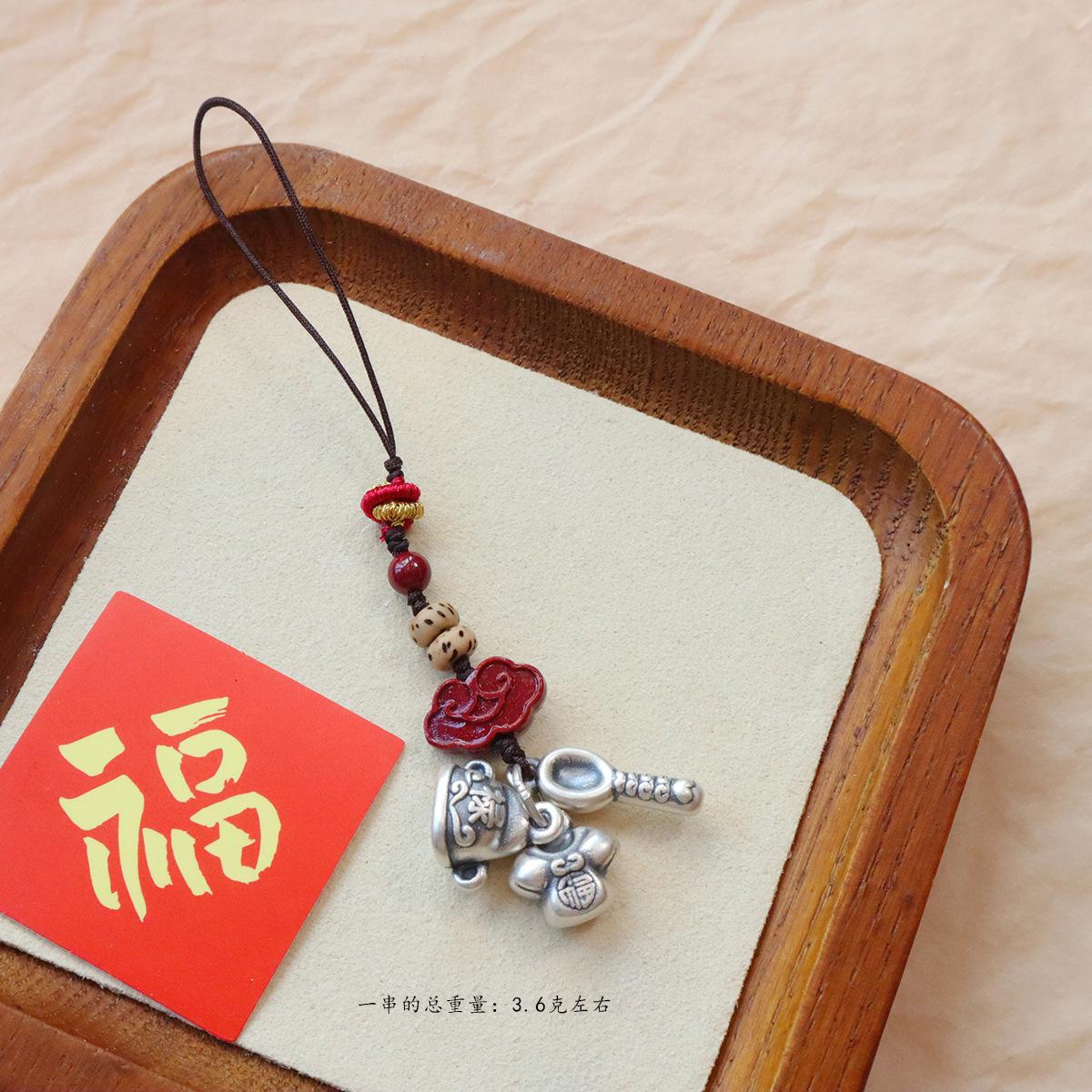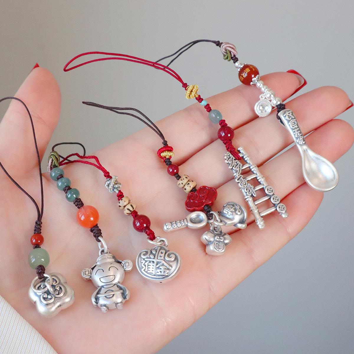 999 pure silver God of Wealth Jade South red pendant, 999 pure silver step-by-step promotion cinnabar pendant,...
