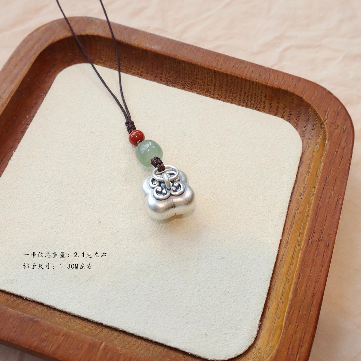 Colgante de plata pura 999 tejido a mano cinabrio Dios de la Riqueza colgante de caqui joyería colgante para hombres y mujeres llavero cadena para teléfono móvil