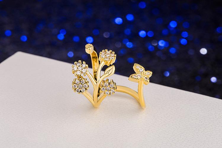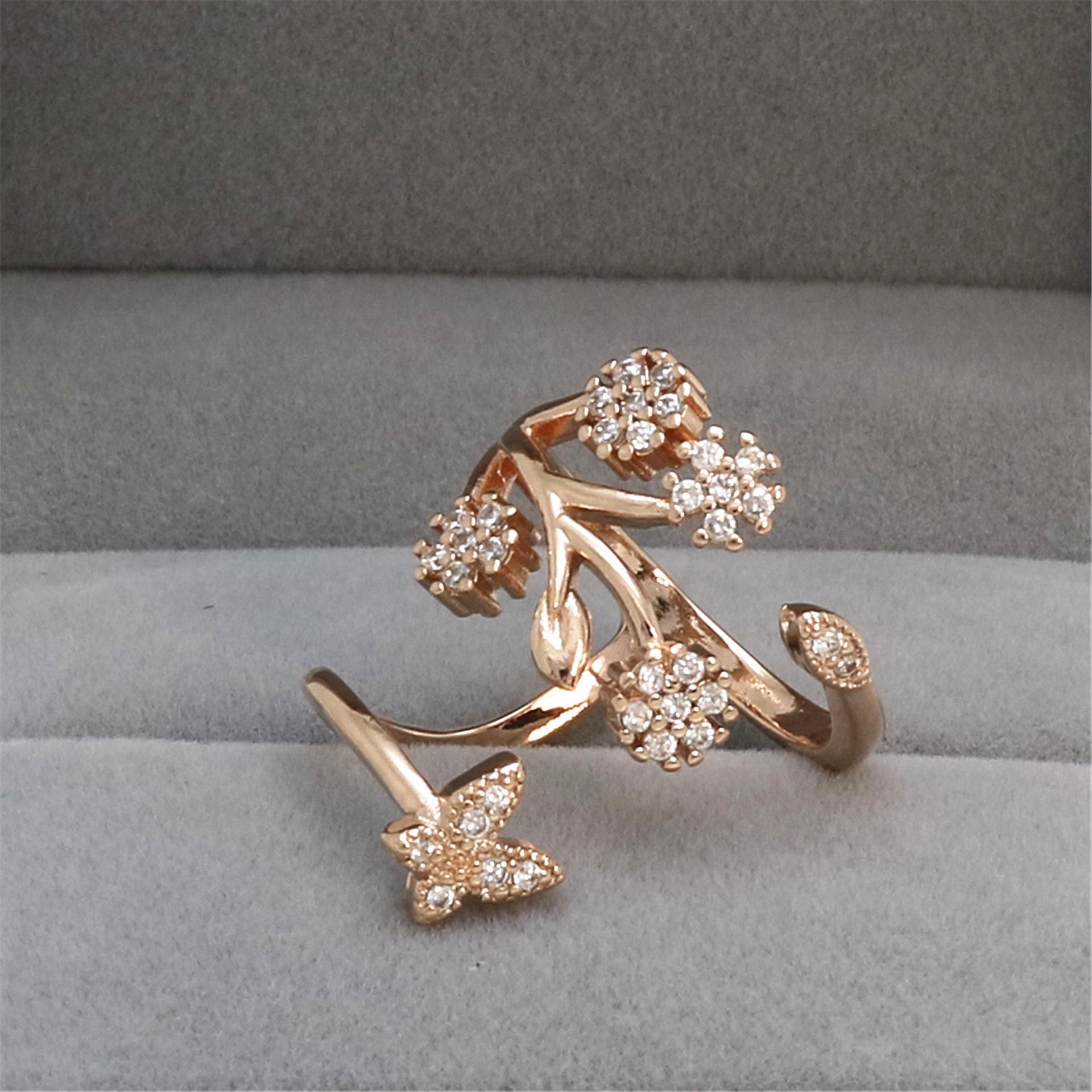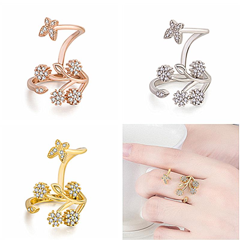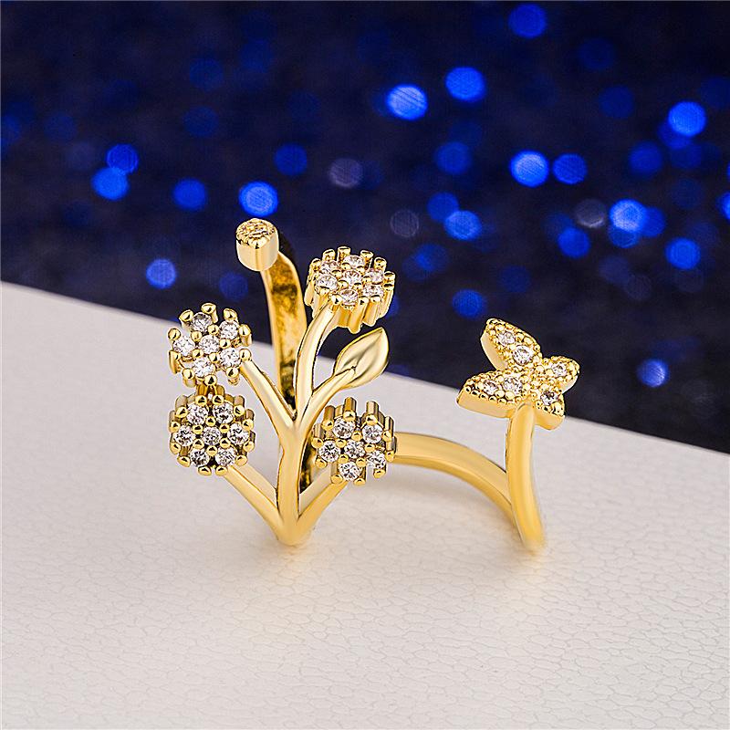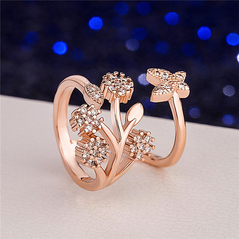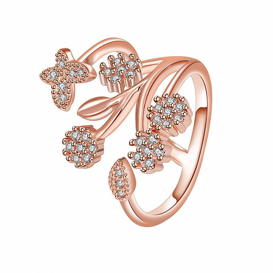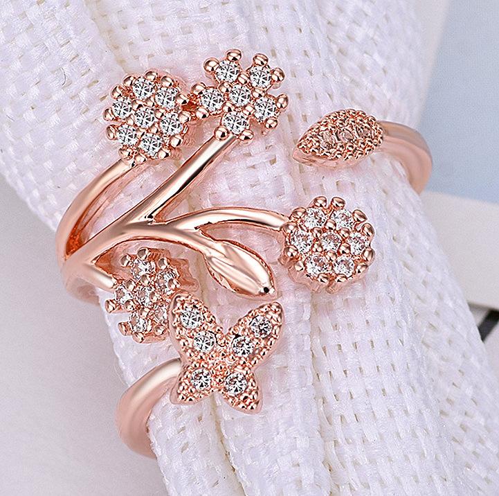 Celebridad de Internet Anillo de Circonita con Forma de Mariposa y Copo de Nieve Abierto Micro-Incrustado de Venta Caliente Chapado en Oro Rosa Anillo Personalizado