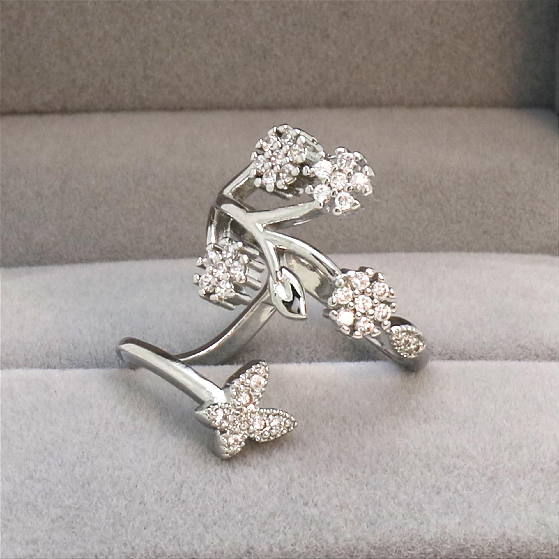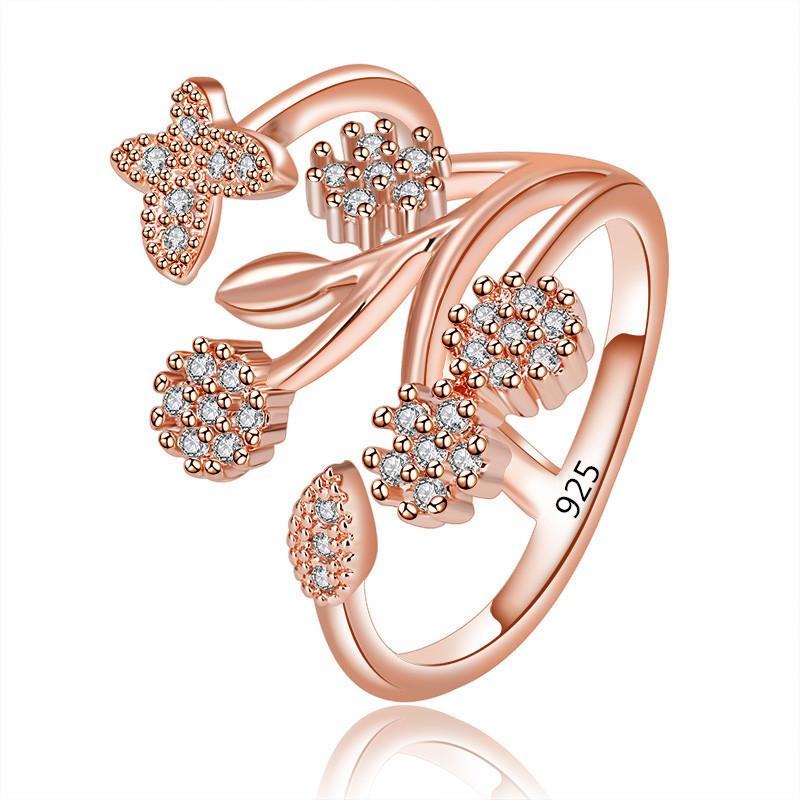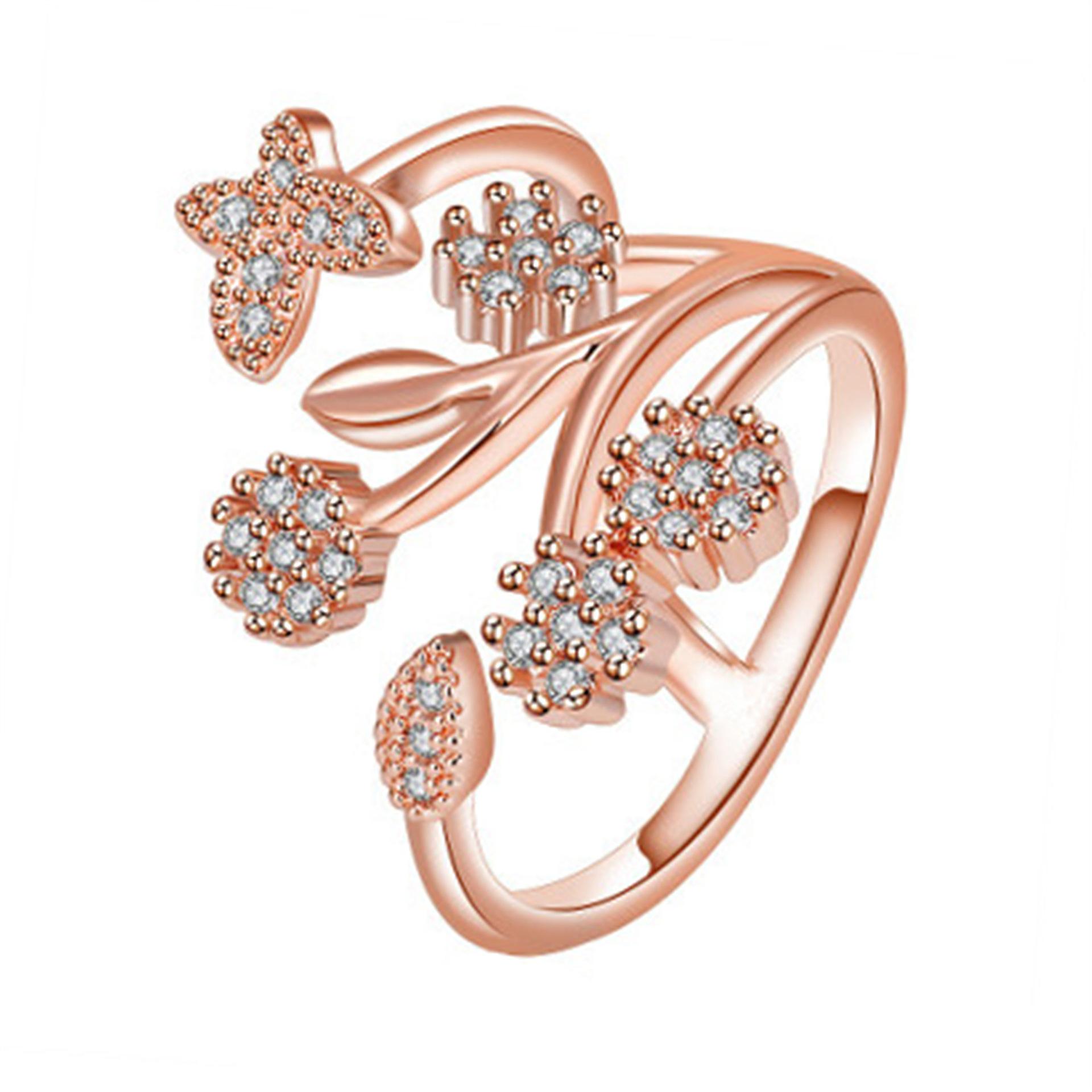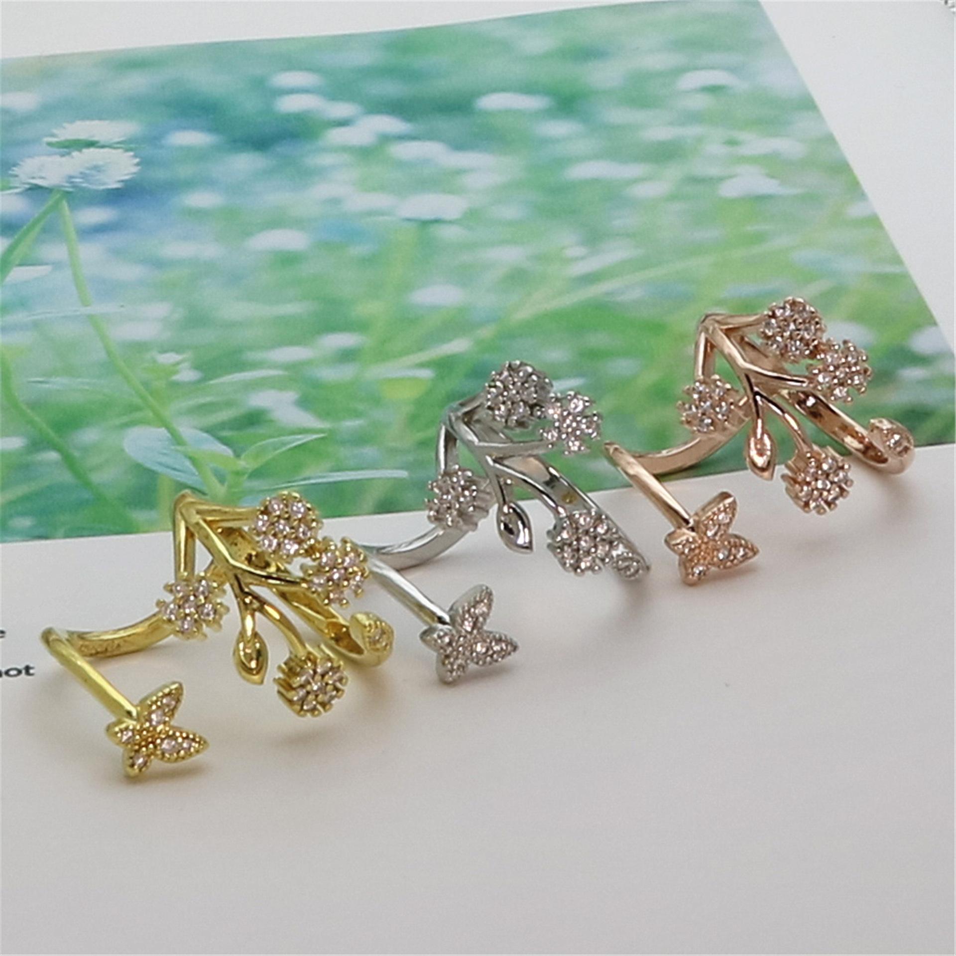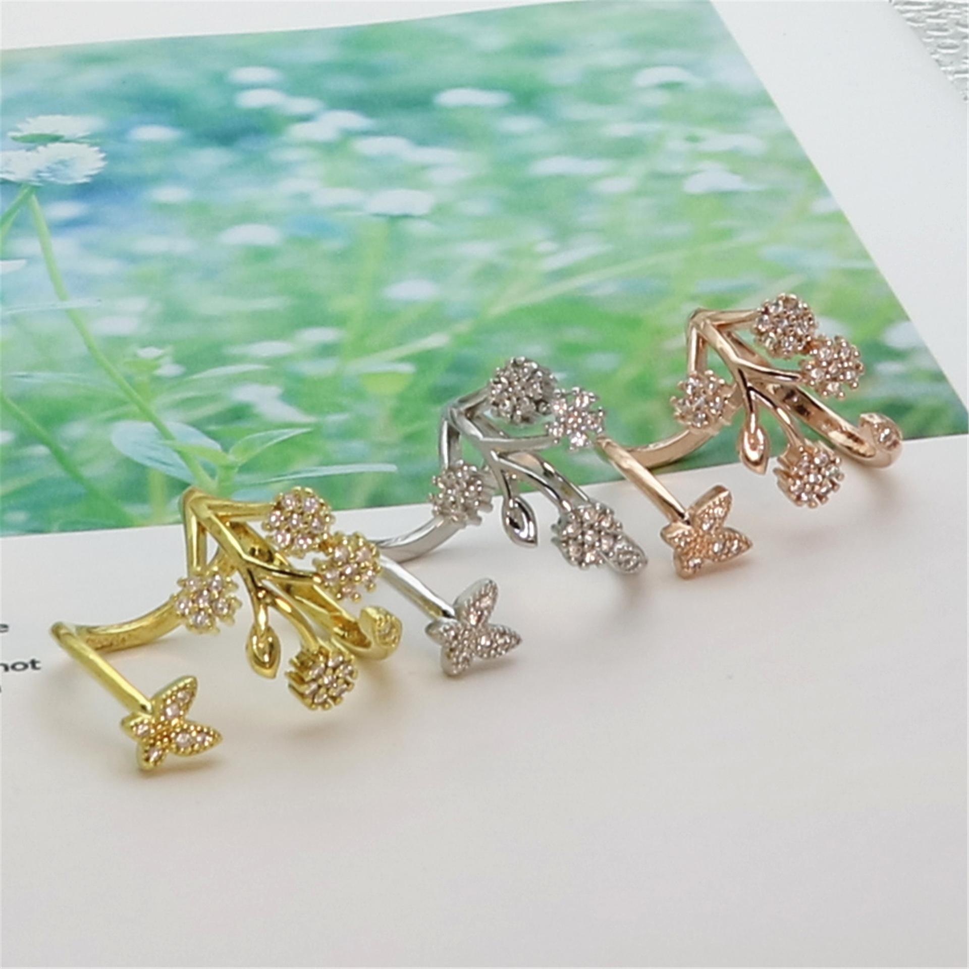 Celebridad de Internet Anillo de Circonita con Forma de Mariposa y Copo de Nieve Abierto Micro-Incrustado de Venta Caliente Chapado en Oro Rosa Anillo Personalizado