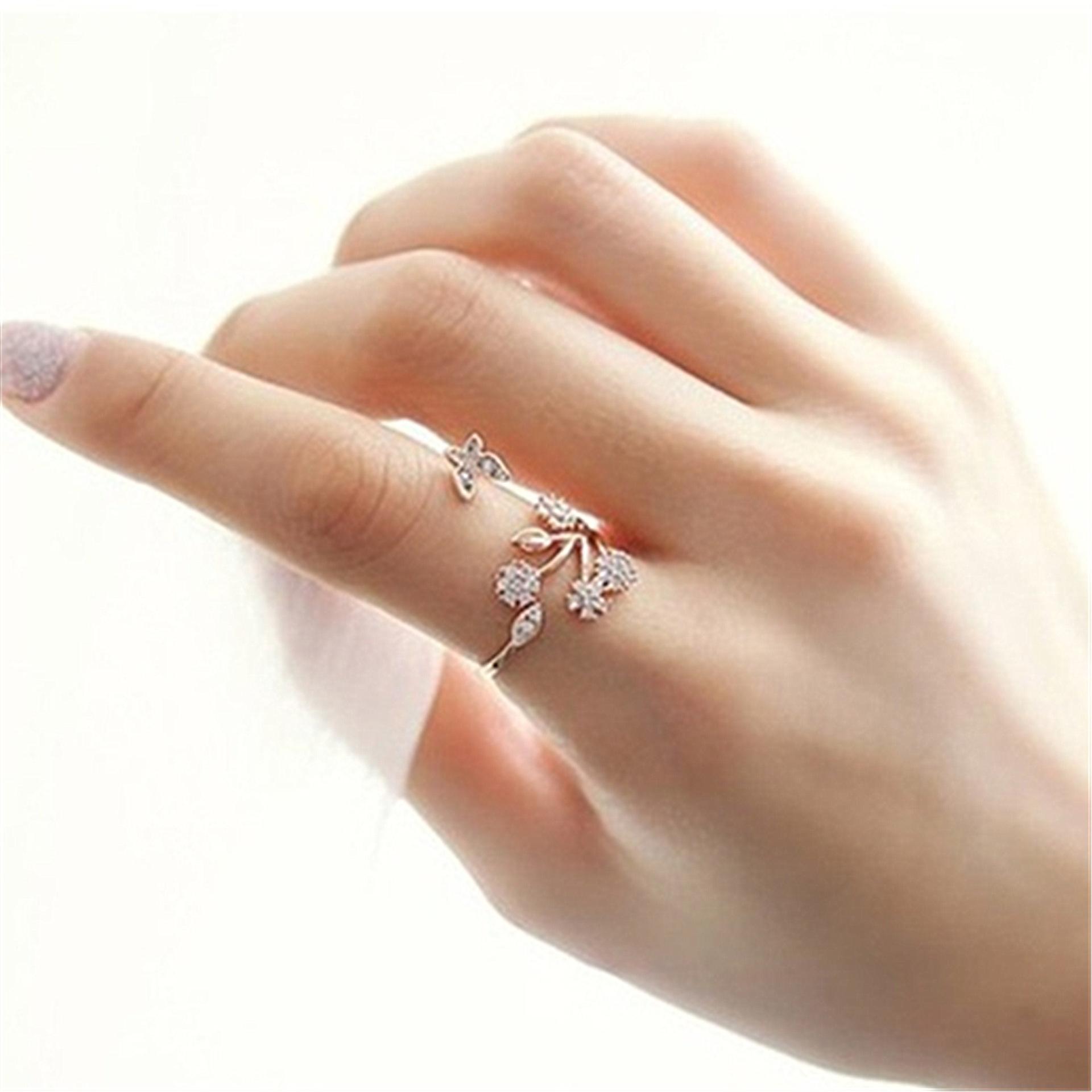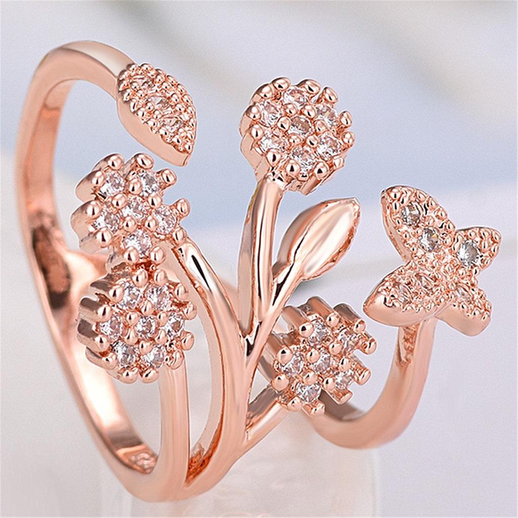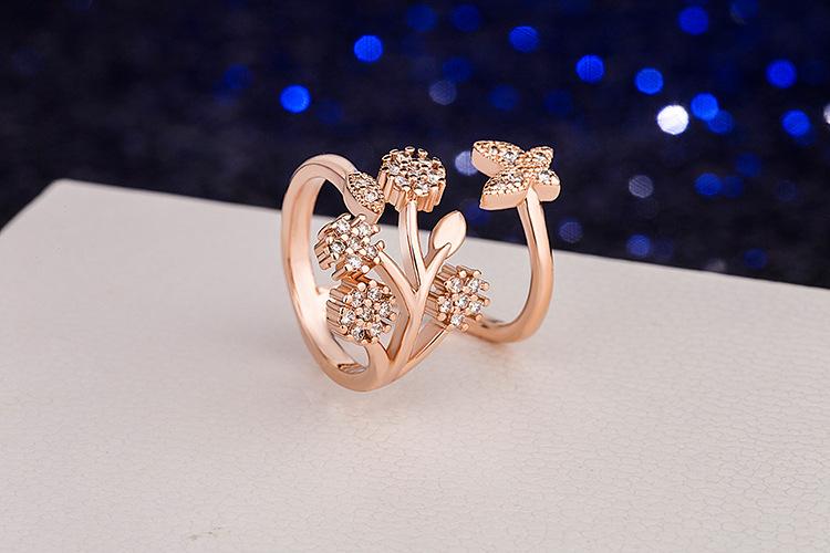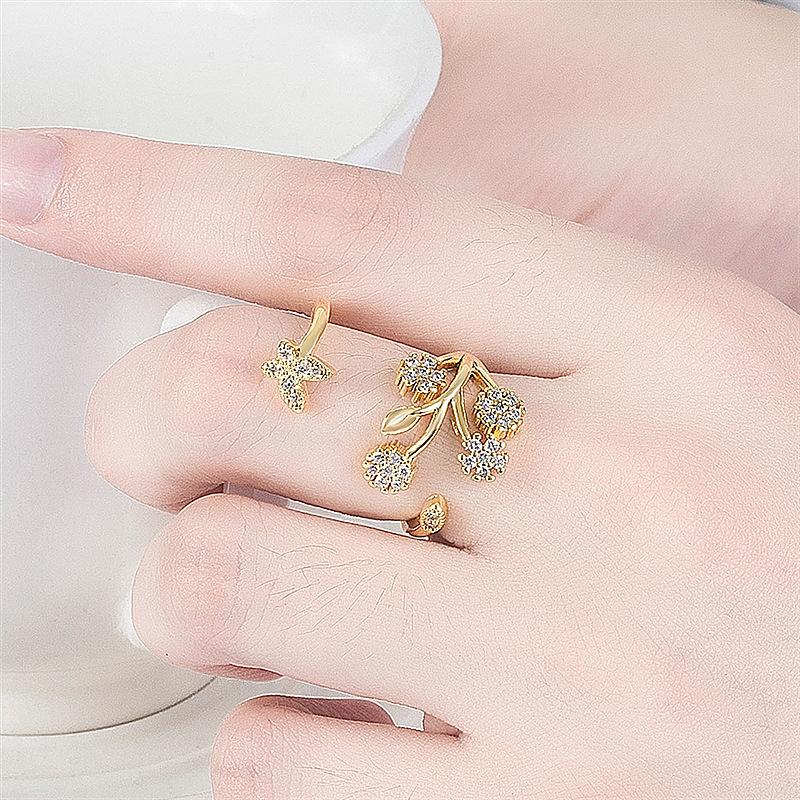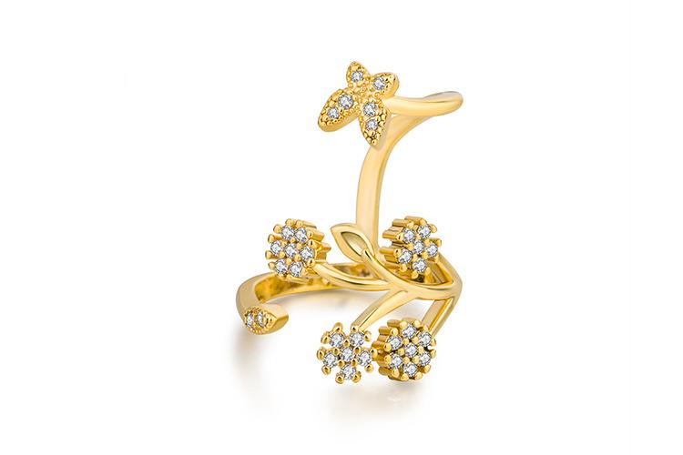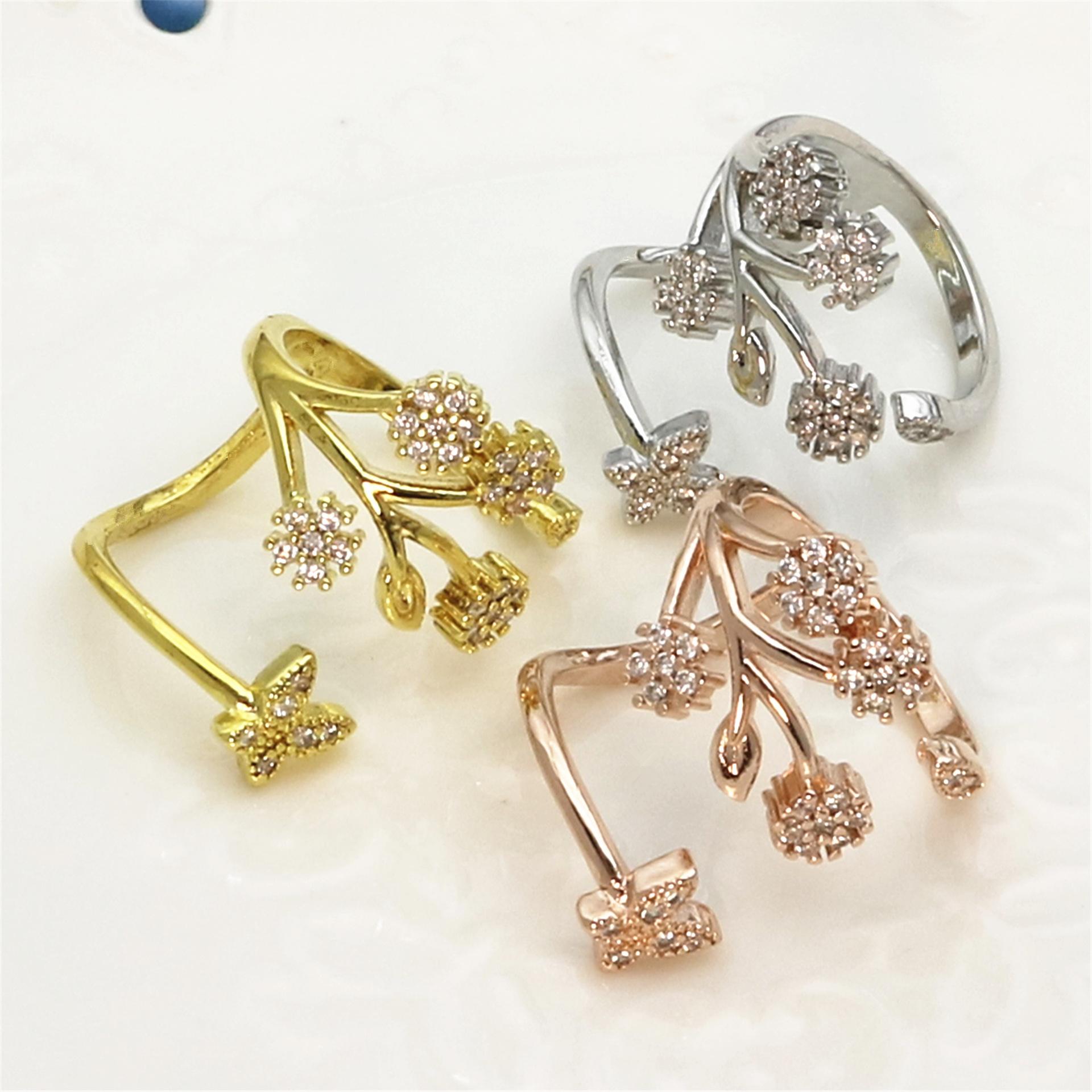 Celebridad de Internet Anillo de Circonita con Forma de Mariposa y Copo de Nieve Abierto Micro-Incrustado de Venta Caliente Chapado en Oro Rosa Anillo Personalizado