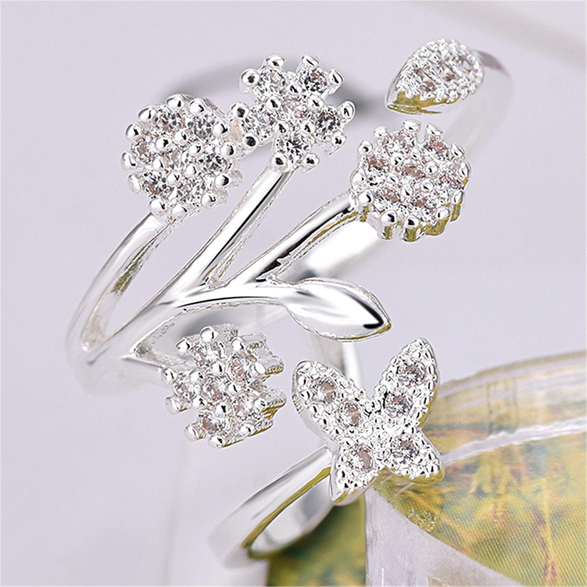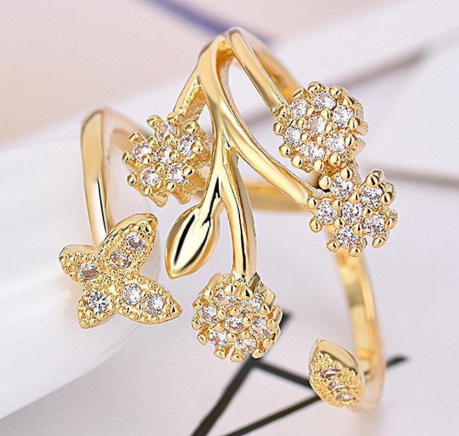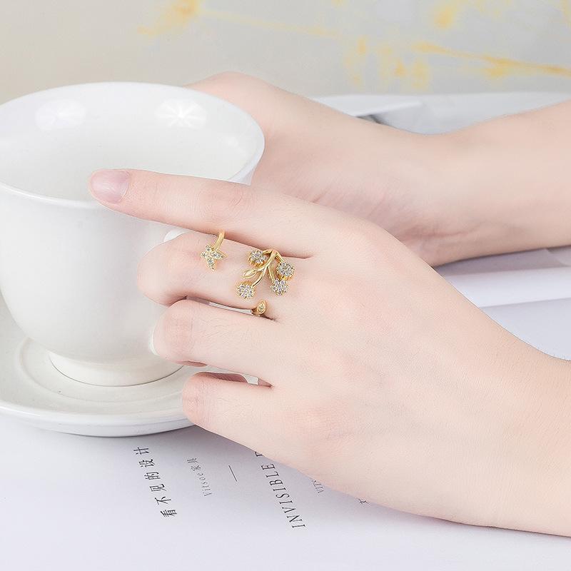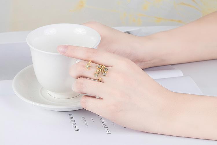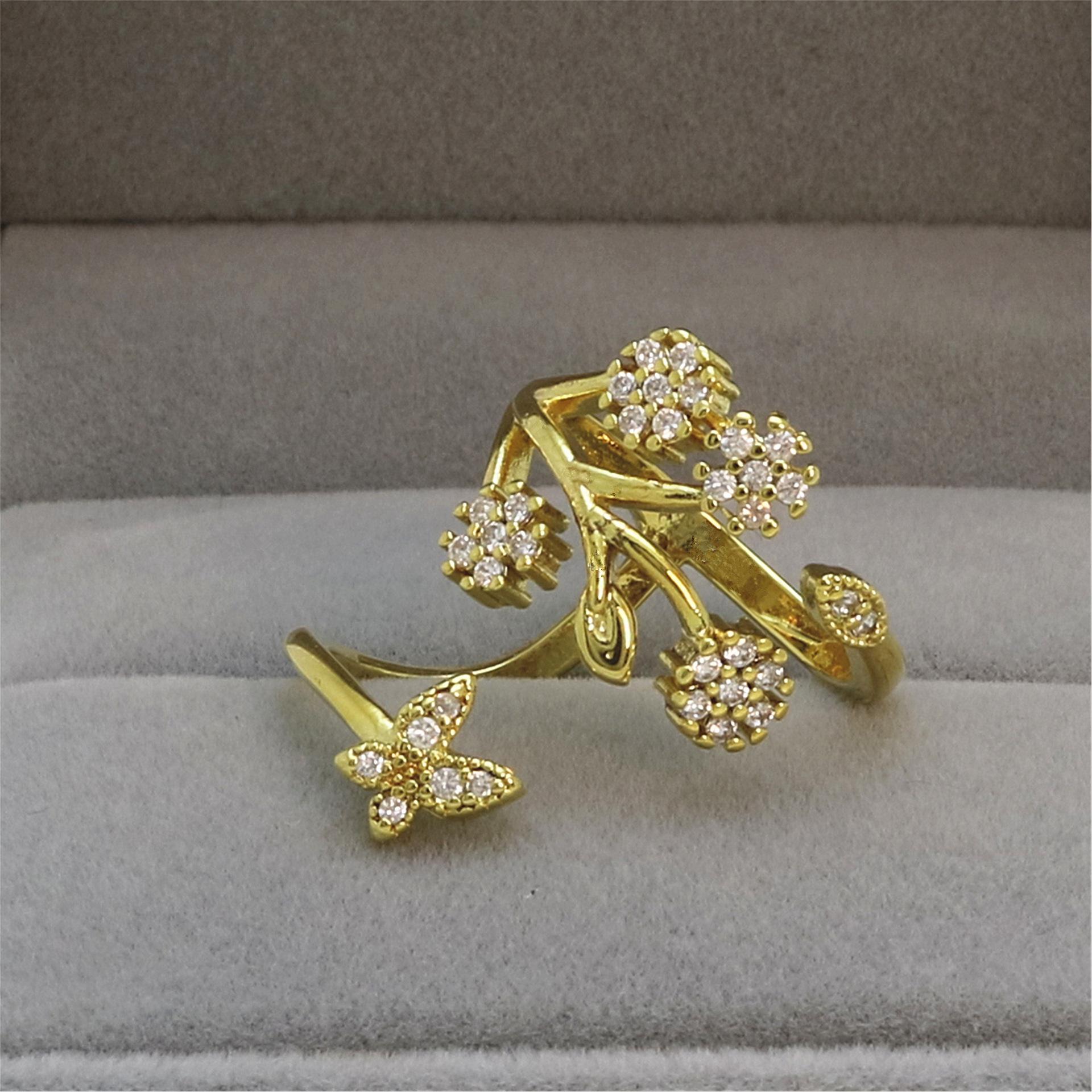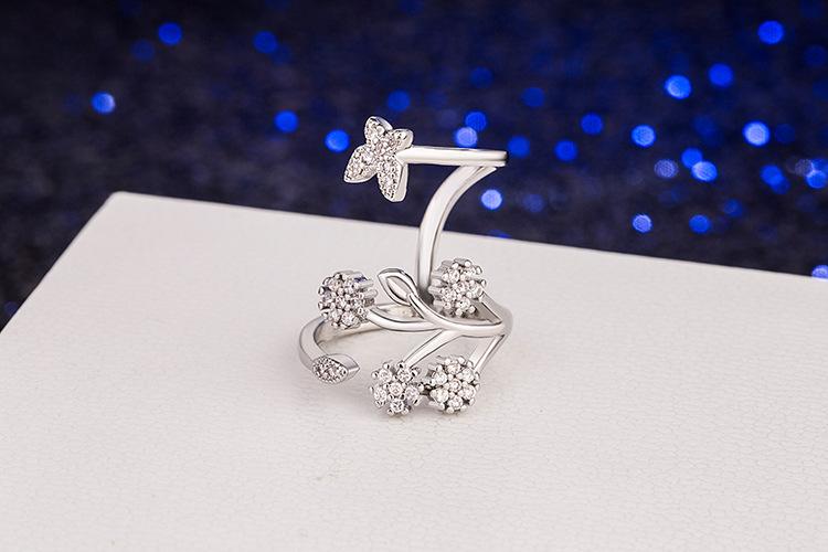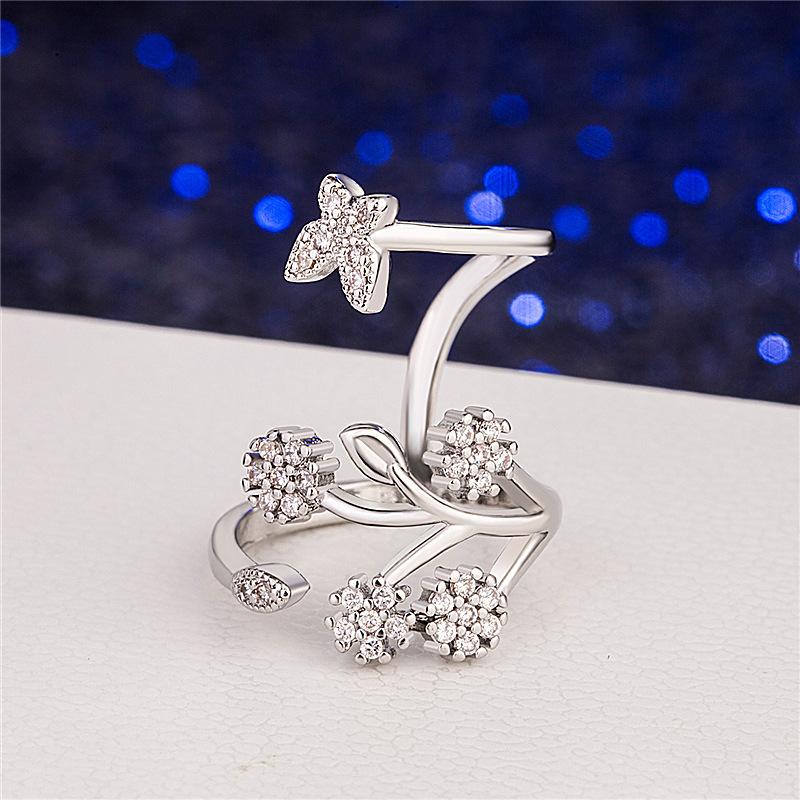 Celebridad de Internet Anillo de Circonita con Forma de Mariposa y Copo de Nieve Abierto Micro-Incrustado de Venta Caliente Chapado en Oro Rosa Anillo Personalizado