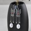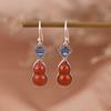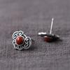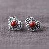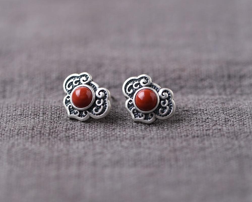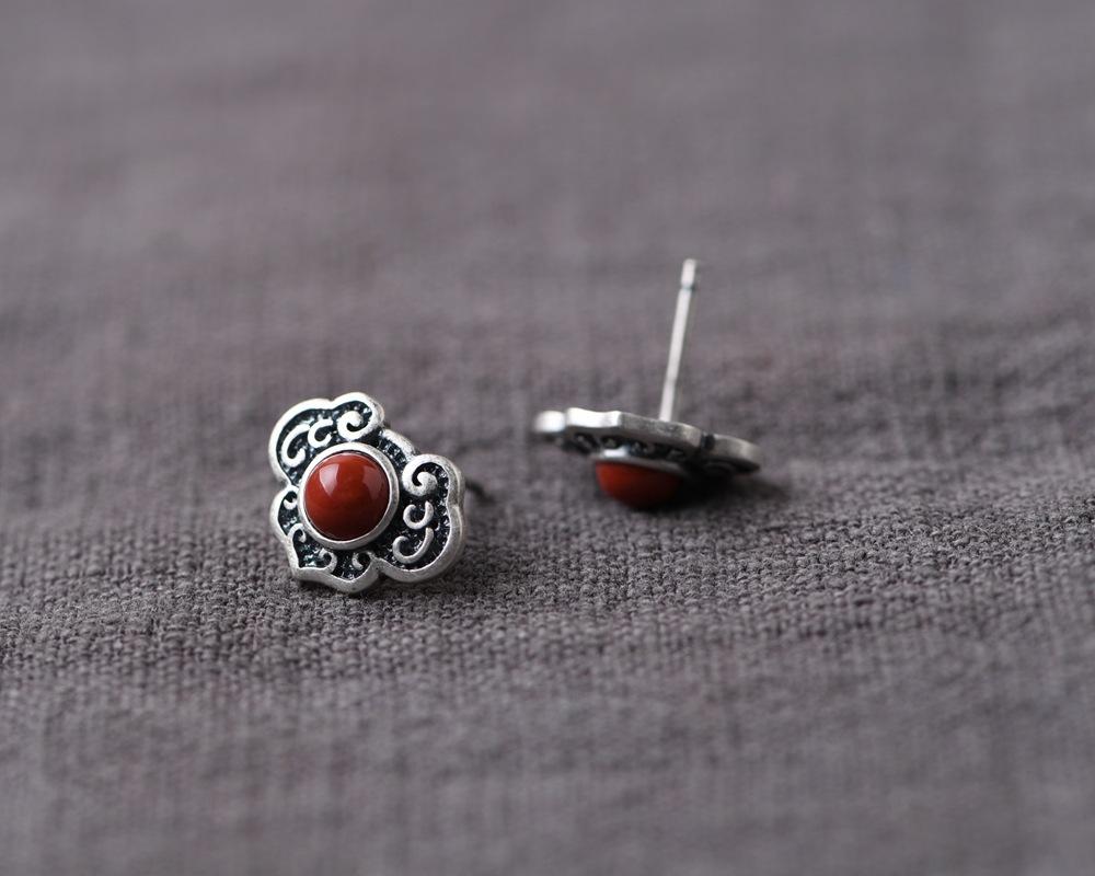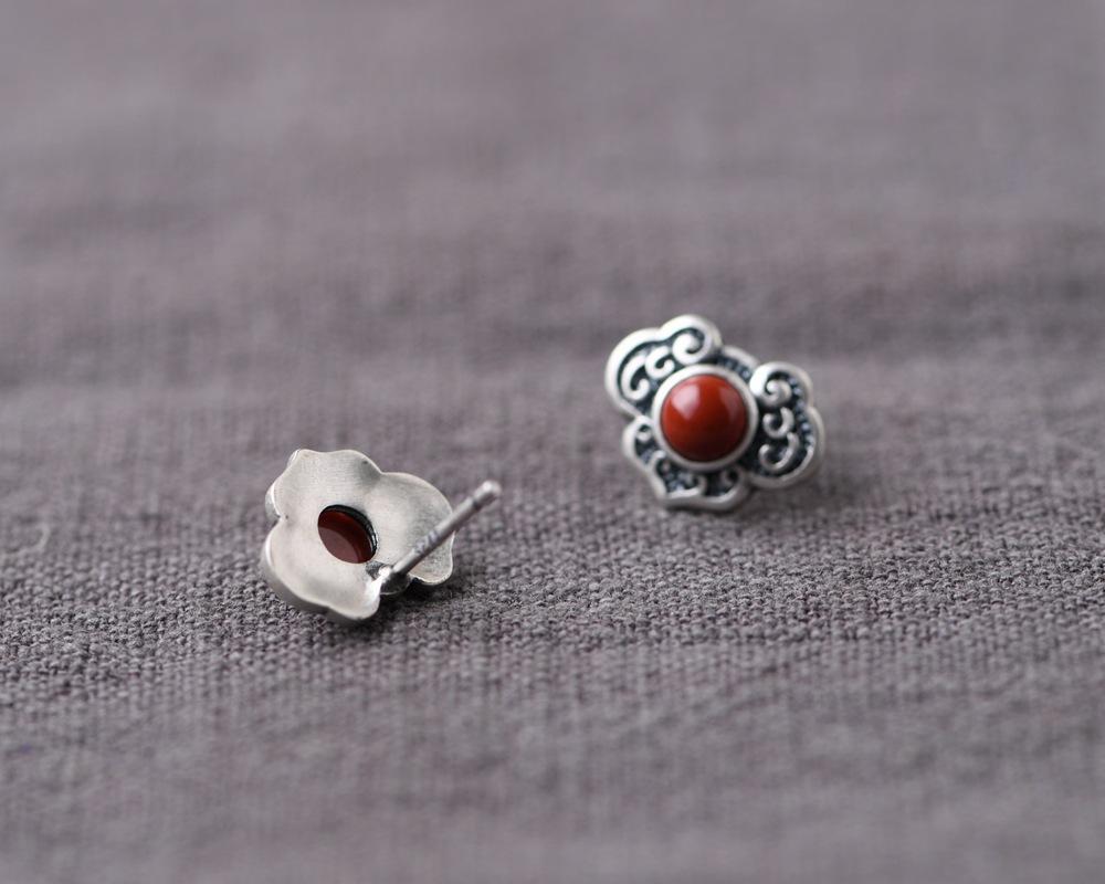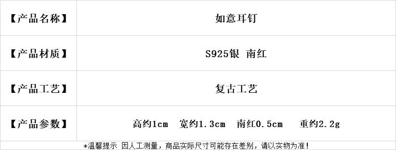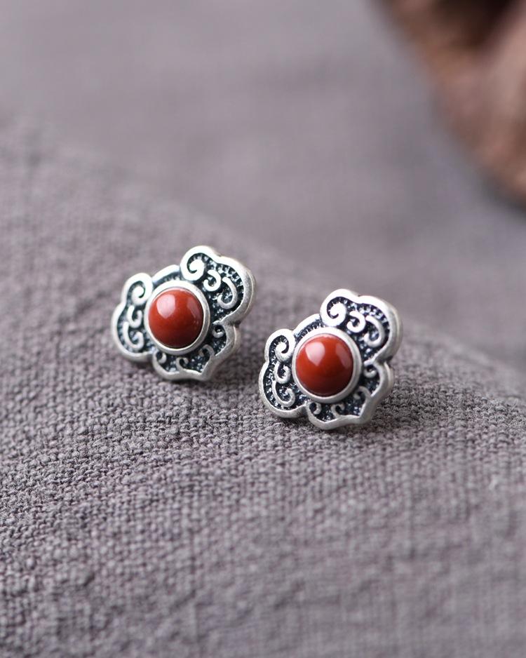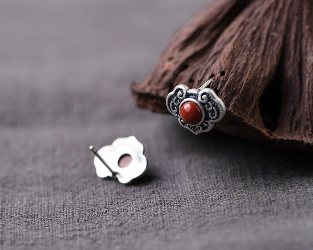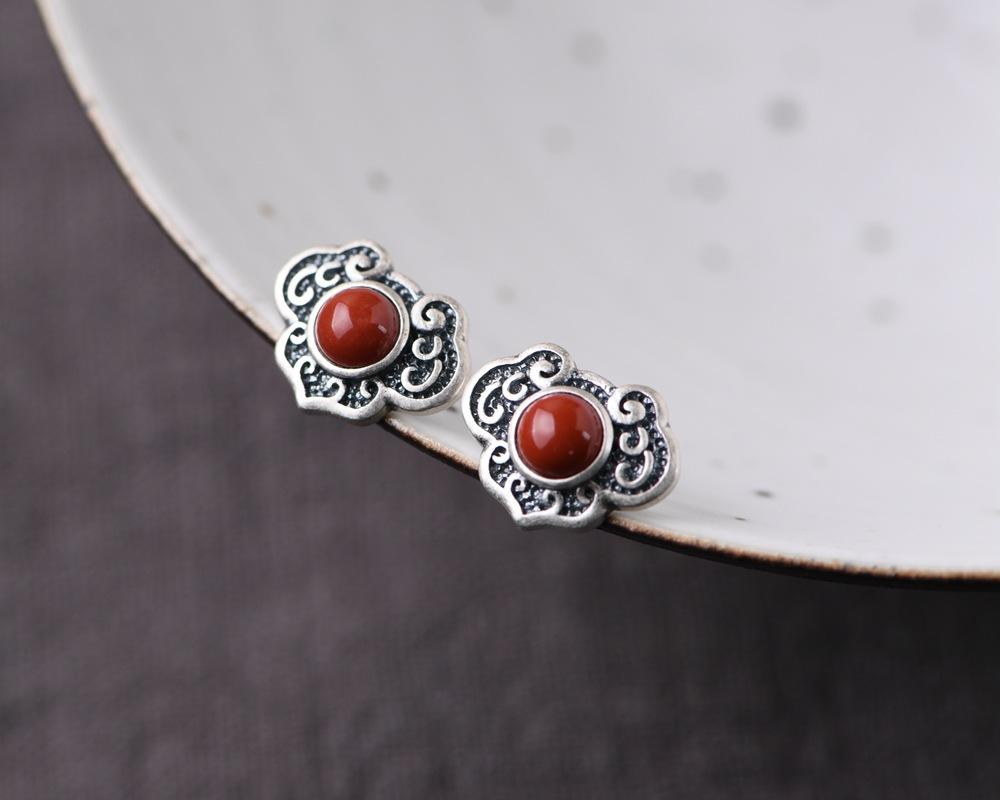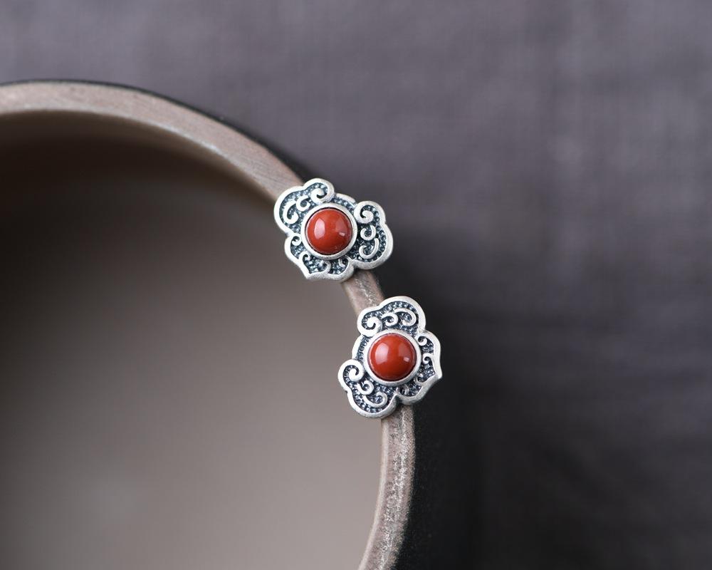 Pendientes elegantes Ruyi de plata S925 con incrustaciones de ágata roja del sur, estilo vintage, de Golden Deer King.