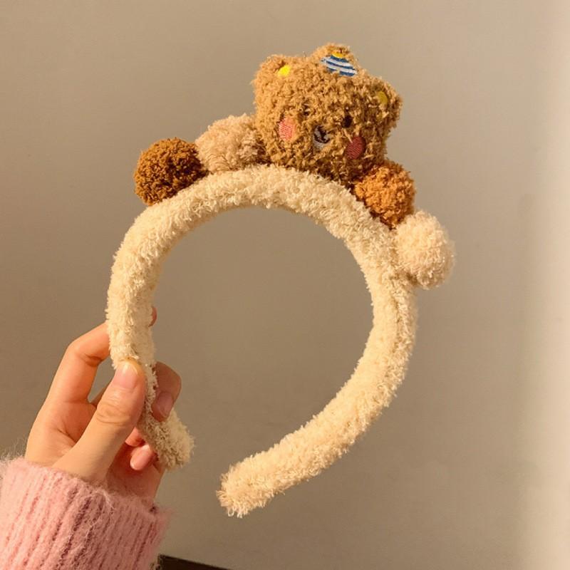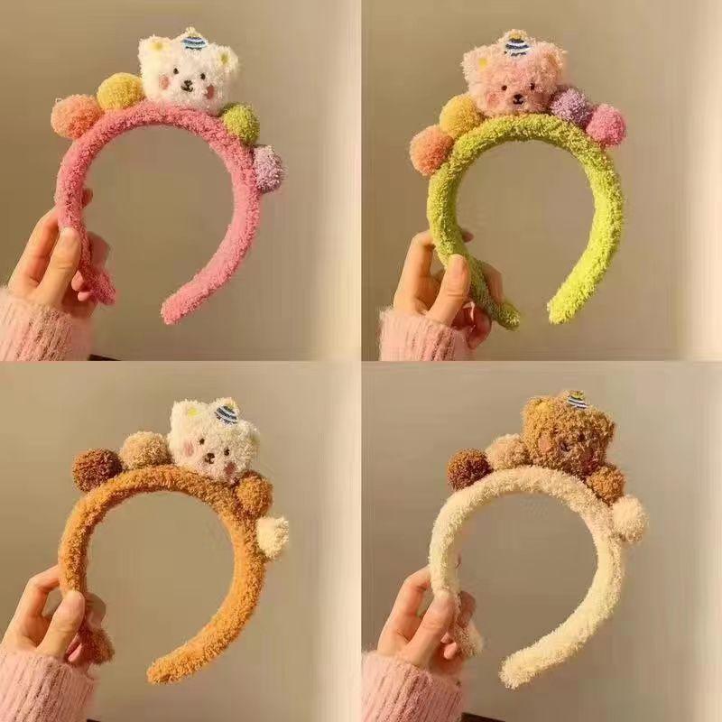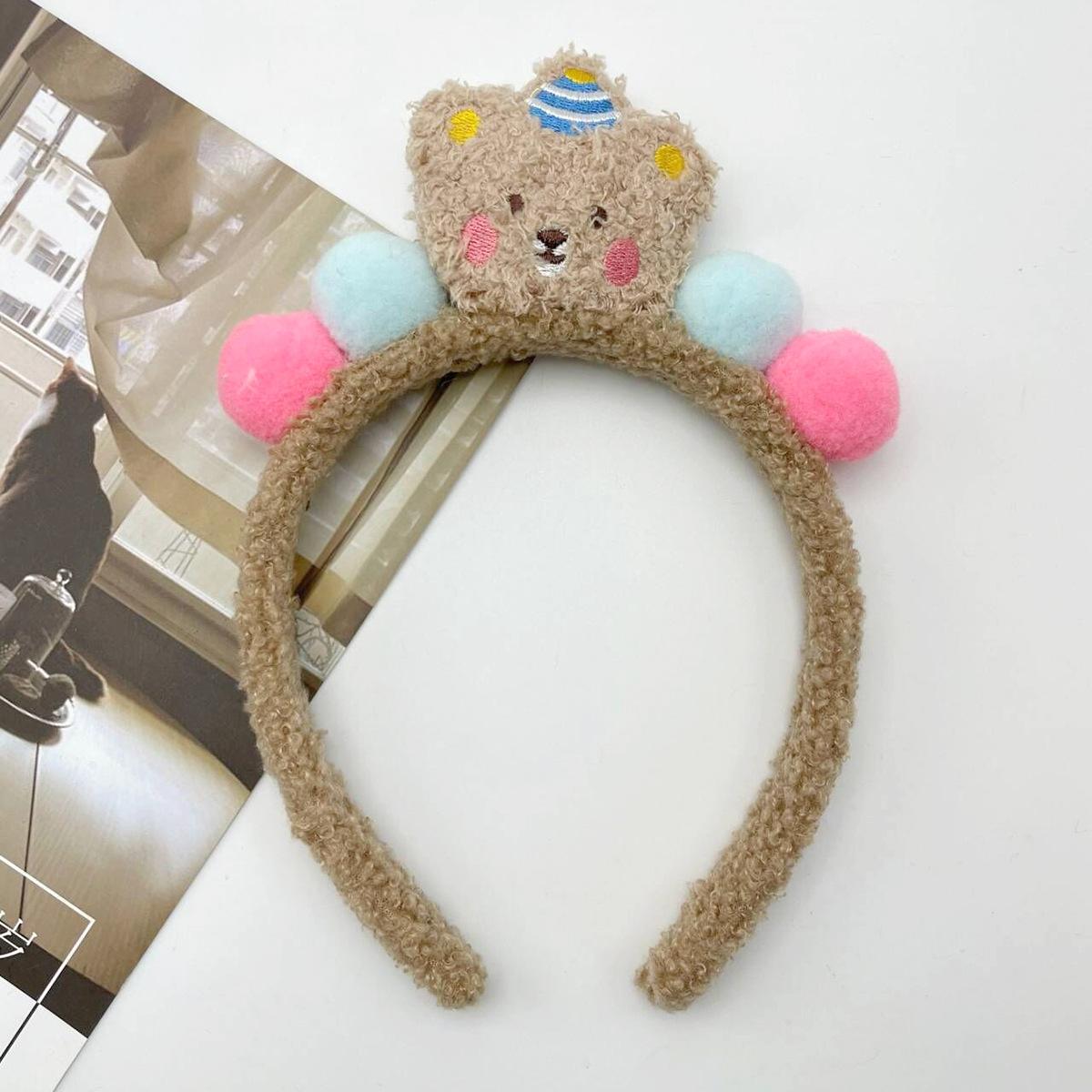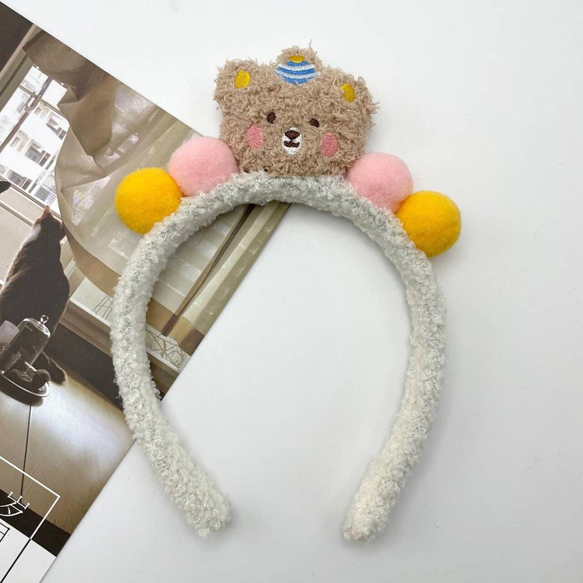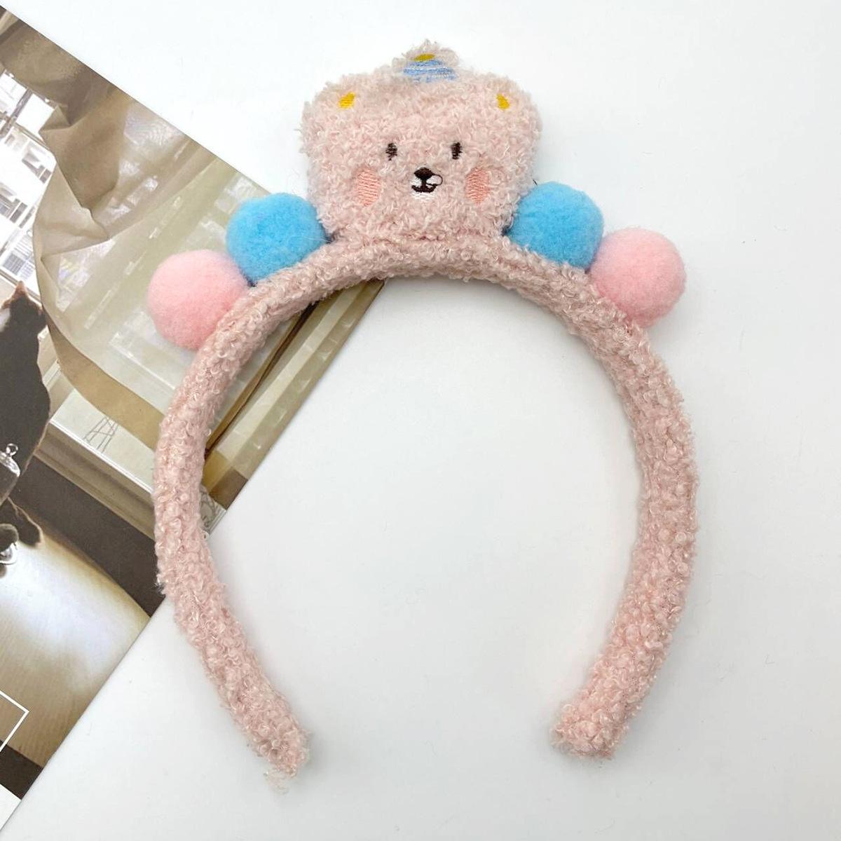 Bonita diadema de oso de dibujos animados con forma de pastel, venta al por mayor, bola de peluche dulce para mujer, muñeca tridimensional, oso de lana de cordero, para lavarse la cara.
