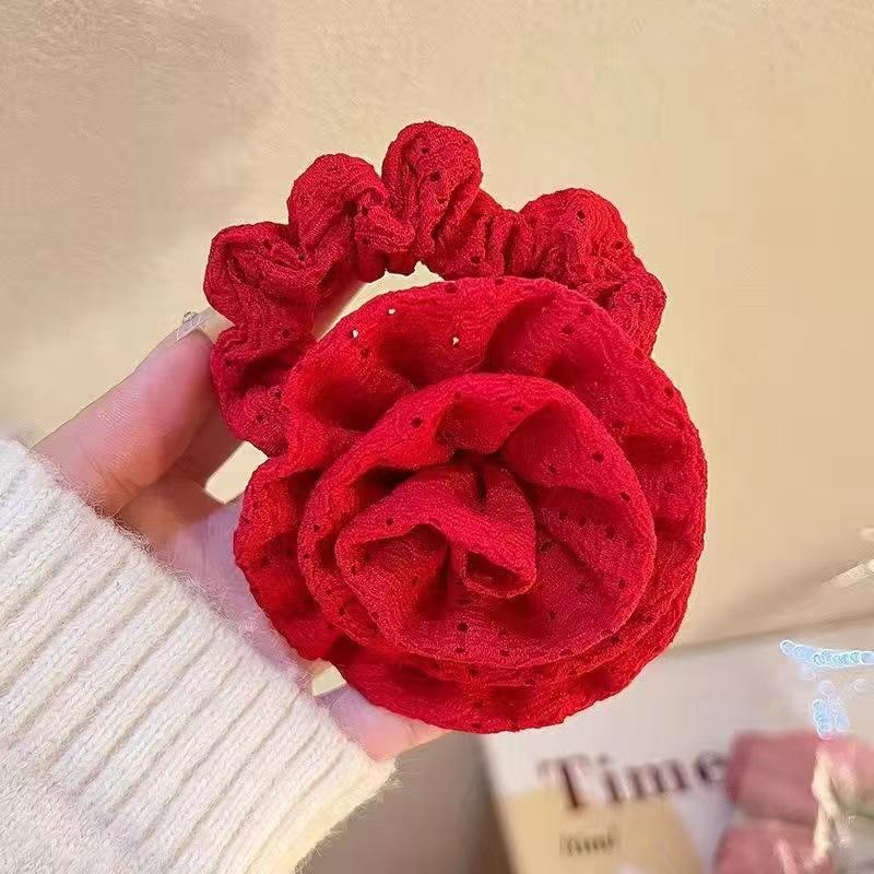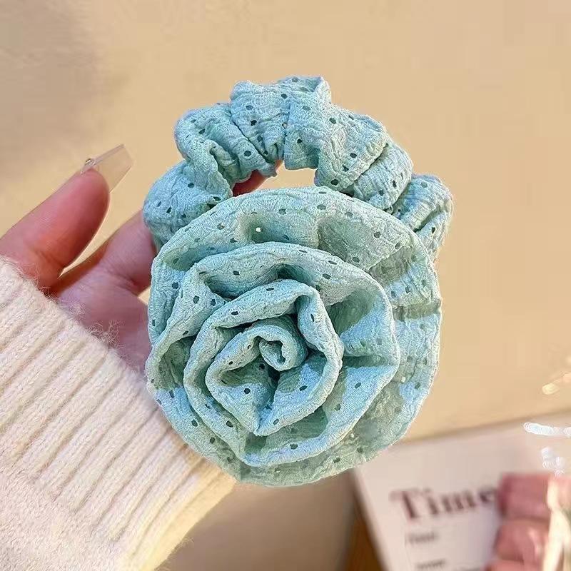 Anillo para el cabello con diseño de rosa francesa tridimensional, accesorio para el cabello con cuerda, anillo romántico para el cabello, estilo nuevo 2024 de alta gama para mujer.