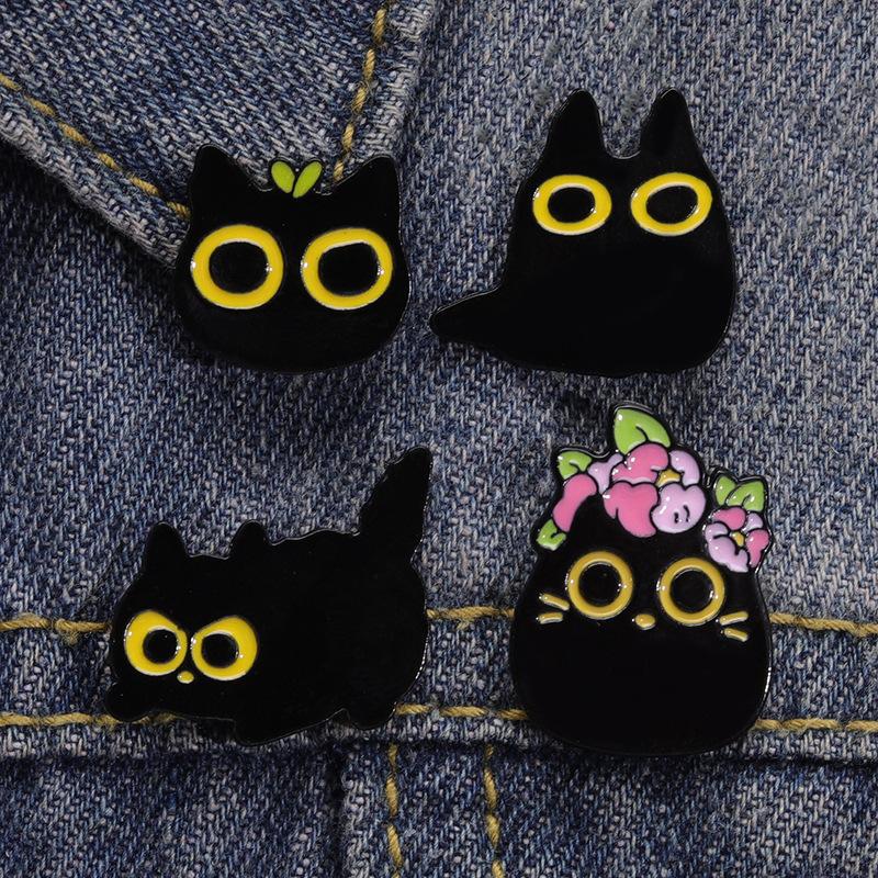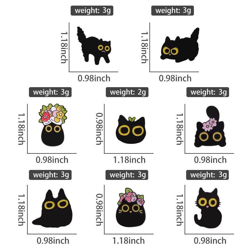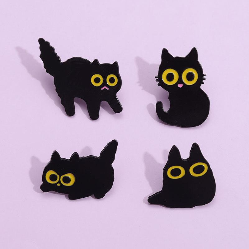 Broche de animal de gato negro pequeño nuevo europeo y americano, lindo, serie de múltiples formas, insignia de metal de gato, accesorios para bolso