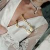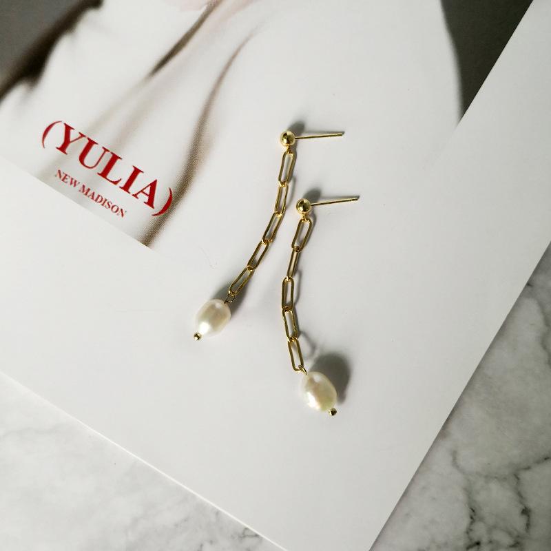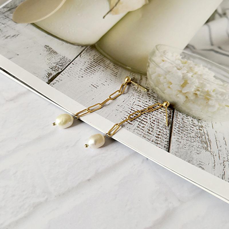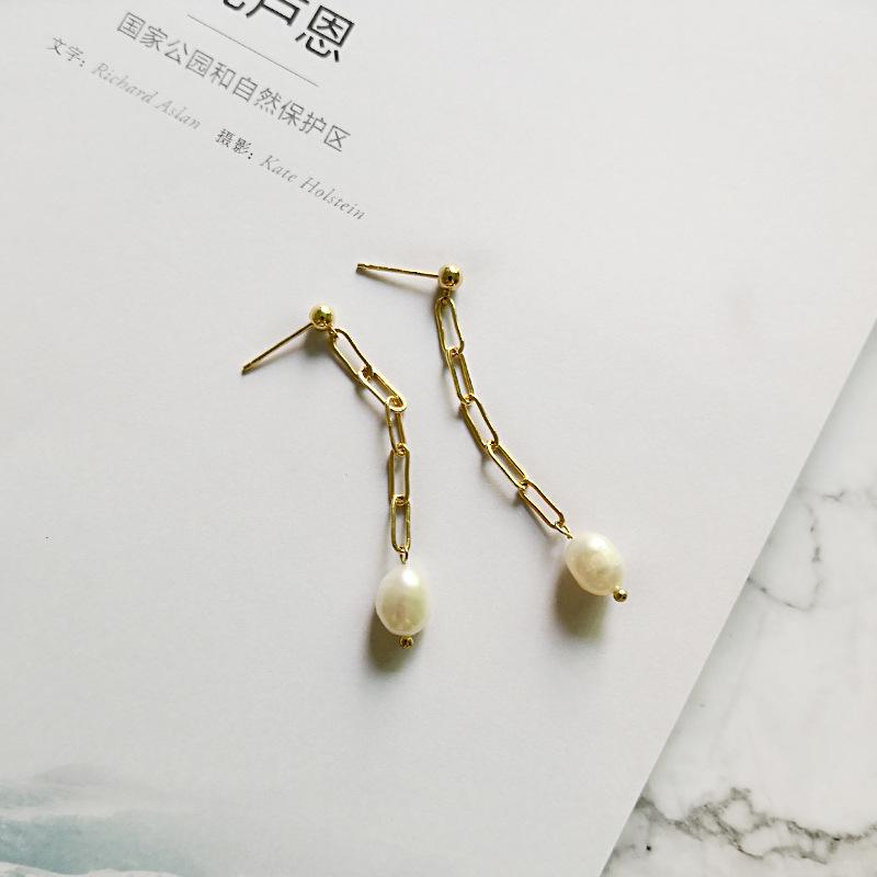 Versión coreana de aretes de perlas de agua dulce con aguja de plata 925 para mujer, aretes de cadena gruesa con textura metálica, personalidad, joyería para la oreja de red roja