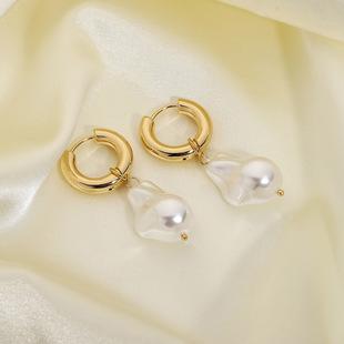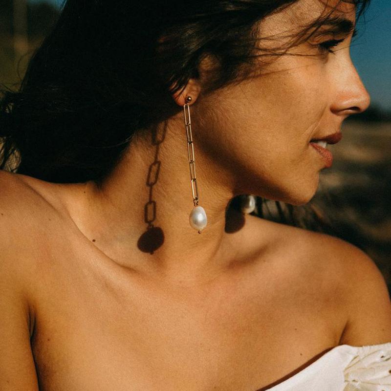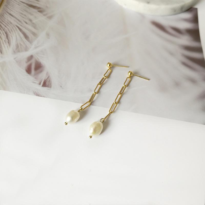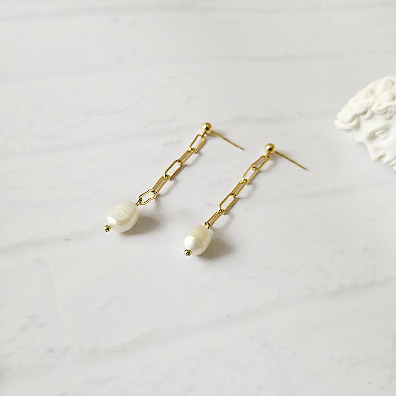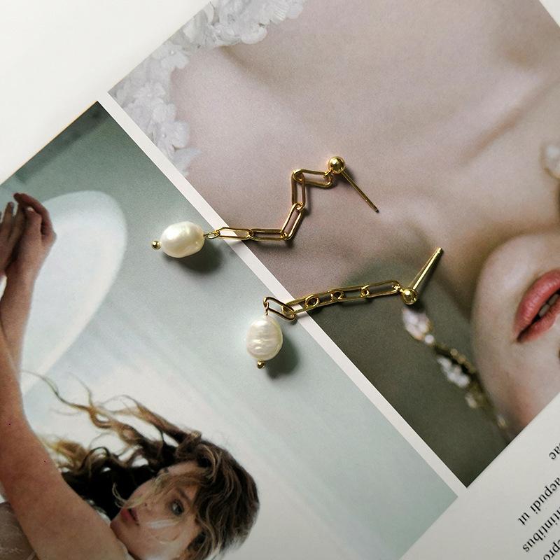 Aretes nuevos INS estilo francés de perlas de agua dulce irregulares, aretes de metal de temperamento simple y moderno de estilo europeo y americano
