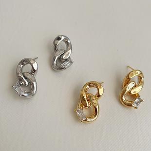Corea del Sur Dongdaemun diseño aretes de cadena metálica con diamantes temperamento femenino simple aretes de pedrería esmeralda