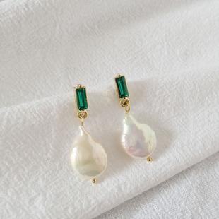 Aretes franceses retro de alta gama de perlas barrocas naturales de agua dulce de forma natural, temperamento de nicho, aretes simples