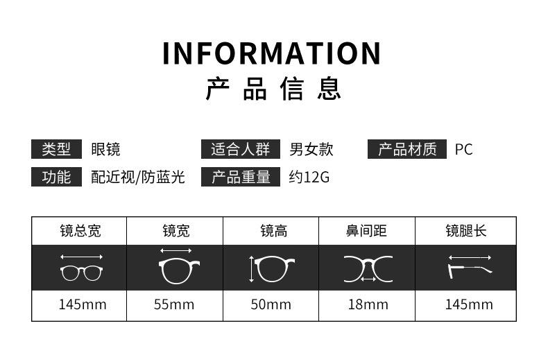 Lentes de Montura Negra para Mujer Estilo Coreano Moderno Luz Anti-azul Estilo ins Montura Grande Luz Plana Adelgazante para Rostro Redondo Miopía Artefacto para Rostro Sencillo