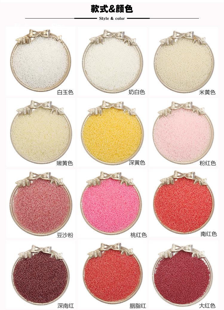 Dado que las cuentas de arroz se colorean en lotes, existe una cierta diferencia de color entre los diferentes lotes de cuentas de arroz.