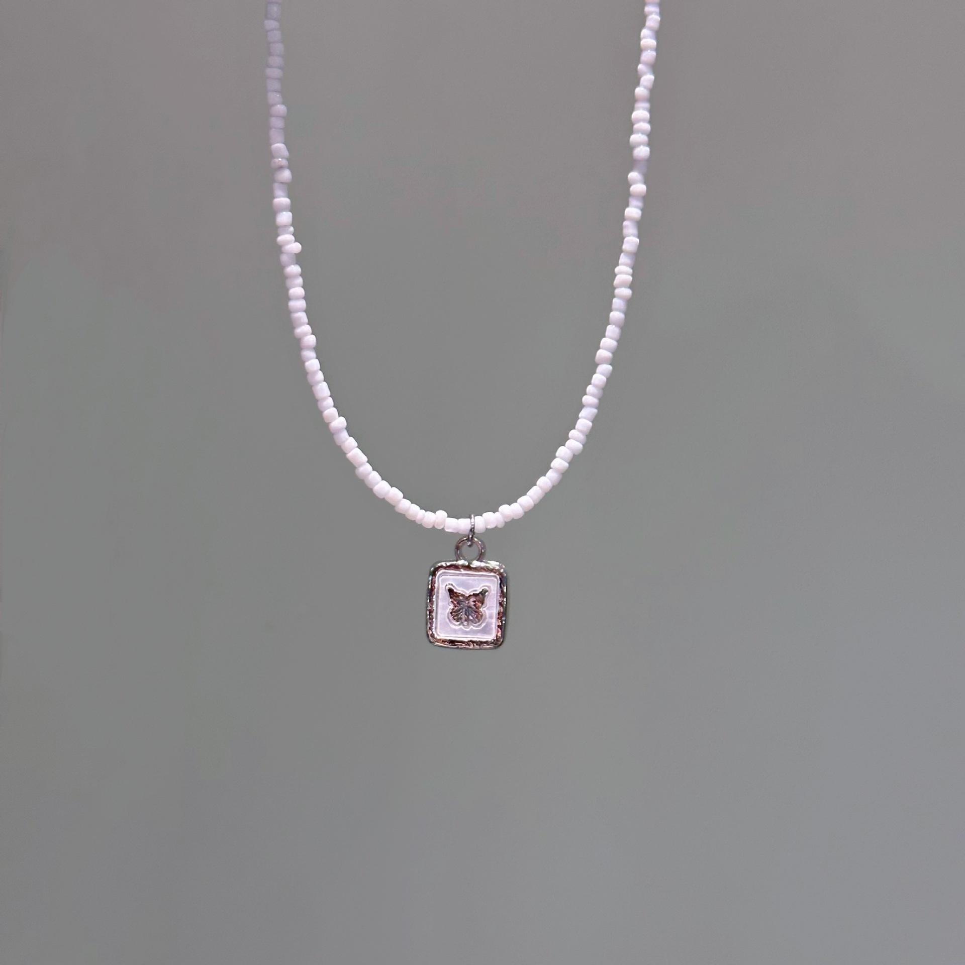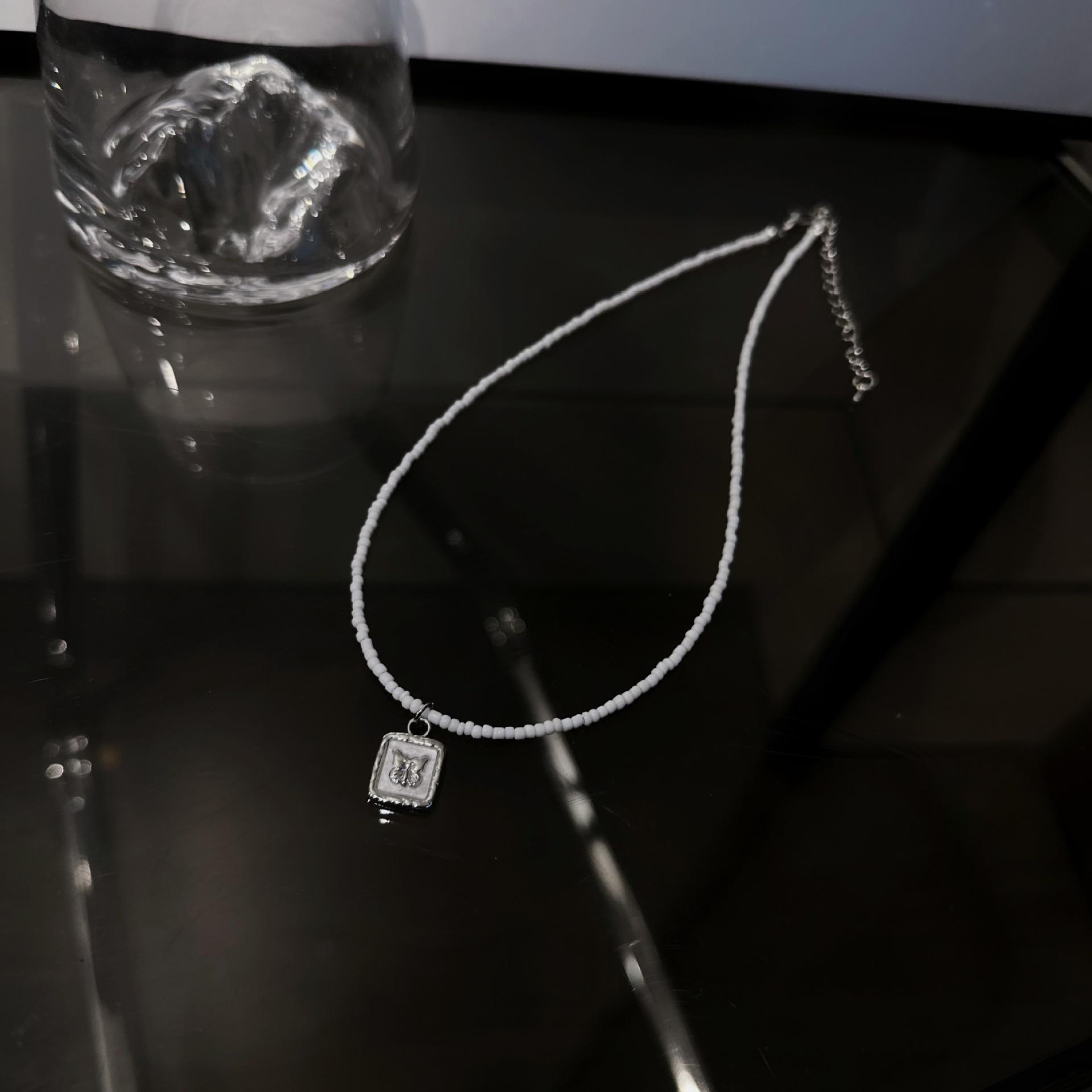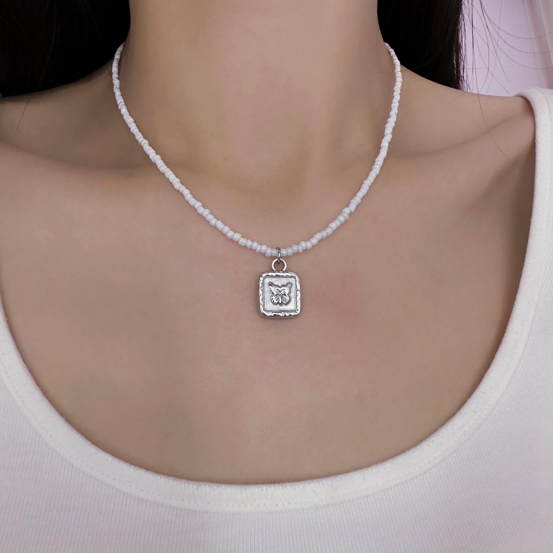 Cadena de cuentas de arroz blanco y mariposa cuadrada: 7 g (envase individual)