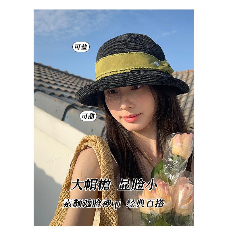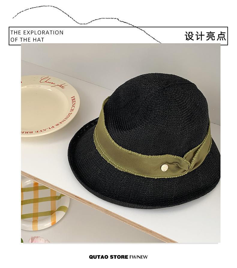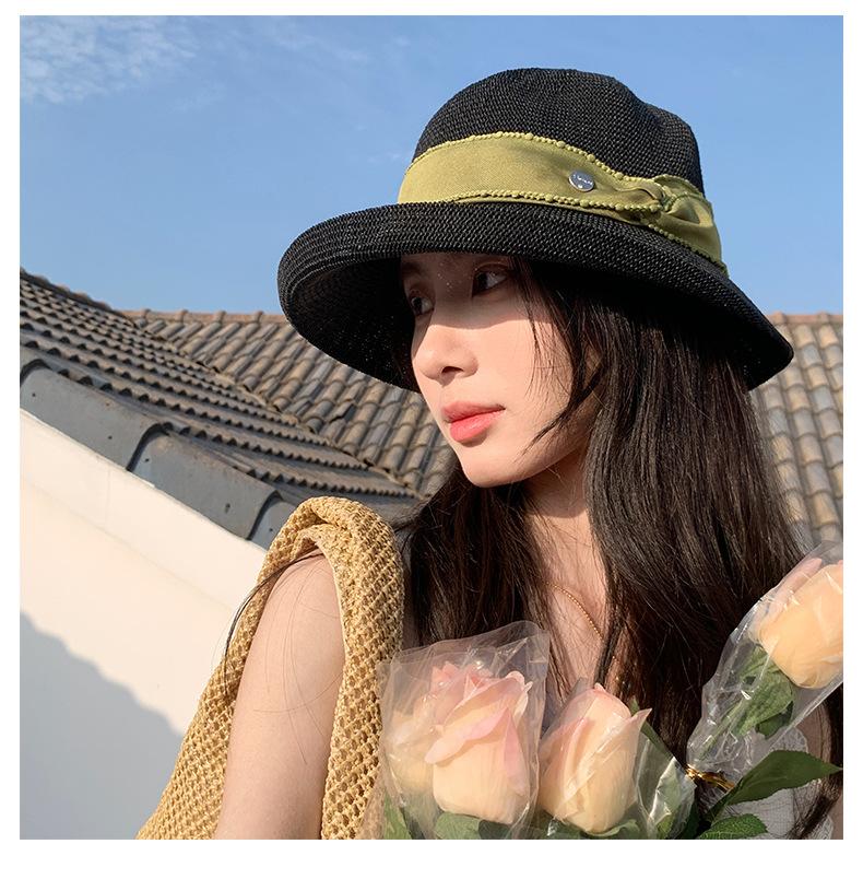 Sombrero de paja para mujer, sombrero de pescador de verano, sombrero anti-UV para mujer, sombrero de copa versátil para viajes 2024.