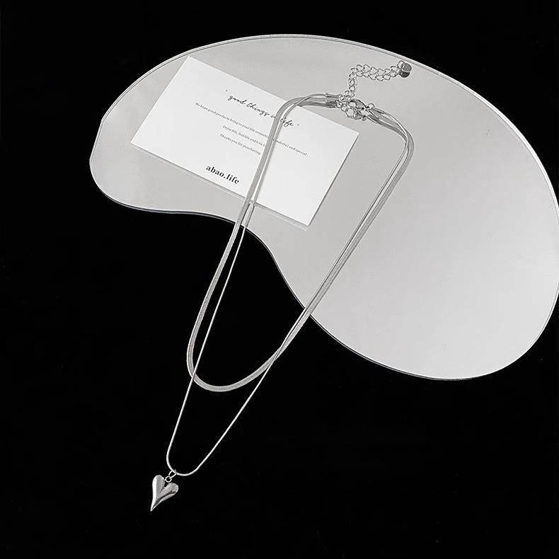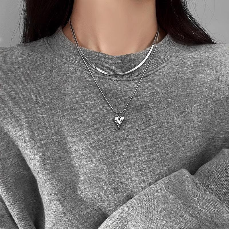 Nuevo collar de doble capa con diseño de amor apilado para mujer, estilo frío, estilo hip hop dulce y picante, accesorios de cadena de clavícula.