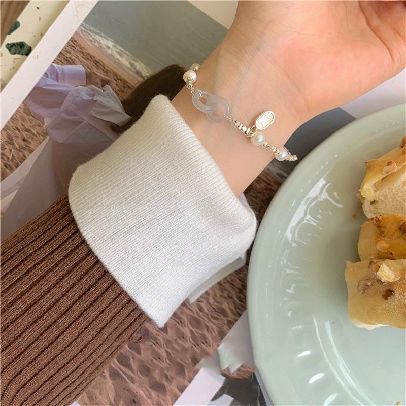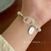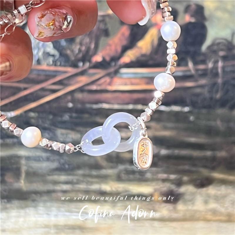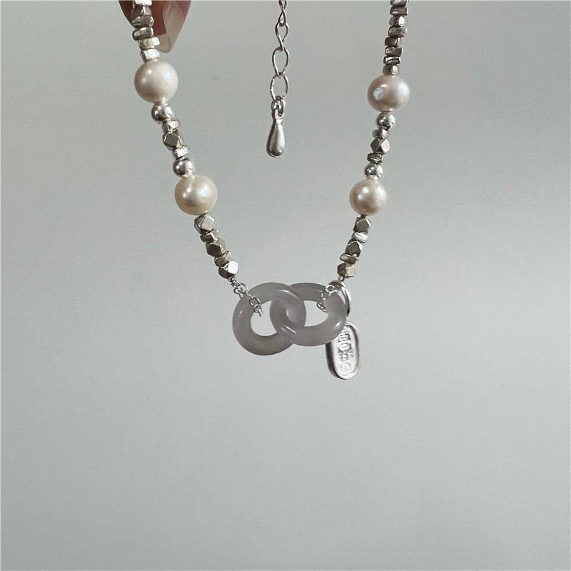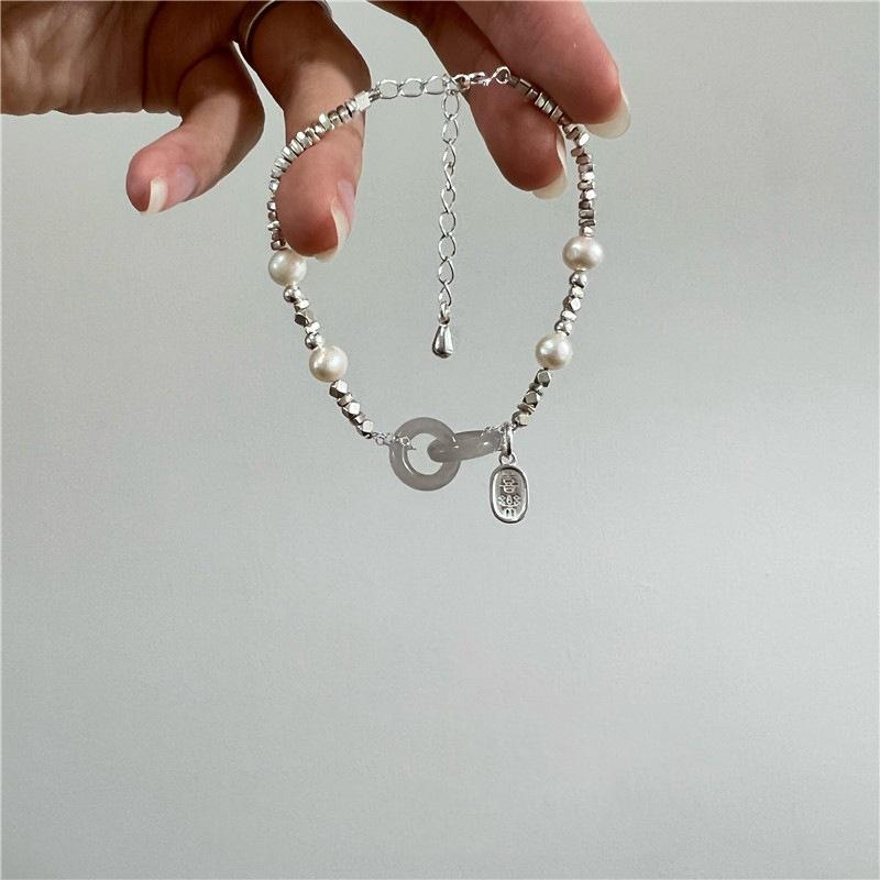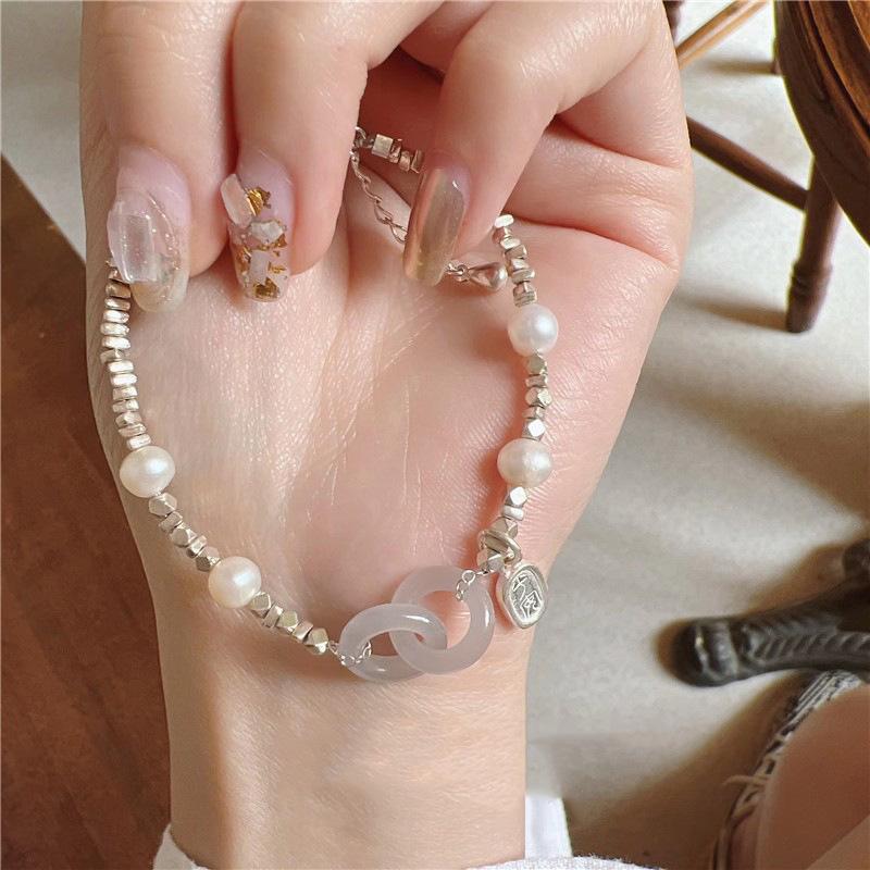 Pulsera de hebilla de anillo de imitación de jade Hetian plata rota para mujer estilo nicho de perlas lujo ligero simple temperamento combinable