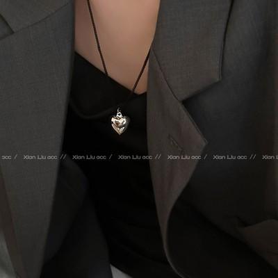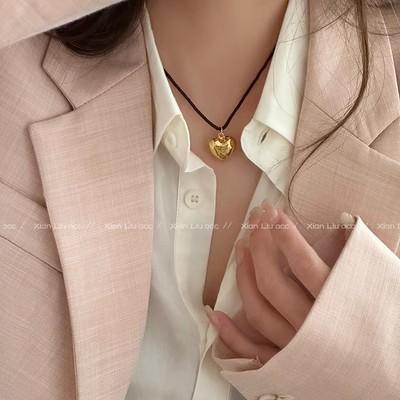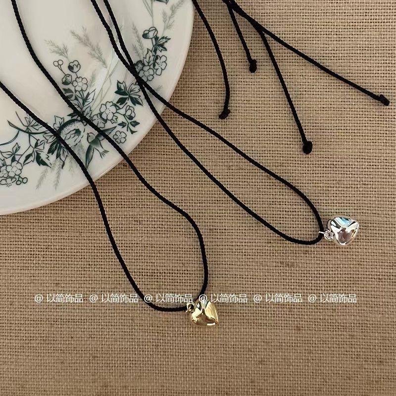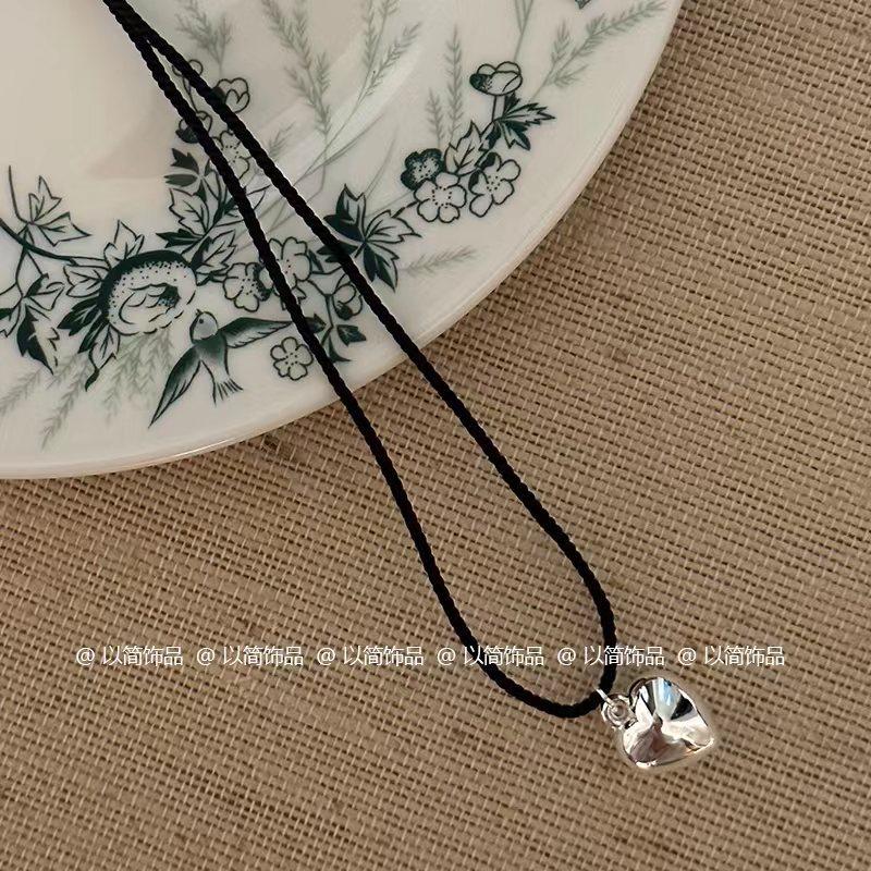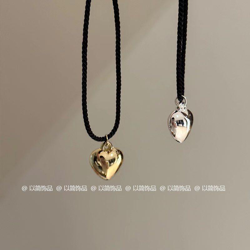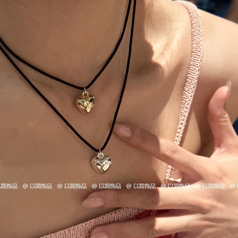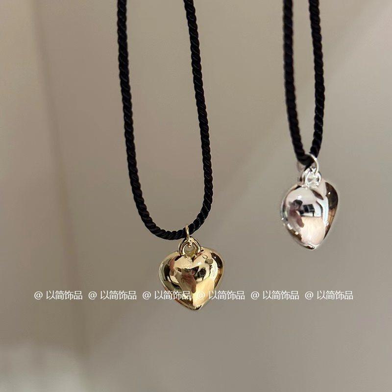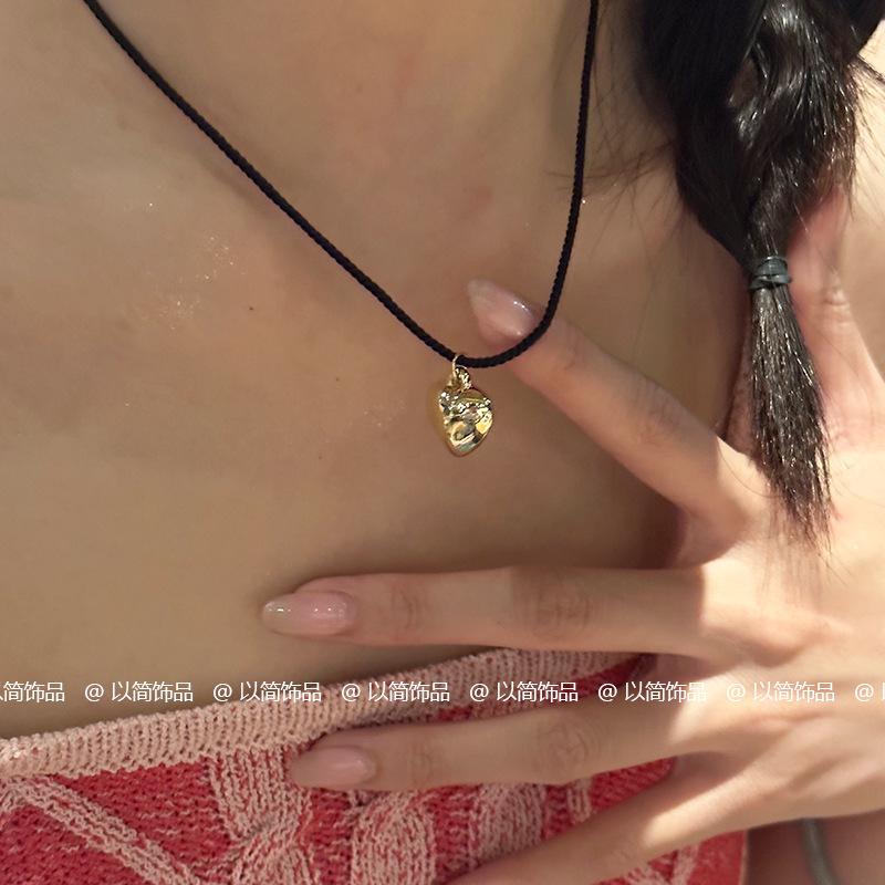 Collar de amor con cuerda trenzada negra, novedad de 2024, popular cadena de clavícula, accesorio decorativo de nicho de lujo ligero para mujer.