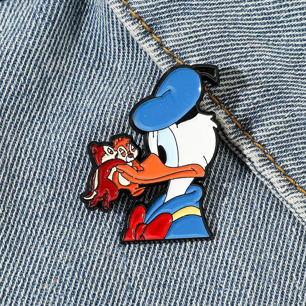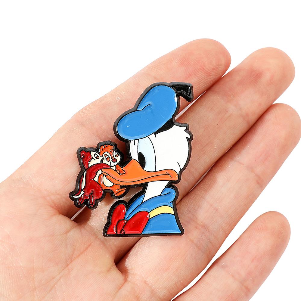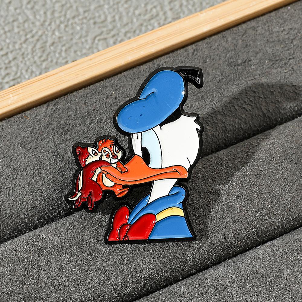 Broche de metal con forma de pato Donald, accesorio con personalidad creativa y animación de dibujos animados, bonito broche de aleación con forma de gota de aceite de pato Donald, decoración.