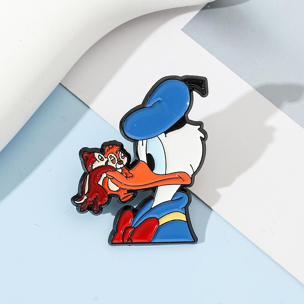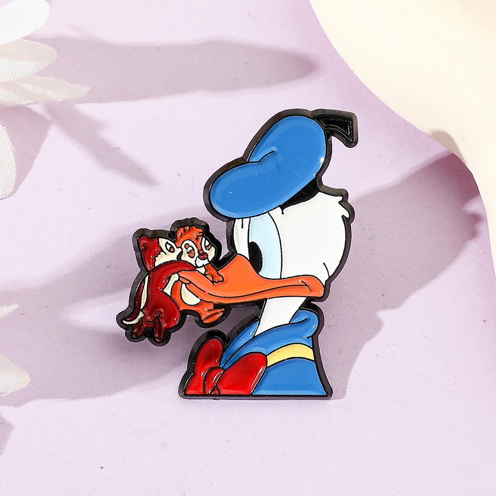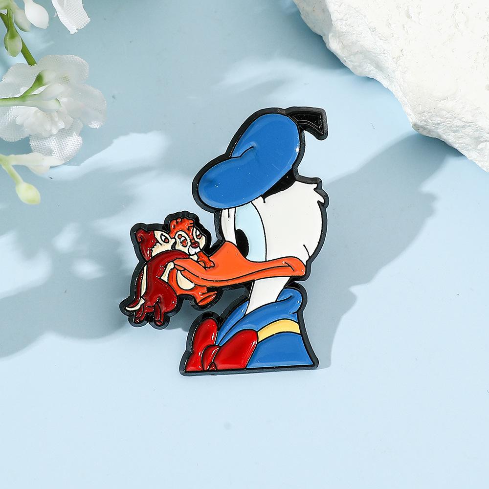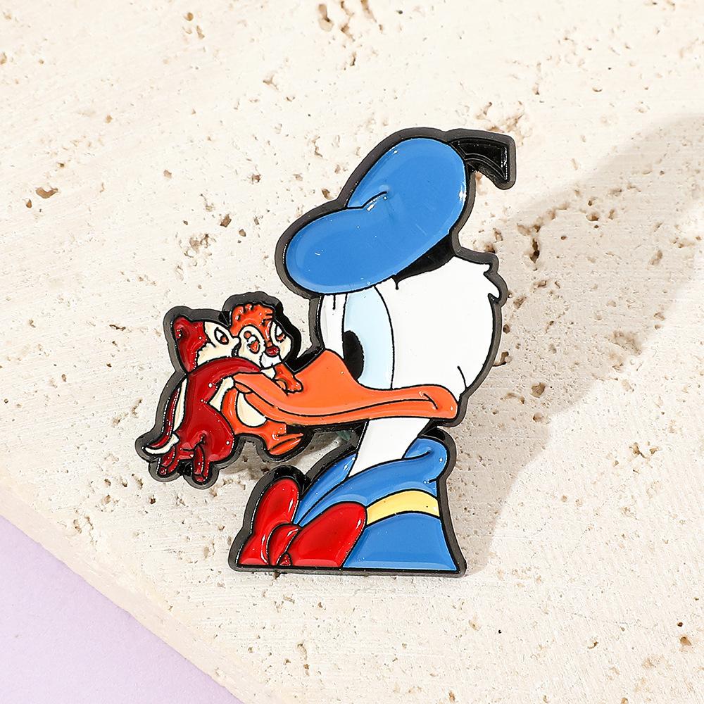 Broche de metal con forma de pato Donald, accesorio con personalidad creativa y animación de dibujos animados, bonito broche de aleación con forma de gota de aceite de pato Donald, decoración.