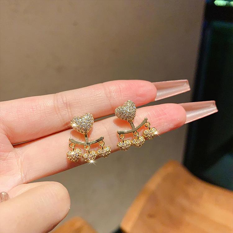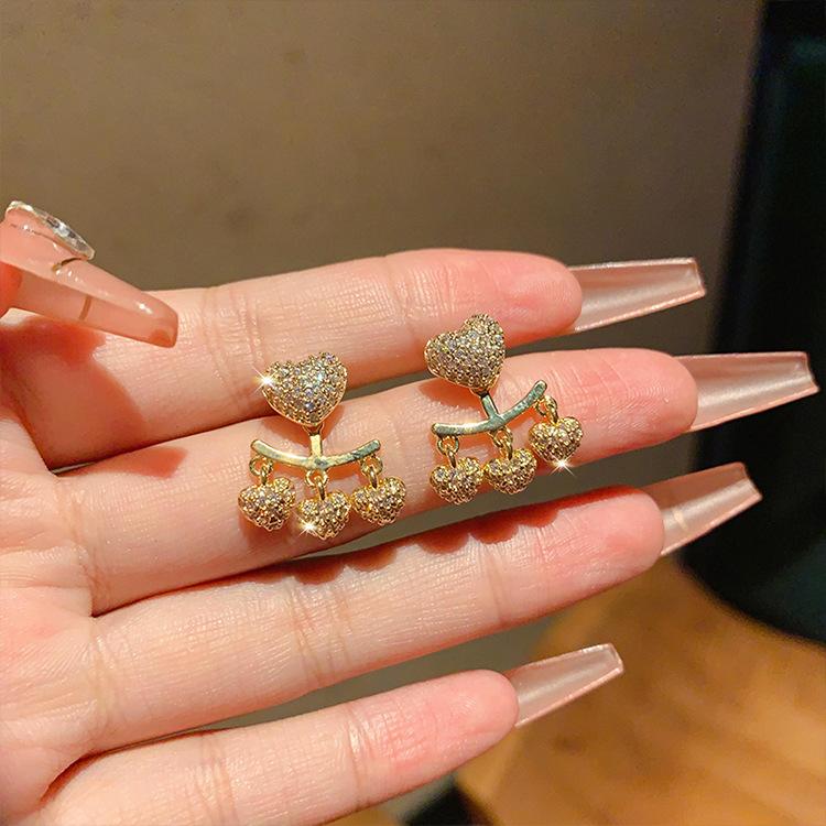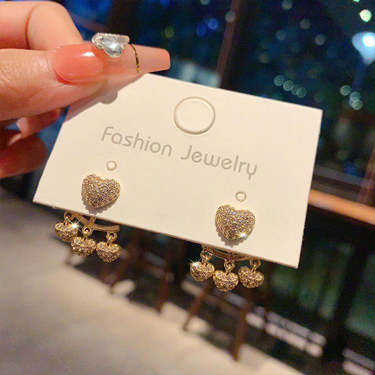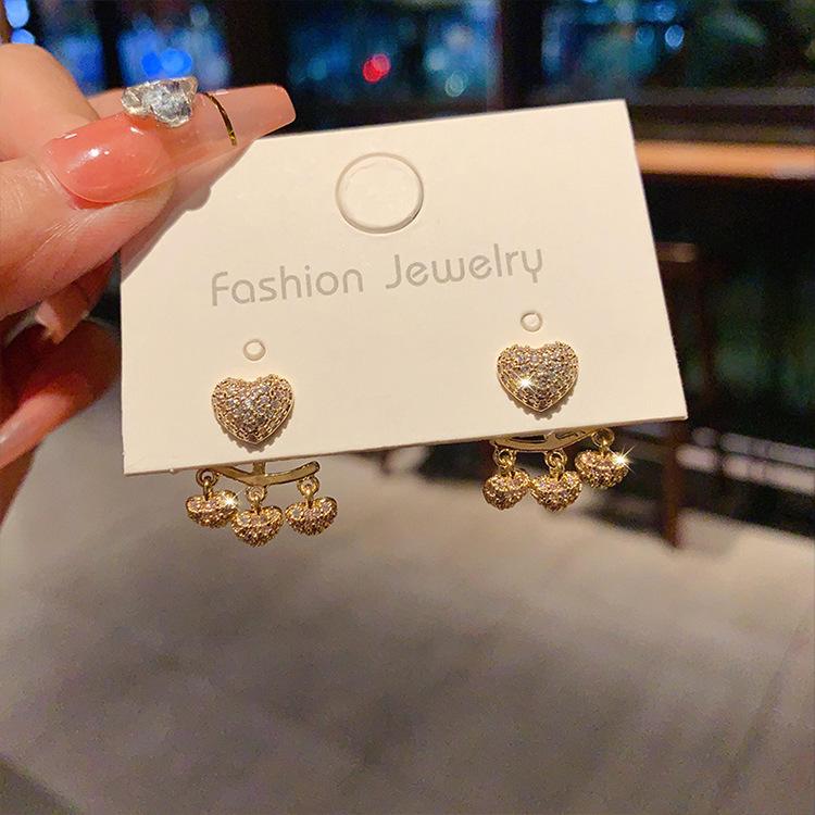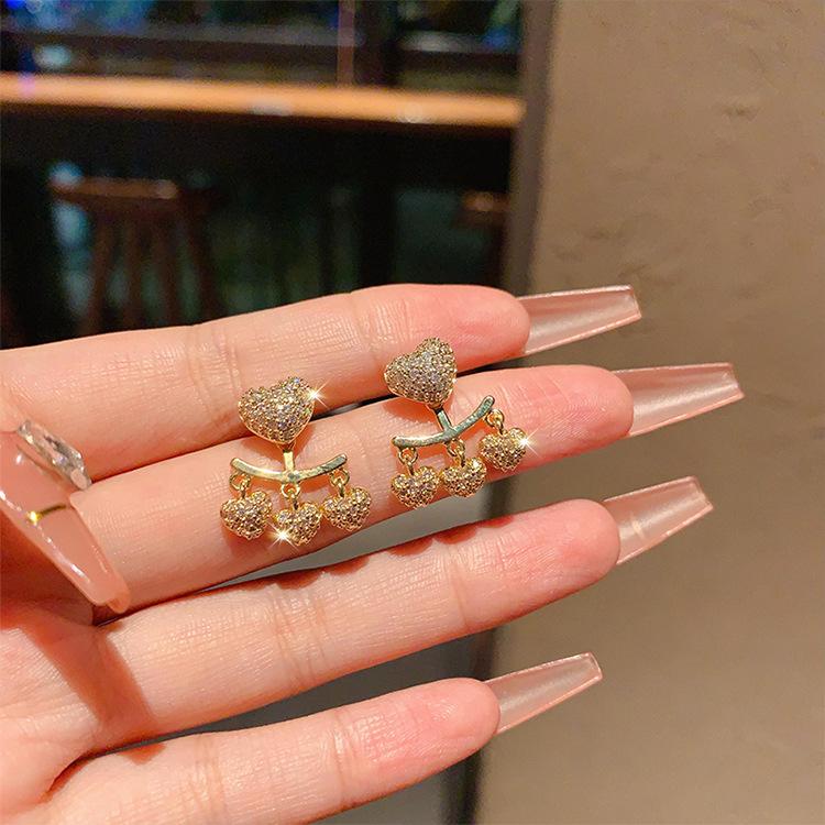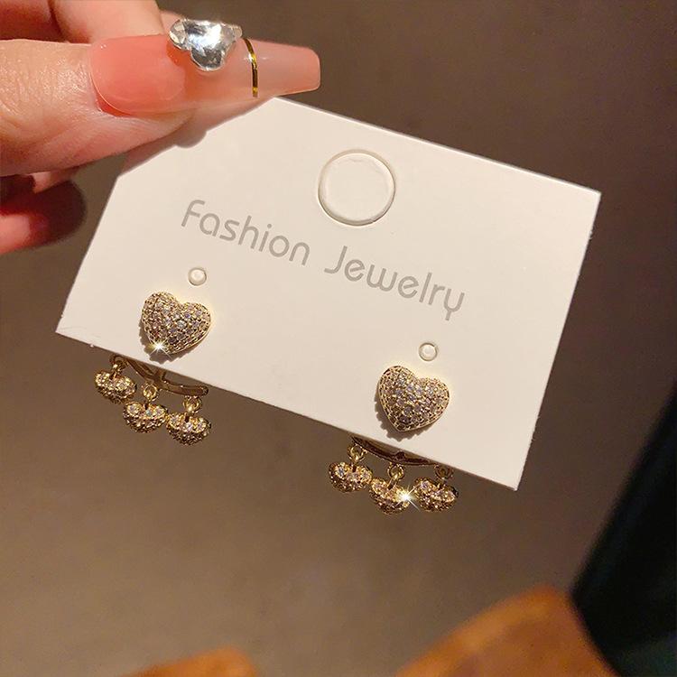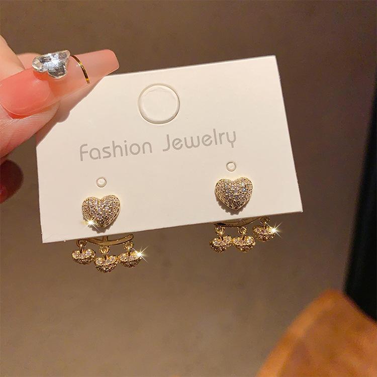 Exquisitos pendientes sencillos, ligeros y de lujo de alta calidad con incrustaciones de diamantes de imitación, pendientes de dos piezas a la moda que combinan con todo.