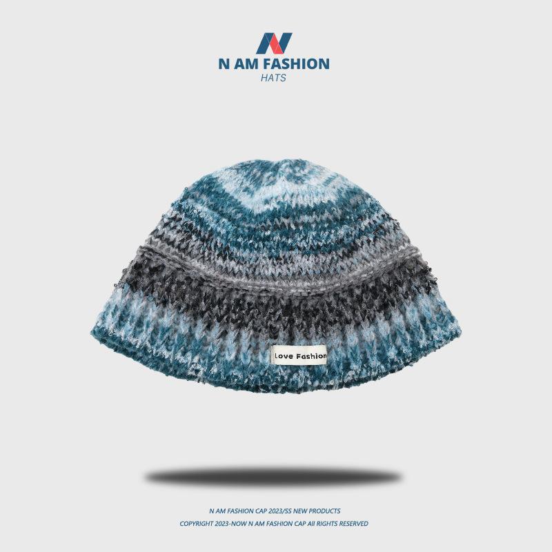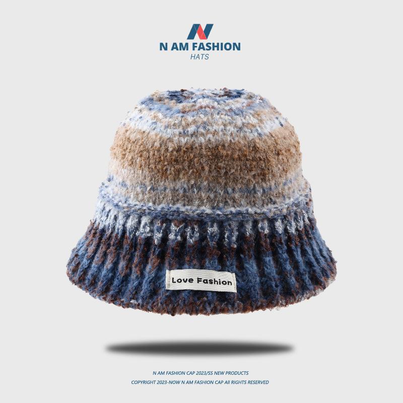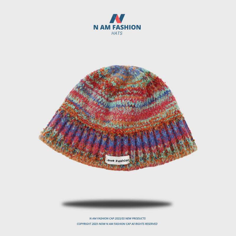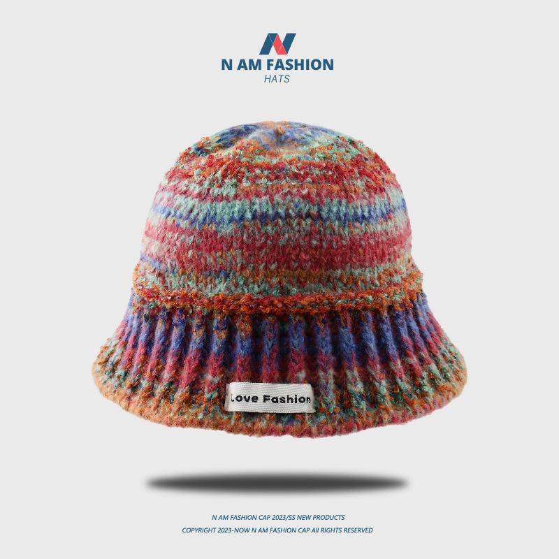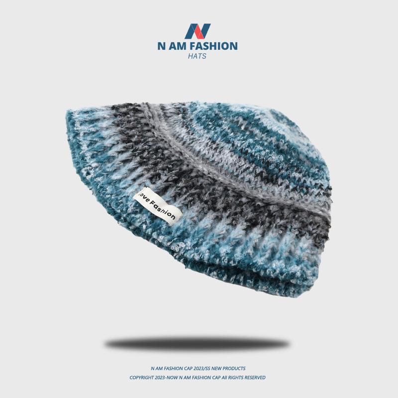 Gorro de pescador tejido colorido, gorro de lana degradado, gorro casual versátil tipo cubo, pequeño para la cara, versión coreana, diseño nicho de otoño e invierno