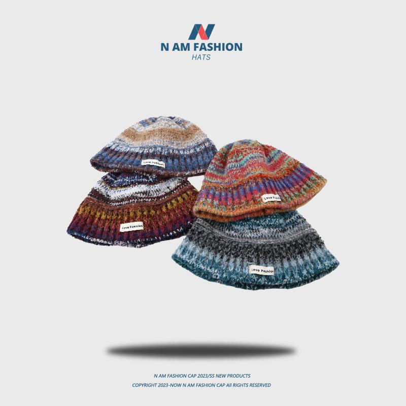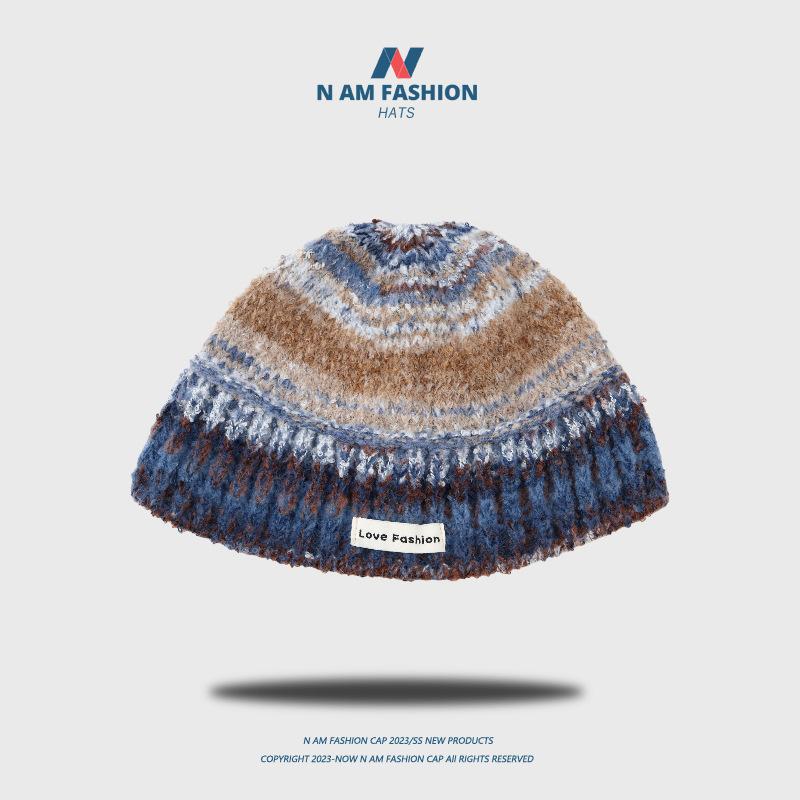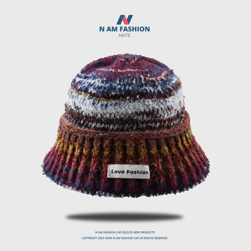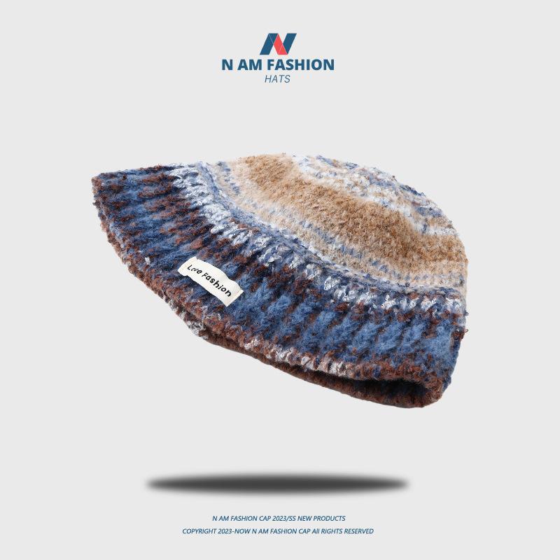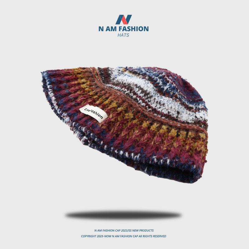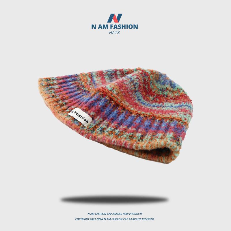 Gorro de pescador tejido colorido, gorro de lana degradado, gorro casual versátil tipo cubo, pequeño para la cara, versión coreana, diseño nicho de otoño e invierno