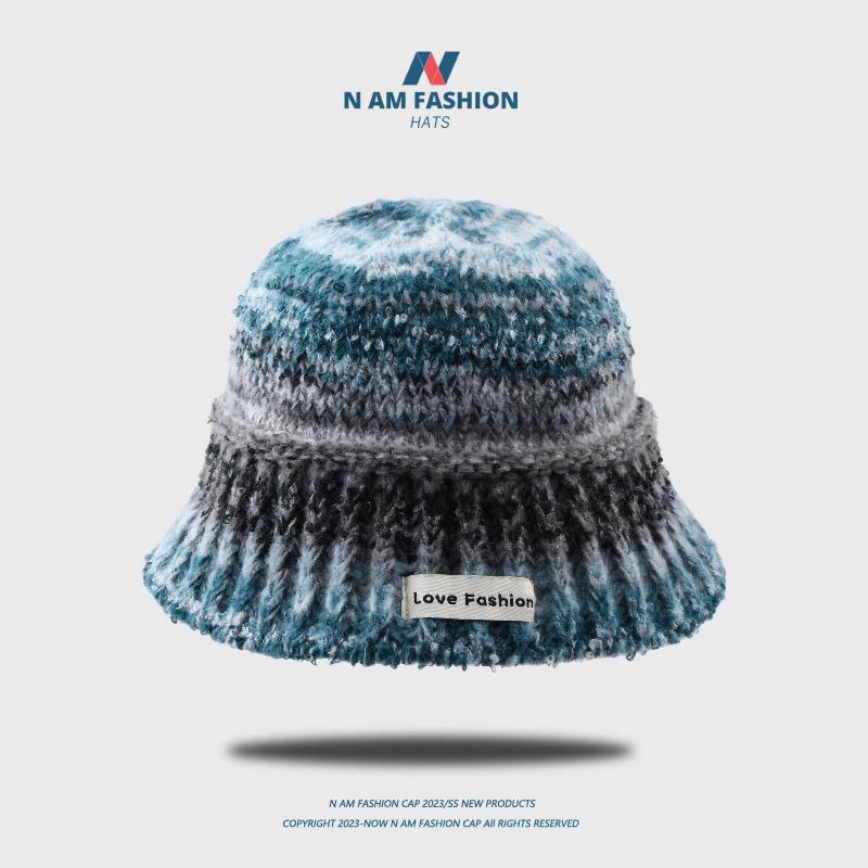 Gorro de pescador tejido a color estilo coreano de otoño e invierno, gorro de lana de color degradado, casual, combina con todo, diseño nicho, gorro de cubo pequeño que hace ver la cara pequeña