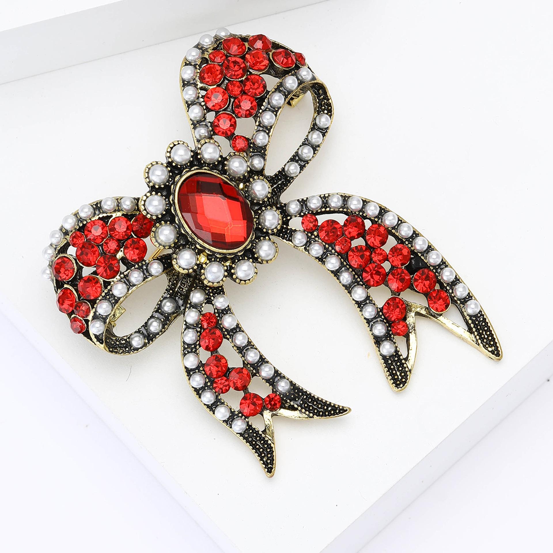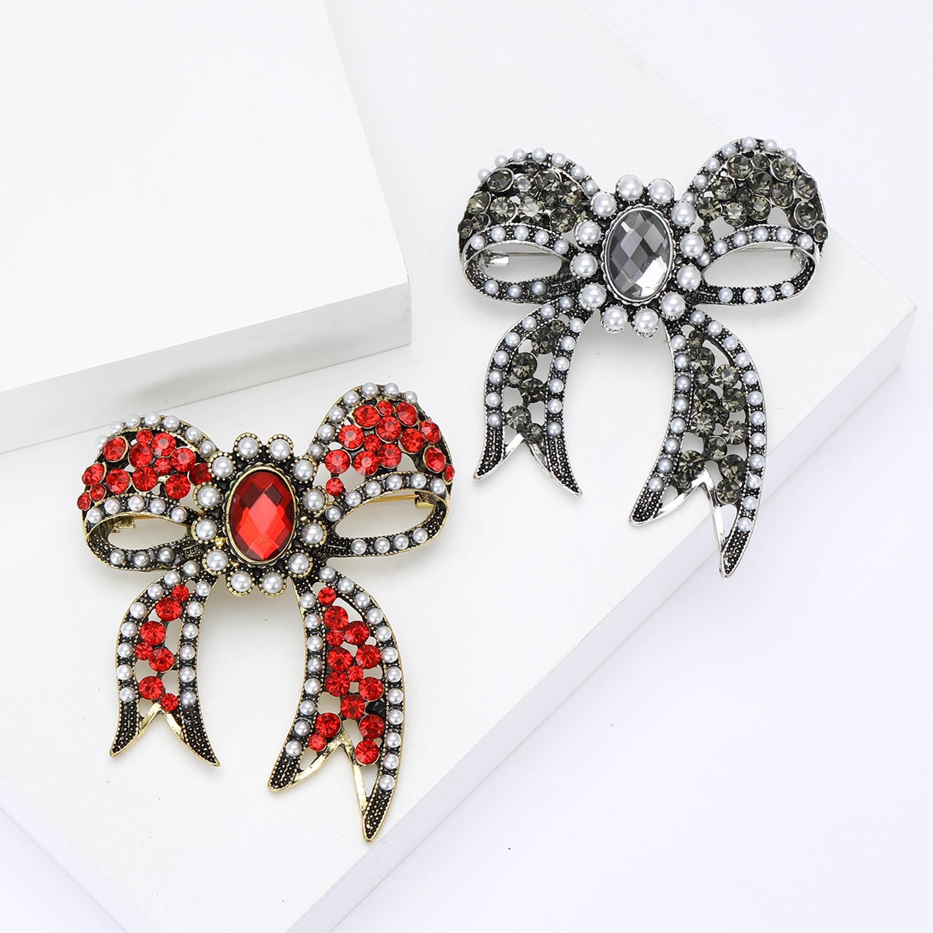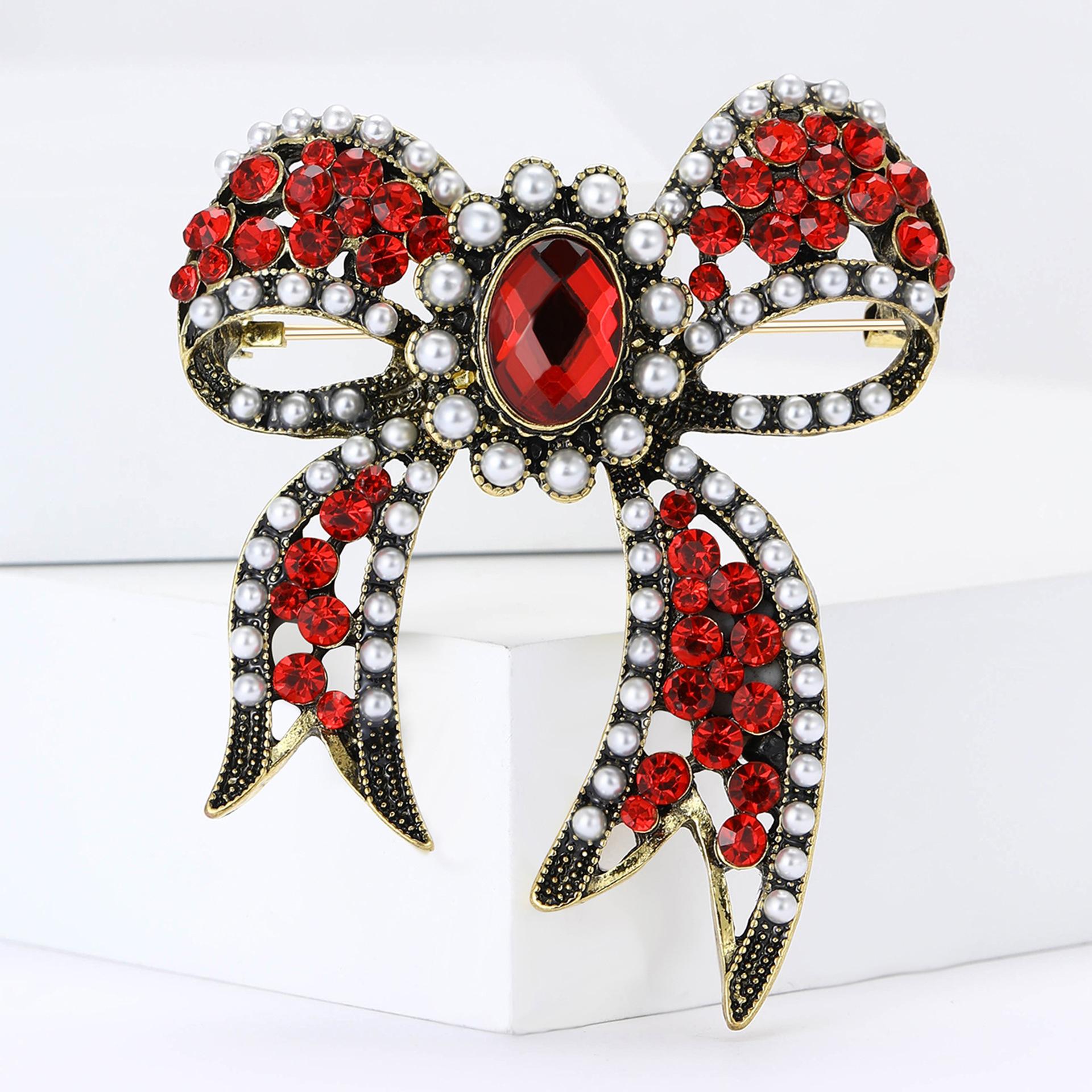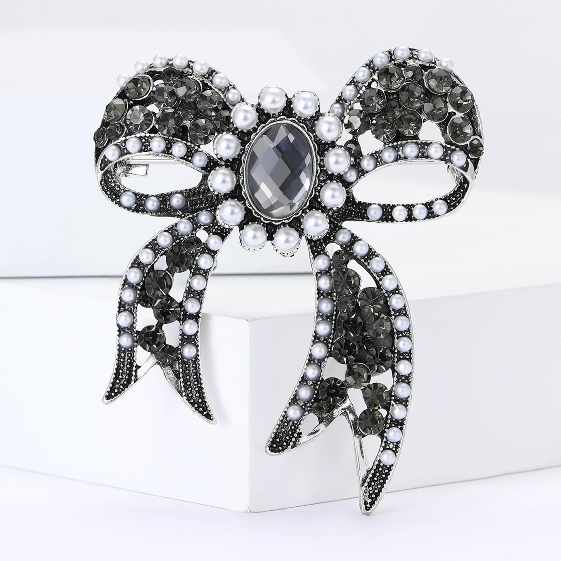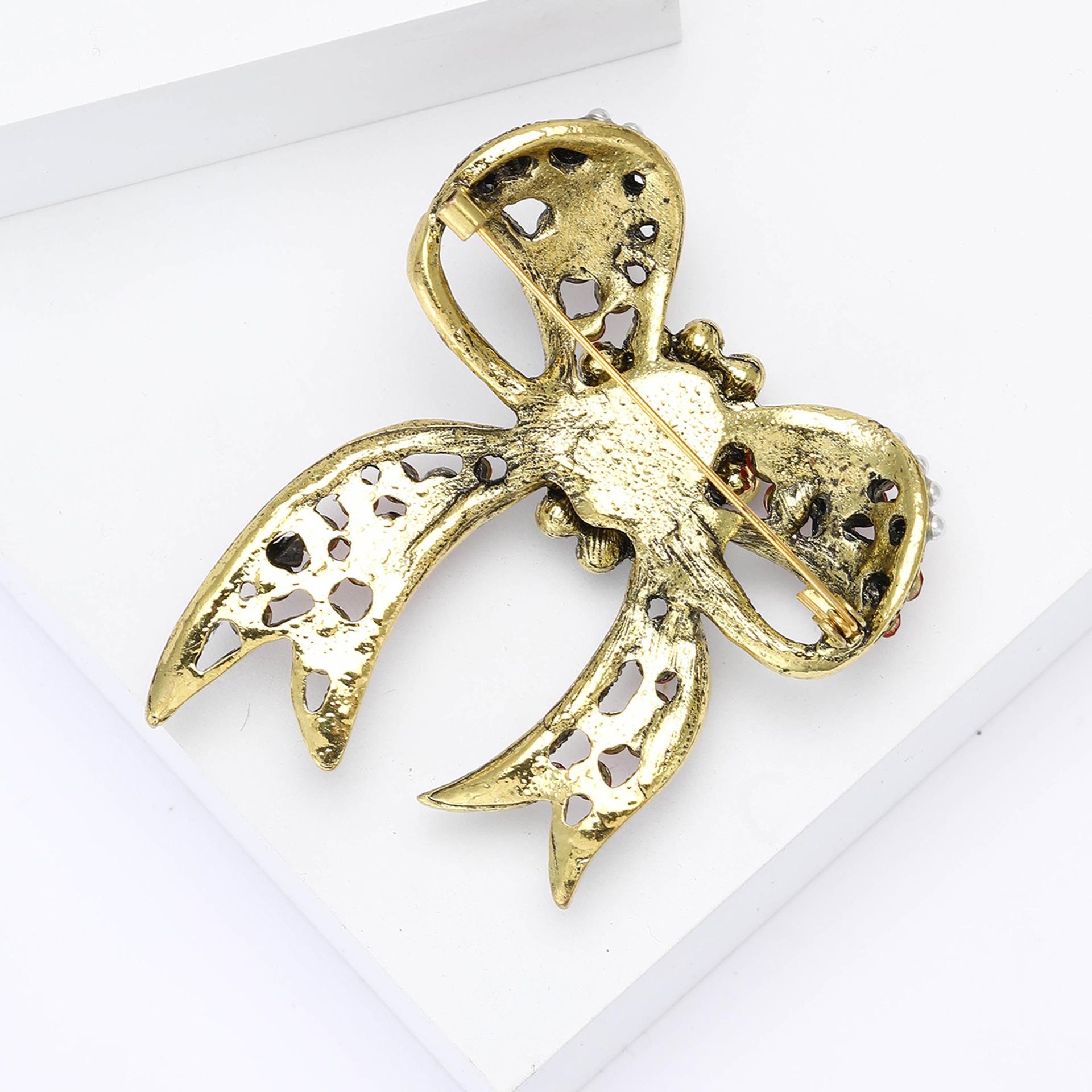 Broche de lazo de diamantes de imitación de aleación barroca de palacio vintage, exquisito broche de ramillete para mujer, ideal para combinar con todo.