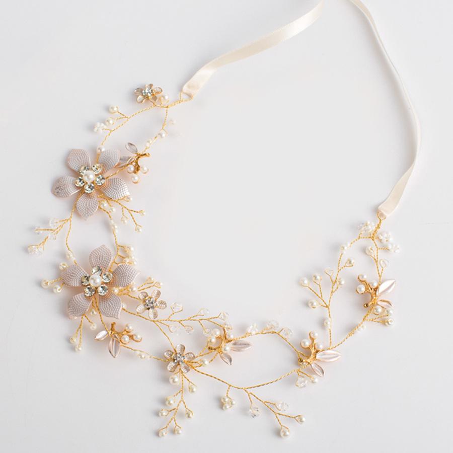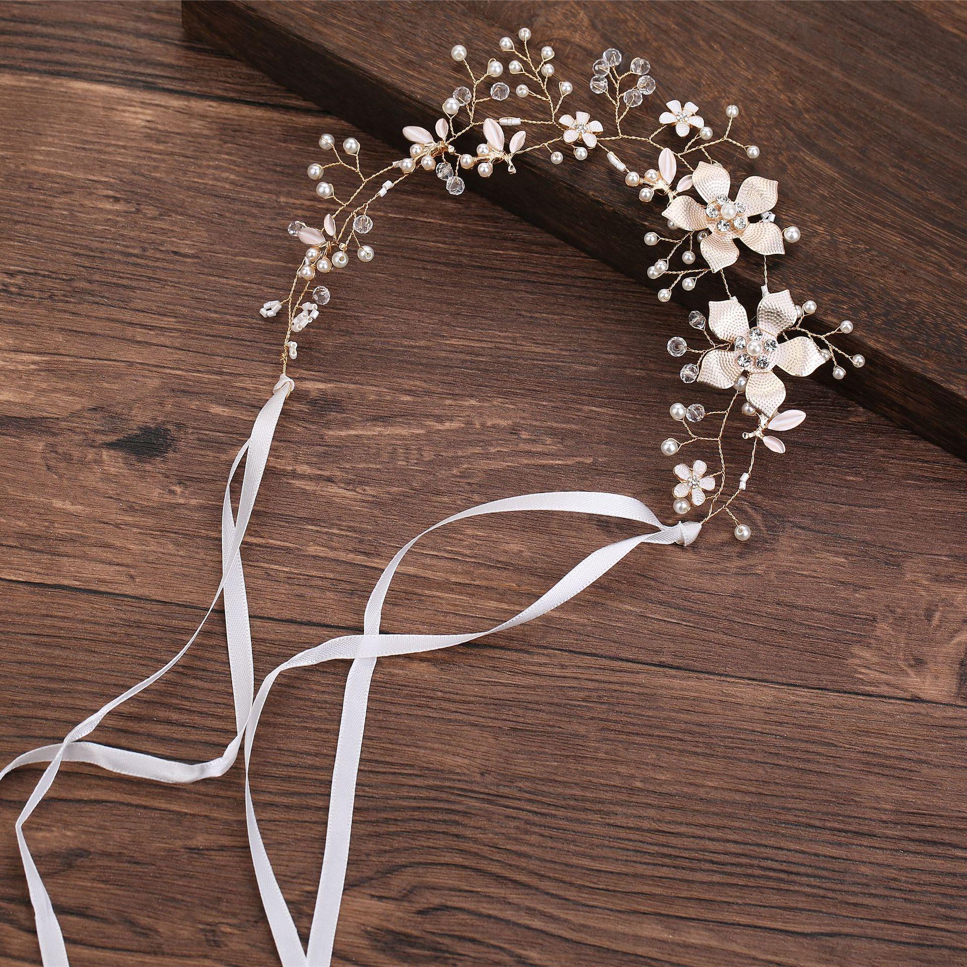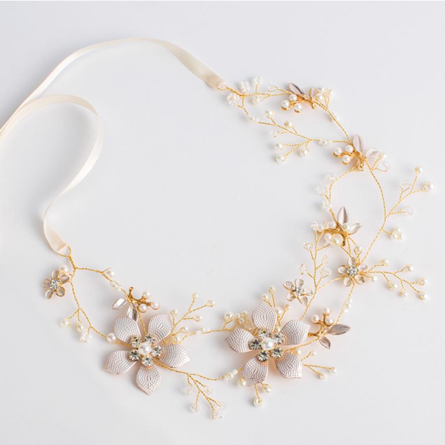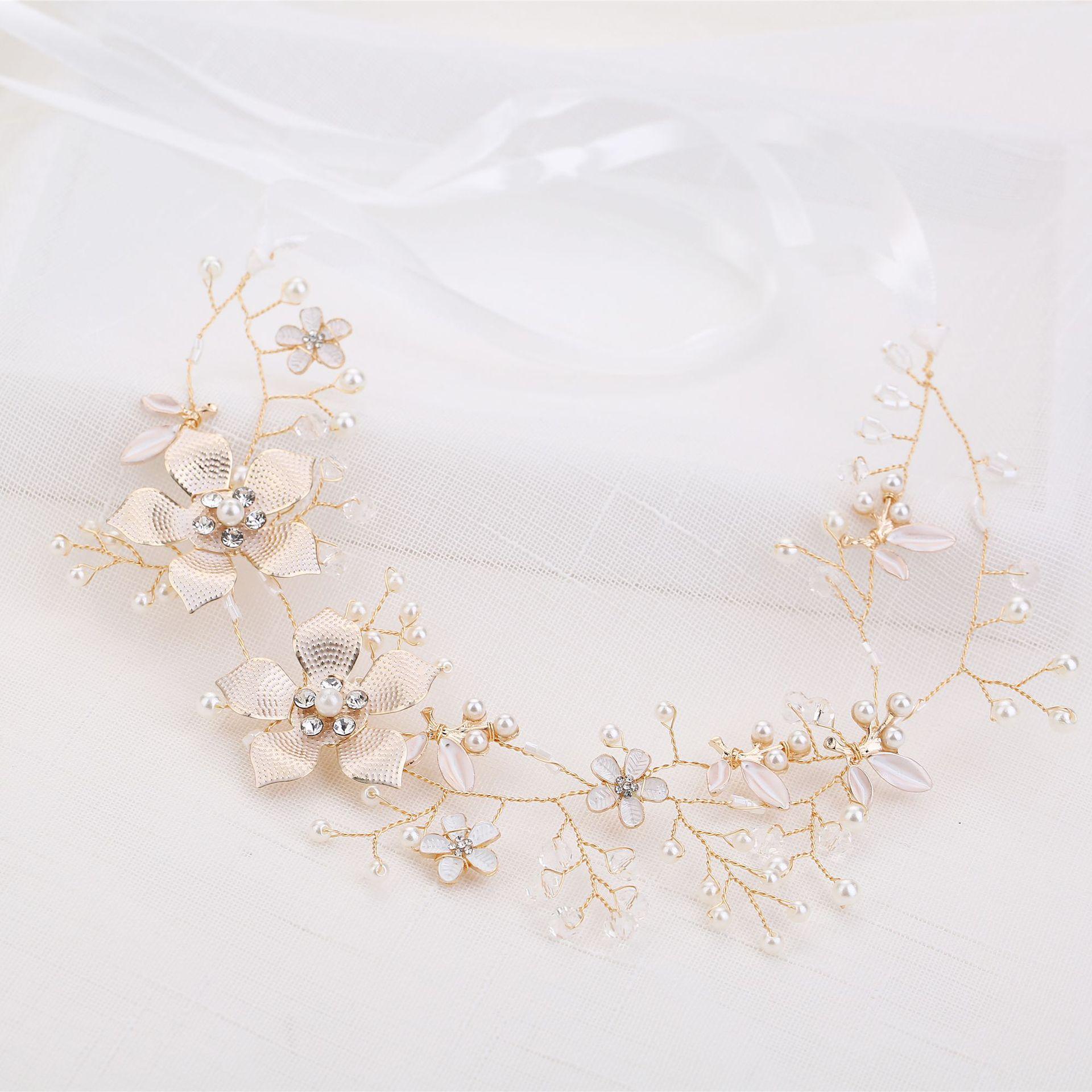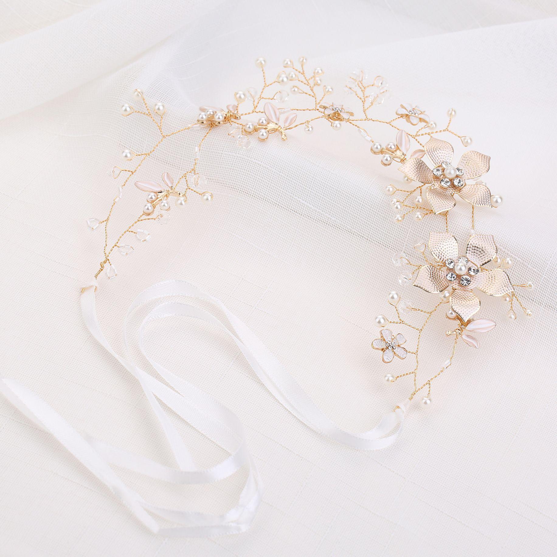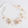 Tocado de novia coreano para boda, hecho a mano, con cuentas retorcidas y flores doradas, cadena suave, accesorios para el cabello, accesorios para vestido de novia