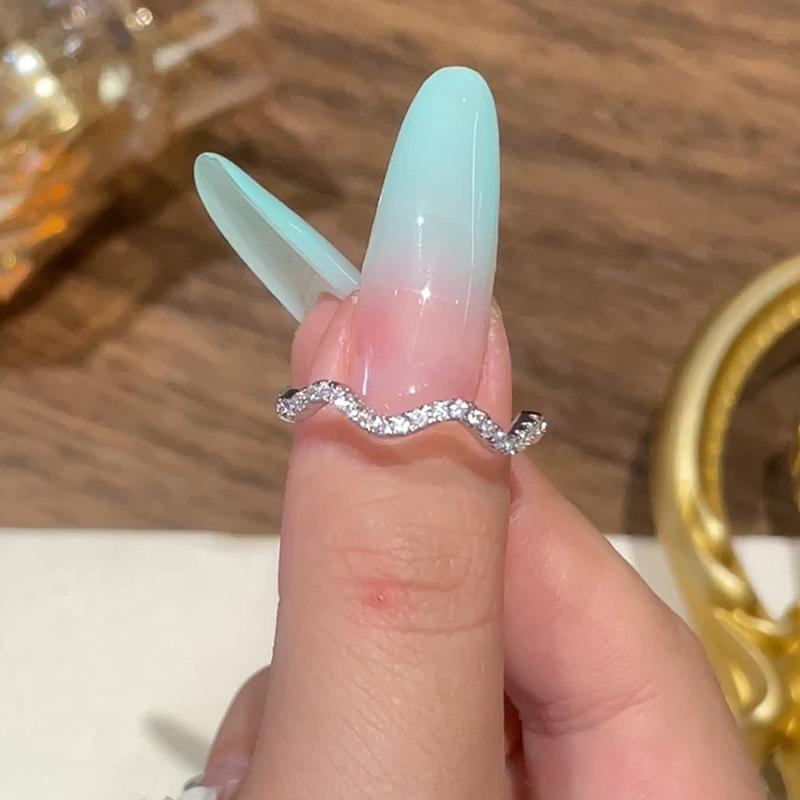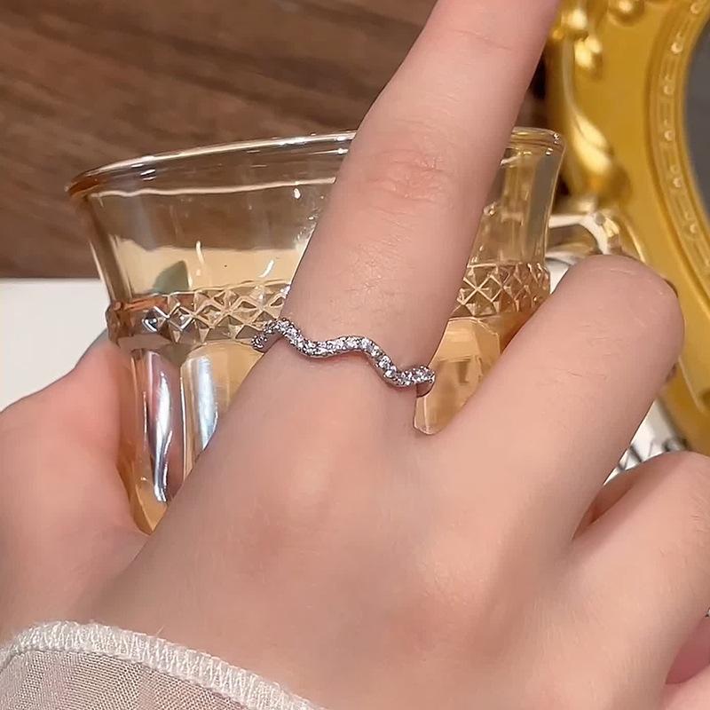 Anillo de circón ondulado para mujer, ligero, de lujo, con temperamento, nicho, anillo de diamantes, anillo de dedo ajustable abierto para dieta, otoño e invierno