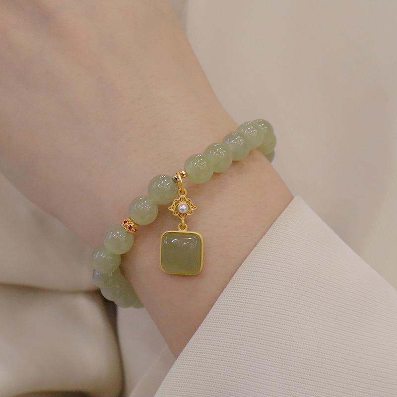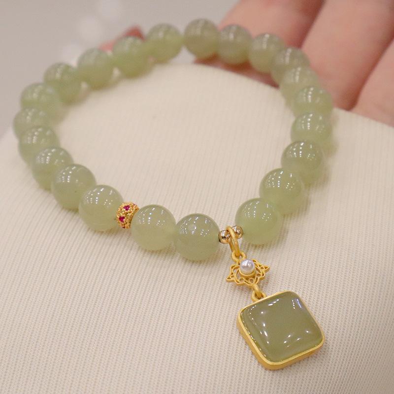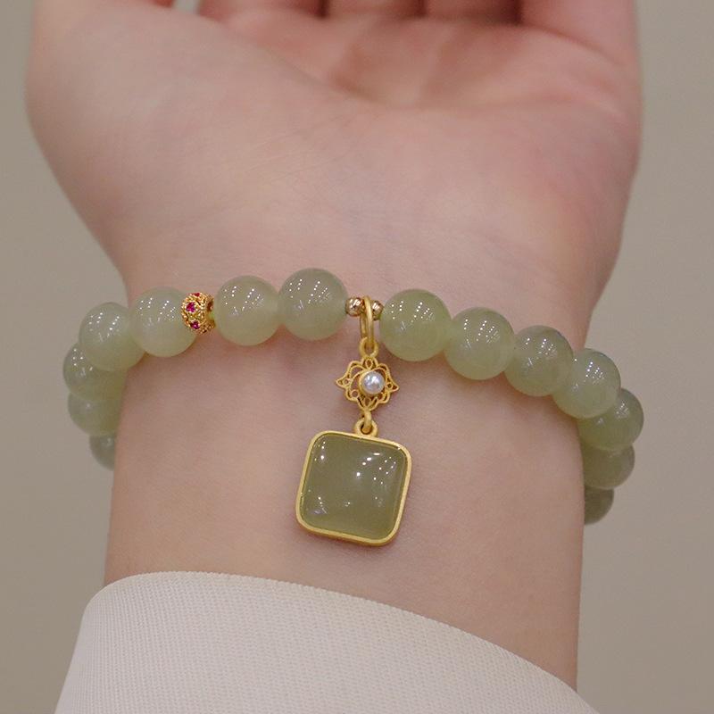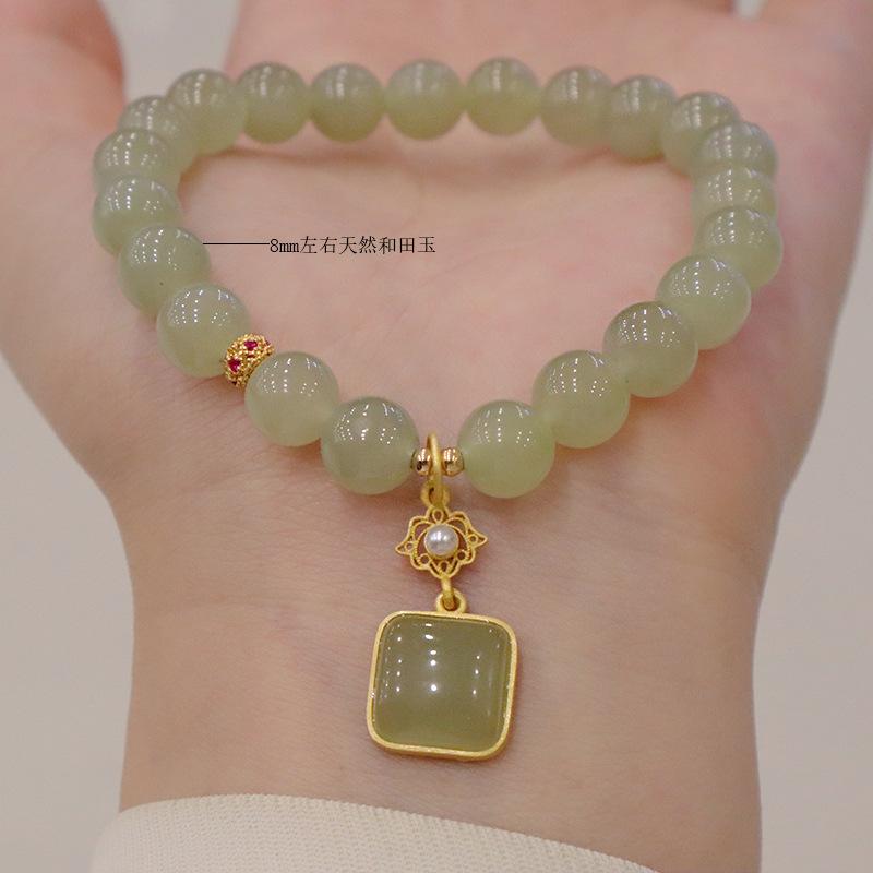 Pulsera de Jade Hetian Natural Nuevo Patrón Pulsera con Tarjeta Colgante para Mujer Suave Combinable de Gama Alta Joyería Regalo