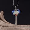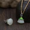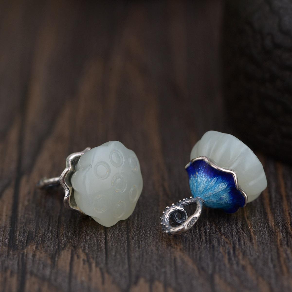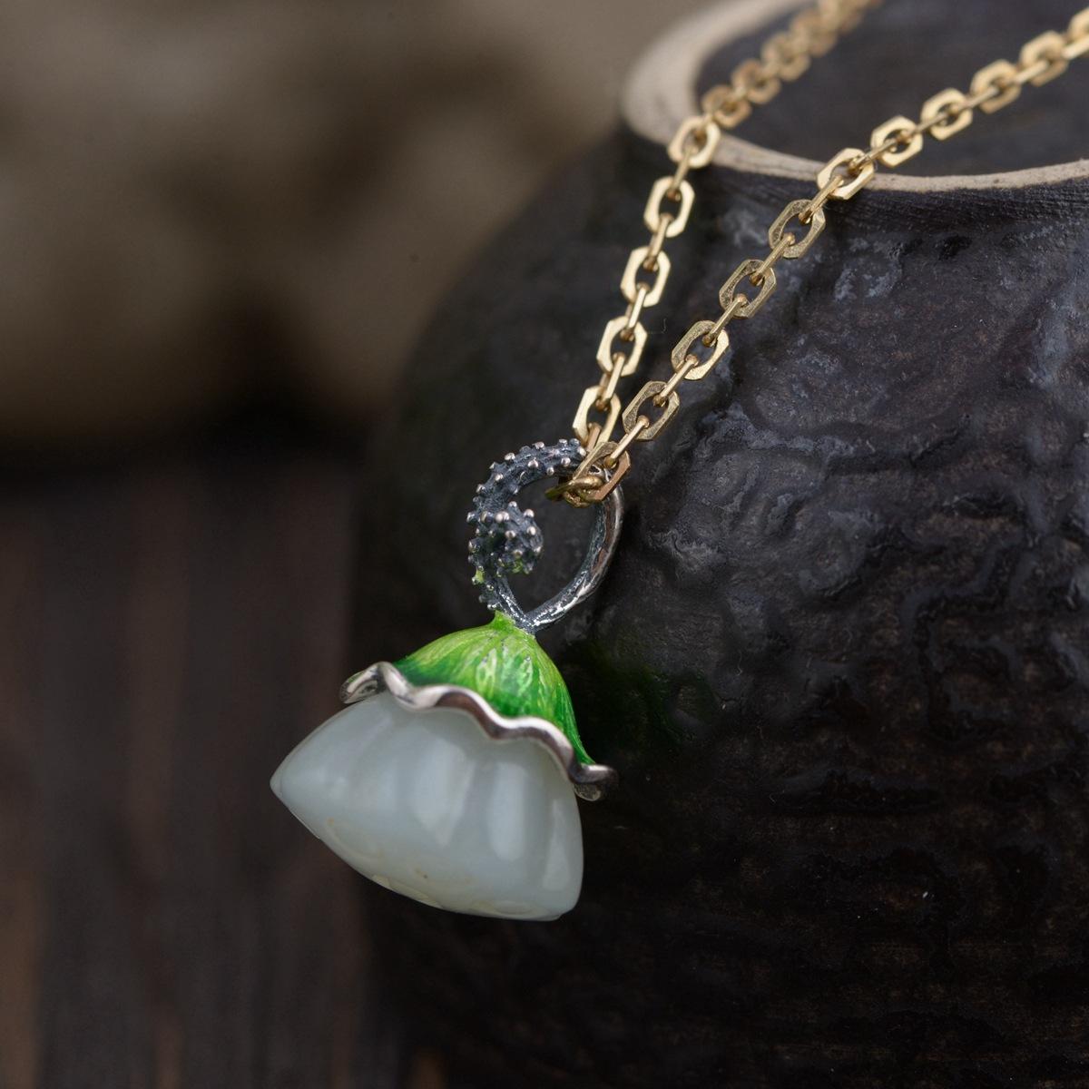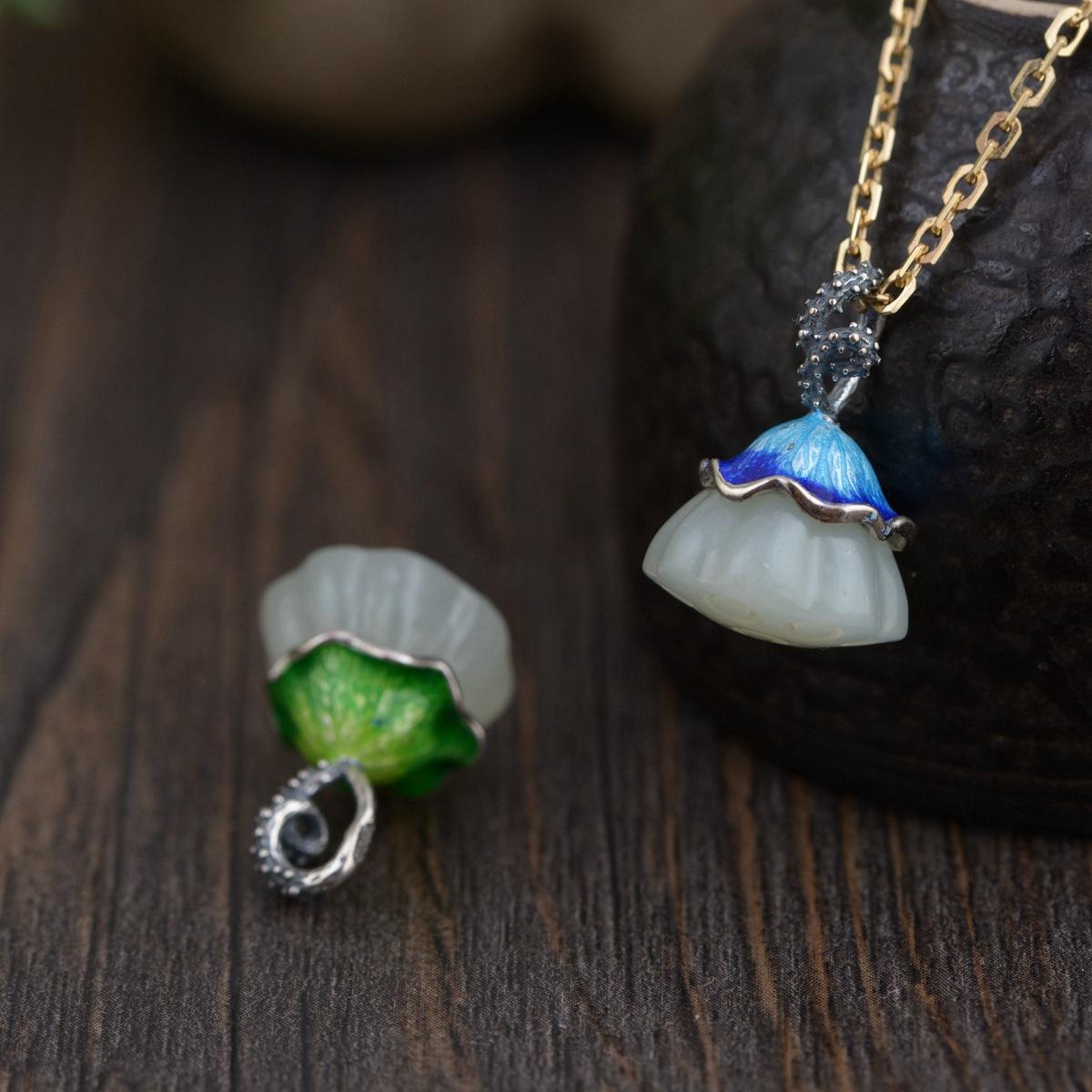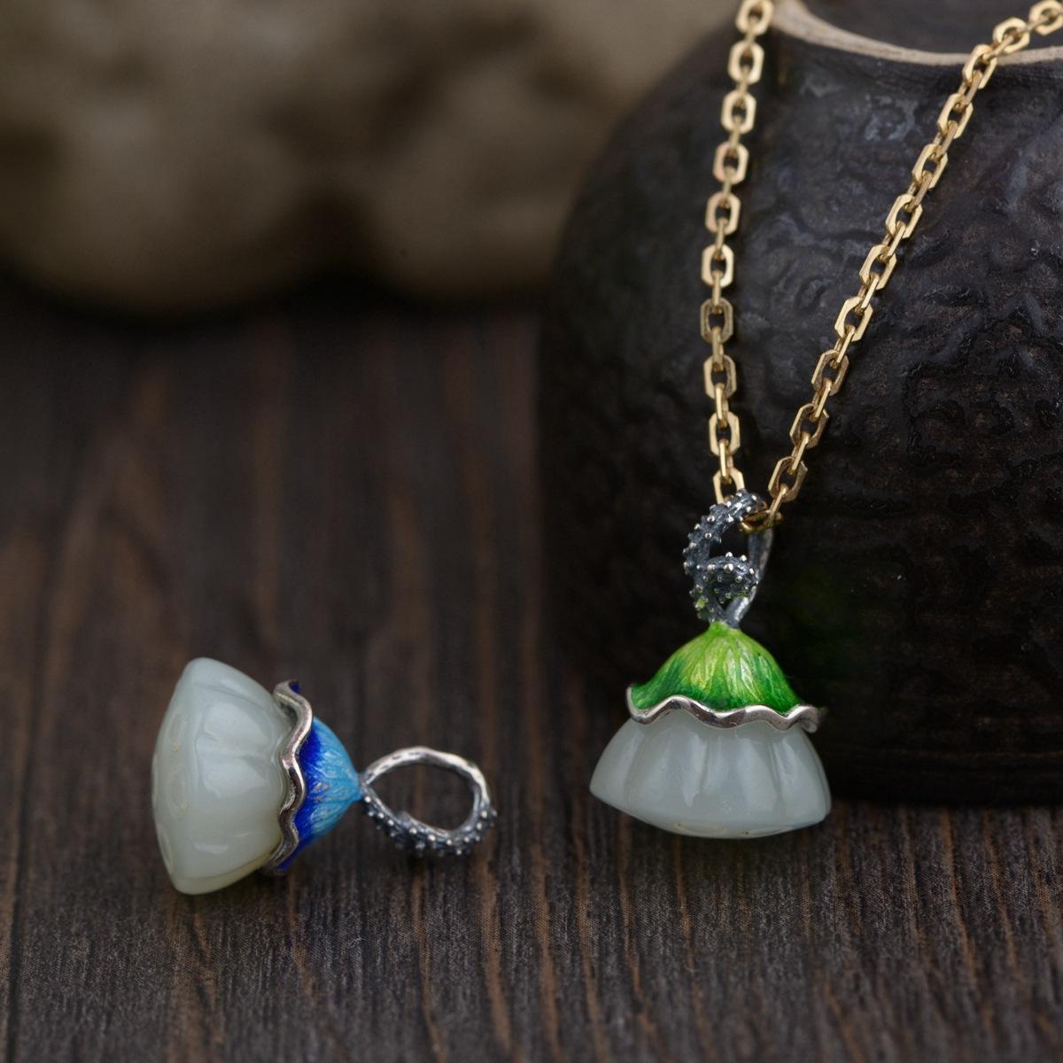 Colgante de plata tailandesa cloisonné antiguo de plata S925 con diseño de rey ciervo dorado, colgante de loto de jade hetiano azul quemado en plata para mujer