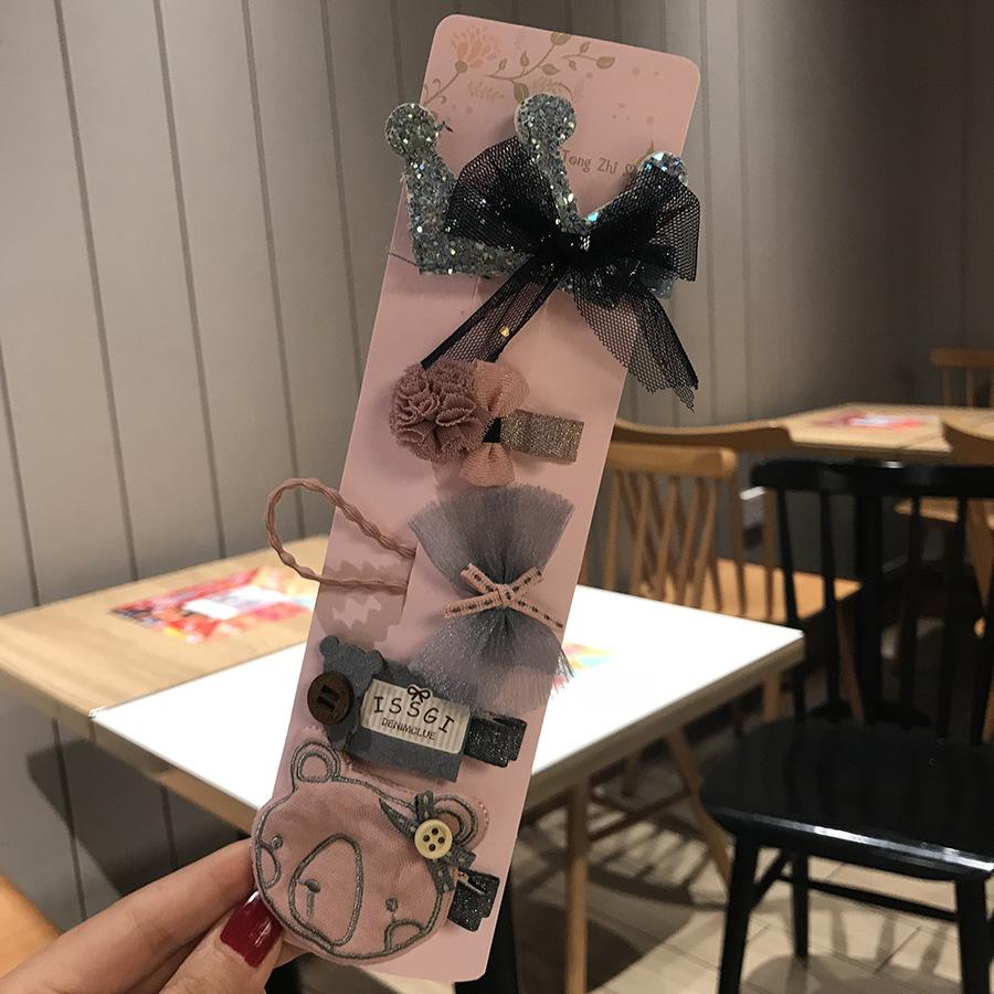 Accesorios para el cabello para niños estilo coreano Juego de cinco piezas Corona Lazo Juego combinado Diadema Pasador Adorno para la cabeza para niñas Pasador para bebé