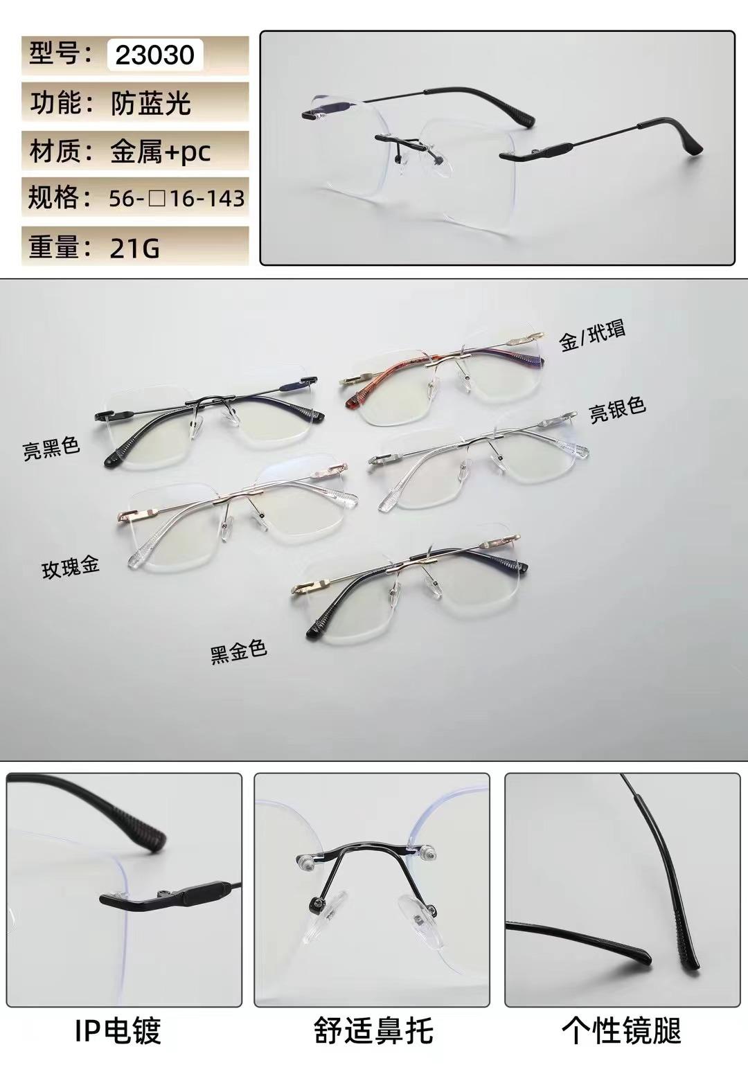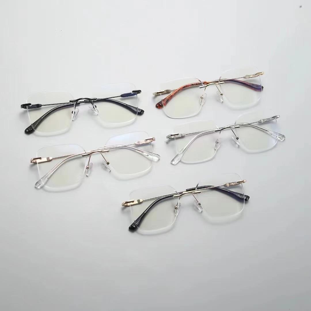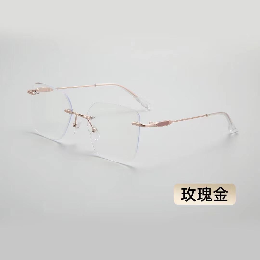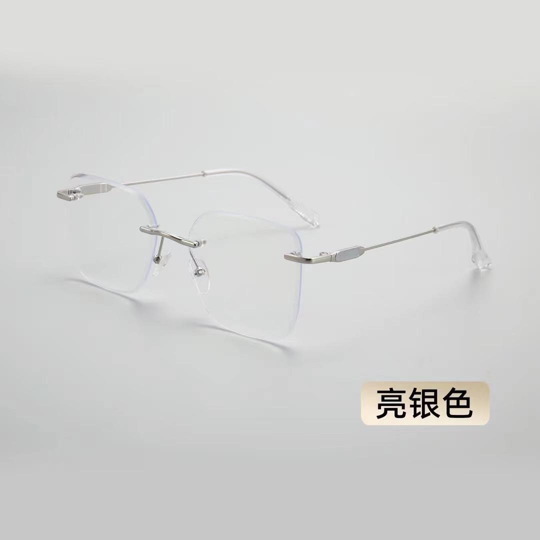 2023 Nuevas gafas de moda anti-luz azul lisas con personalidad, gafas cuadradas sin marco, gafas para miopía para hombres y mujeres.