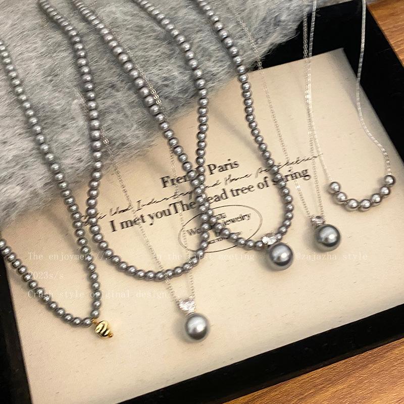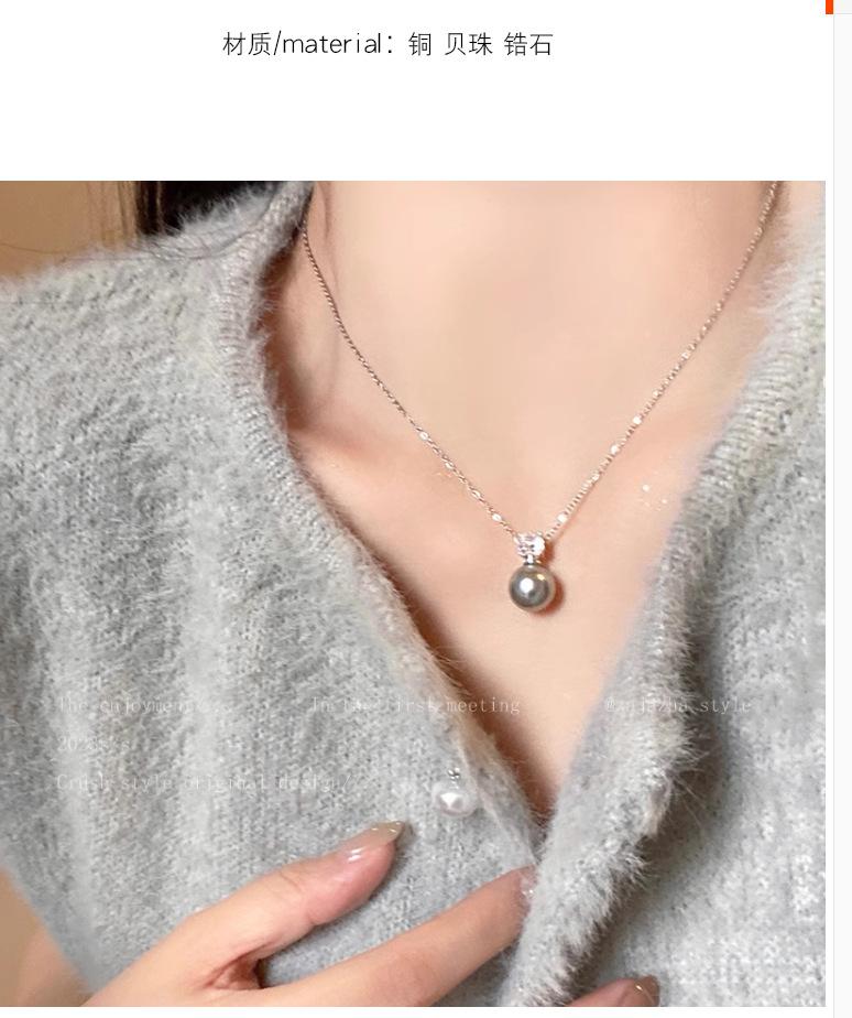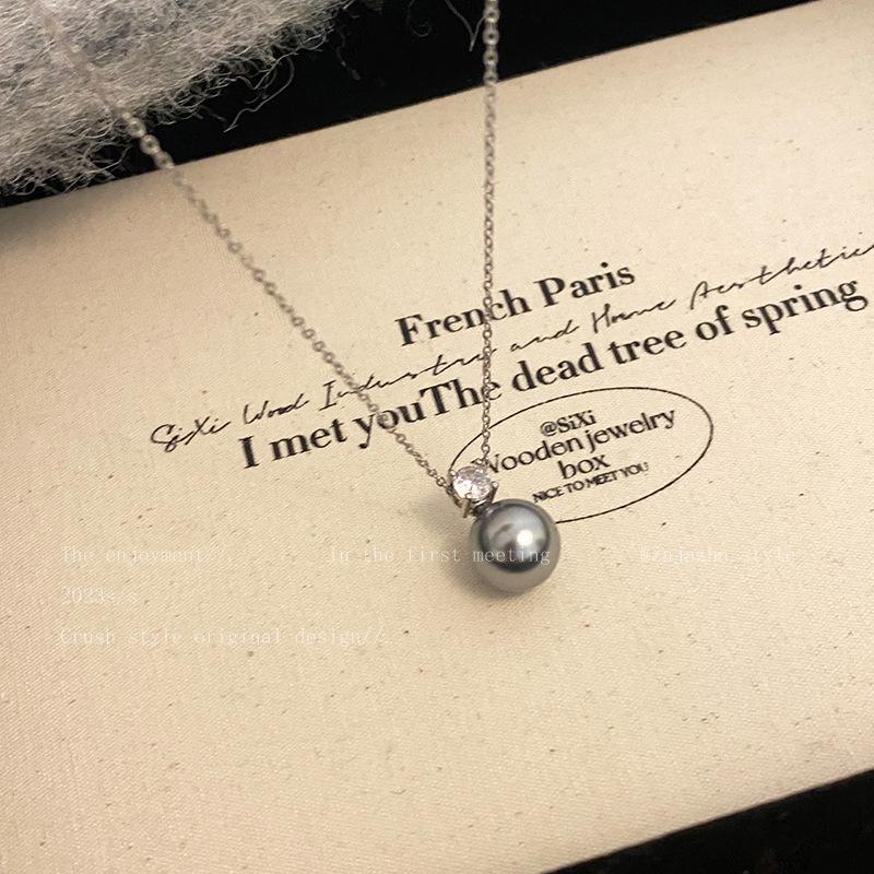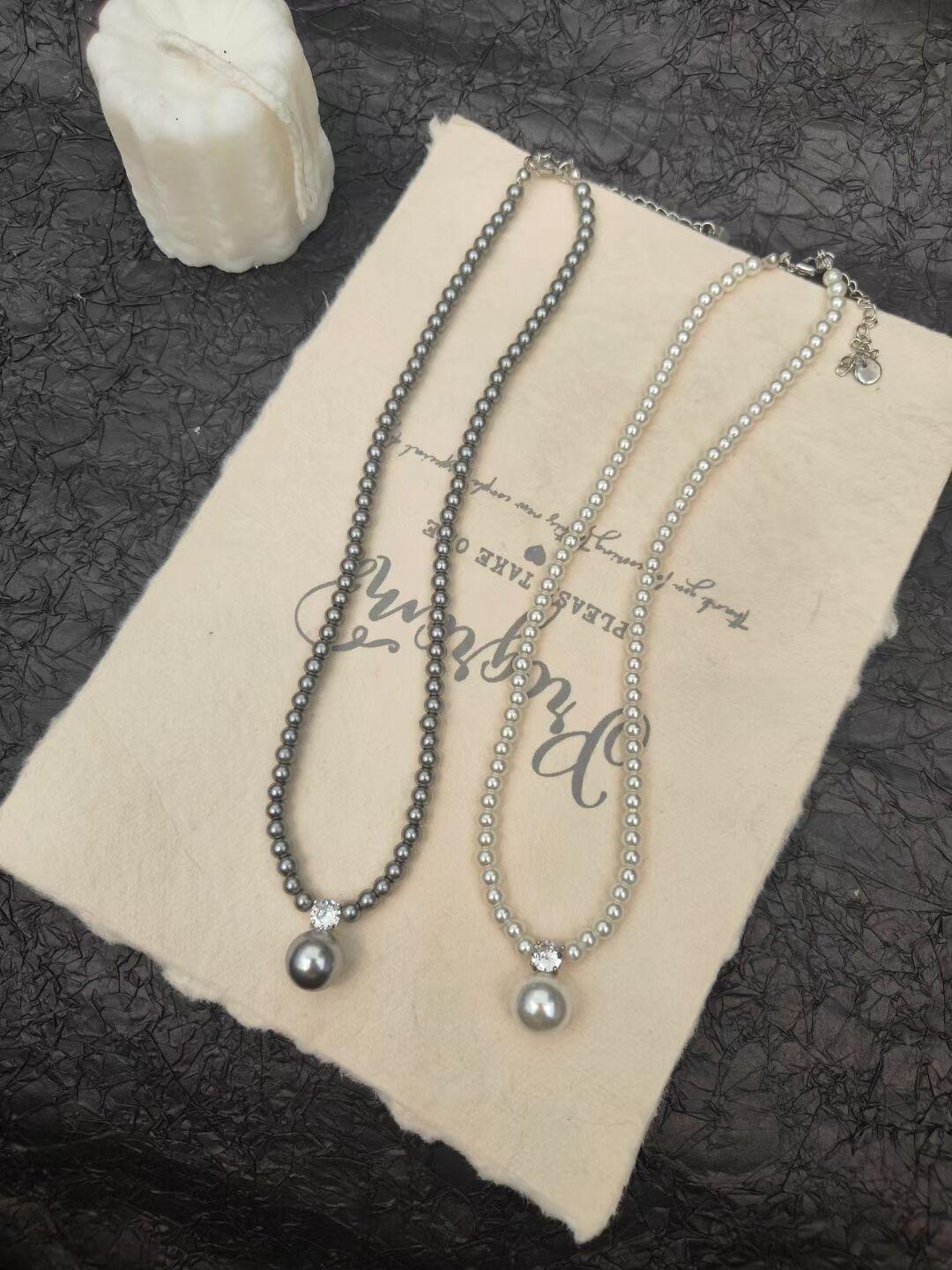Gray Pearl zircon necklace, White Pearl zircon necklace, Gray single pearl necklace, White single pearl necklace