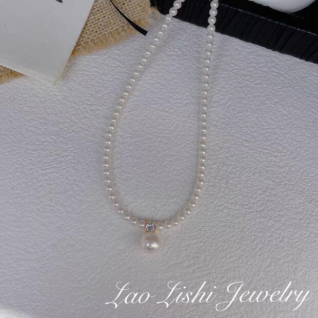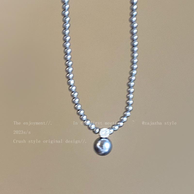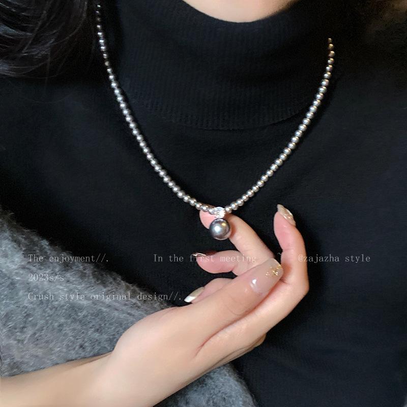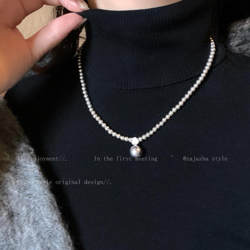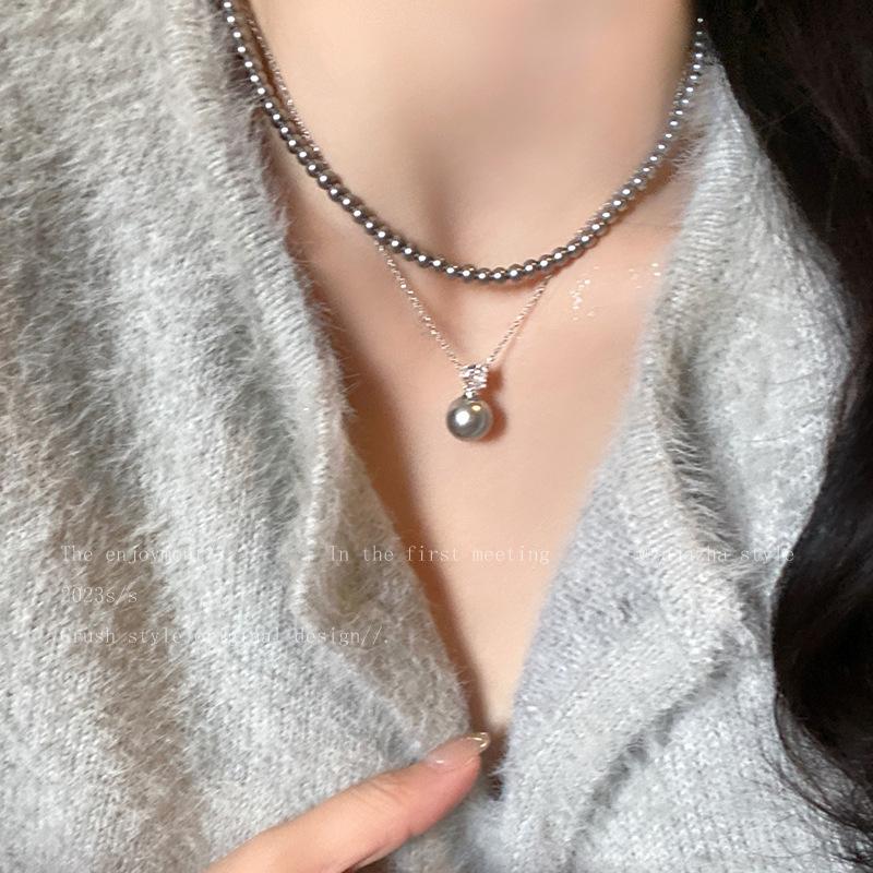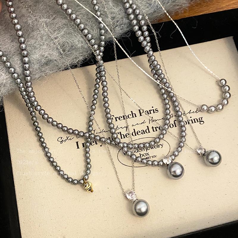 Gray Pearl zircon necklace, White Pearl zircon necklace, Gray single pearl necklace, White single pearl necklace