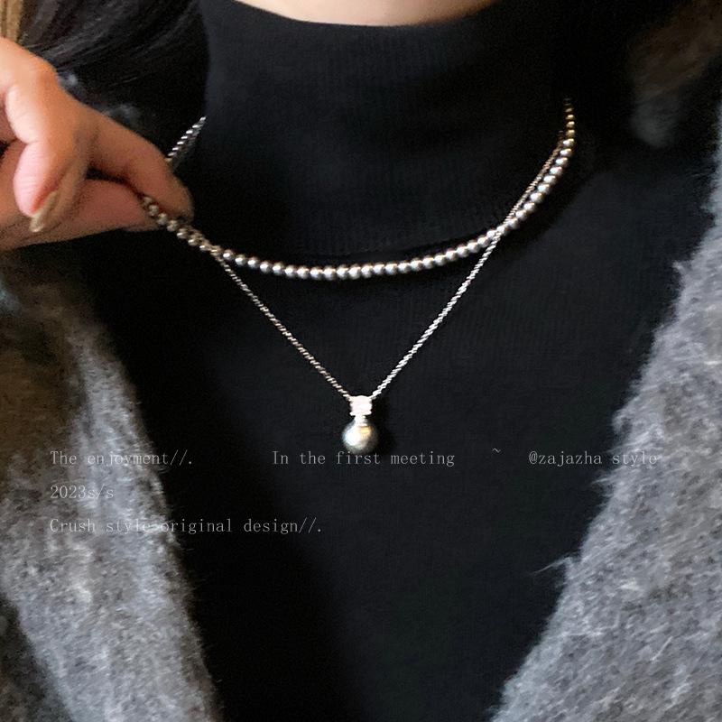 Collar de suéter de circonita y perla para mujer, estilo francés, ligero, de lujo, nicho, cadena de clavícula de alta calidad, cadena de cuello apilada de doble capa, moda